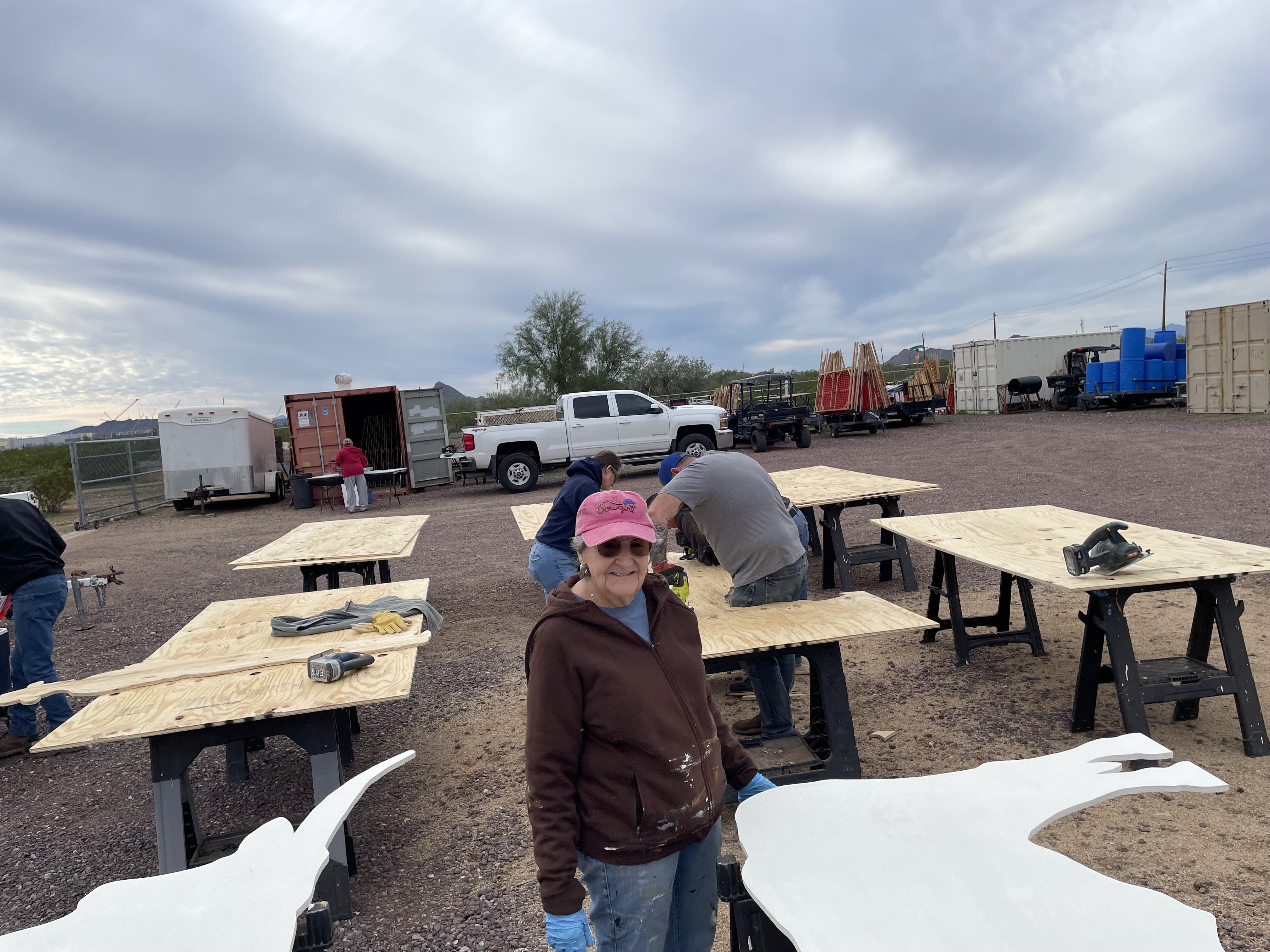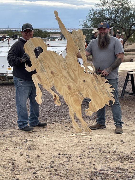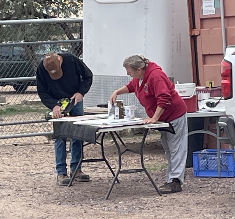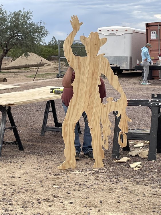 Yesterday marked the beginning of preparations for End of Trail 2026. We had met three weeks prior to clean and organize the storage yard, but yesterday the power tools came out. About twenty brave cowboys and cowgirls turned out under threatening skies to try and beat mother nature, and a success it was. The clouds started leaking just as we were putting things away. All photos by Darlin' Darla, our new Media, Marketing, and Communications Coordinator. The 2026 theme is "The Cattle Drives of the Old West", so the first order of business was to cut a herd of plywood longhorns. Sly Puppy supervises the painting of the herd. Next we needed a crew of "standup" cowhands, so off to work we went. Rough stock needs to be "broke", so Lead Finger and Matador have just the skill to get that done. Captain Dan Blodgett's Green Chicken Posole' is just what we needed to warm up enough to finish the afternoon's tasks before the rain. Somebody said "Why did you buy a paper pattern when we could have just laid Rustler down and traced him??' I don't know, what do you all think? Rollin', rollin', rollin', Sweet Shot Sue keeps the paint rollin'. The number of people that turn out, especially on a day like this, to give back to their fellow cowboys and cowgirls always humbles me greatly. Joe McGlue and St. Helena Slinger study the piece of plywood carefully before deciding just where to cut. That's their story and they're sticking to it! Ransome Hawk and Kit Foxxe travelled from about four hours north to help out, and brought new tombstones for the graveyard. Our next work party is scheduled for Saturday, December 6th, we'd love to have you join us.14 points