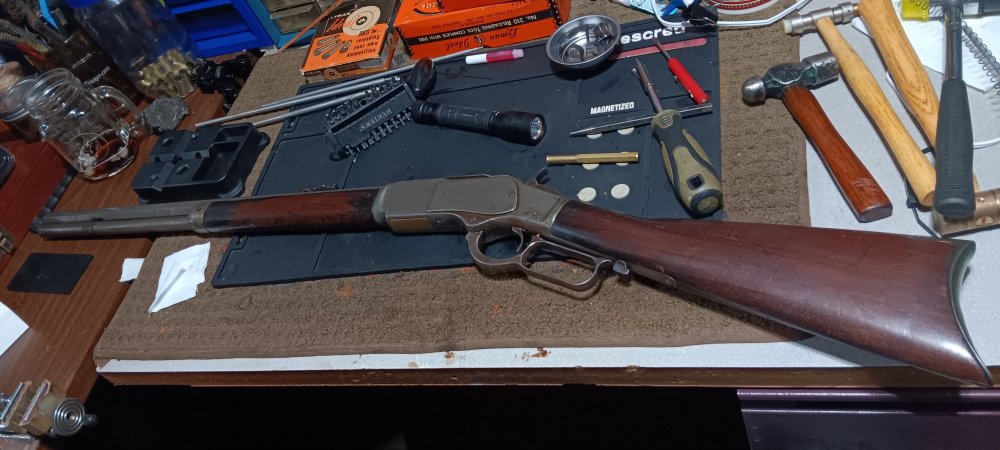 Original 1873 Winchester 44WCF 3rd Model Smokeless Proofed 1917 20" Short Rifle. Im very proud to have her in my stable. For the time I have left here, Im going to give her some tender loving care. Until she gets passed on to my Son one day . Im cleaning out 108 years of dirt and grime . I hope you enjoy the pics of this Beautiful Lady .18 points