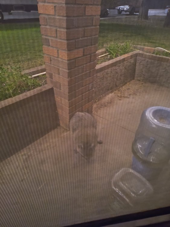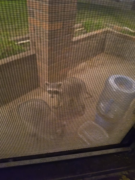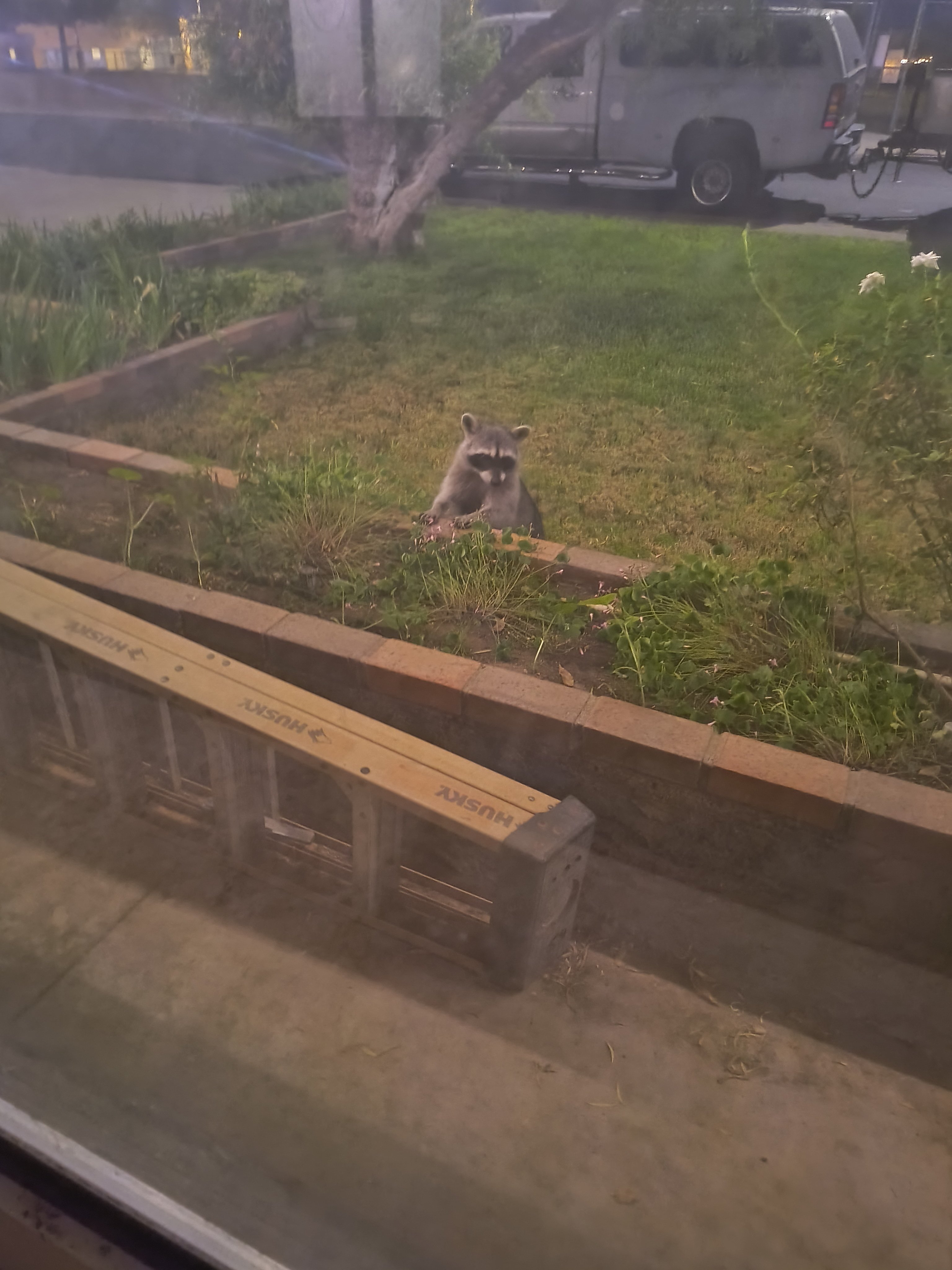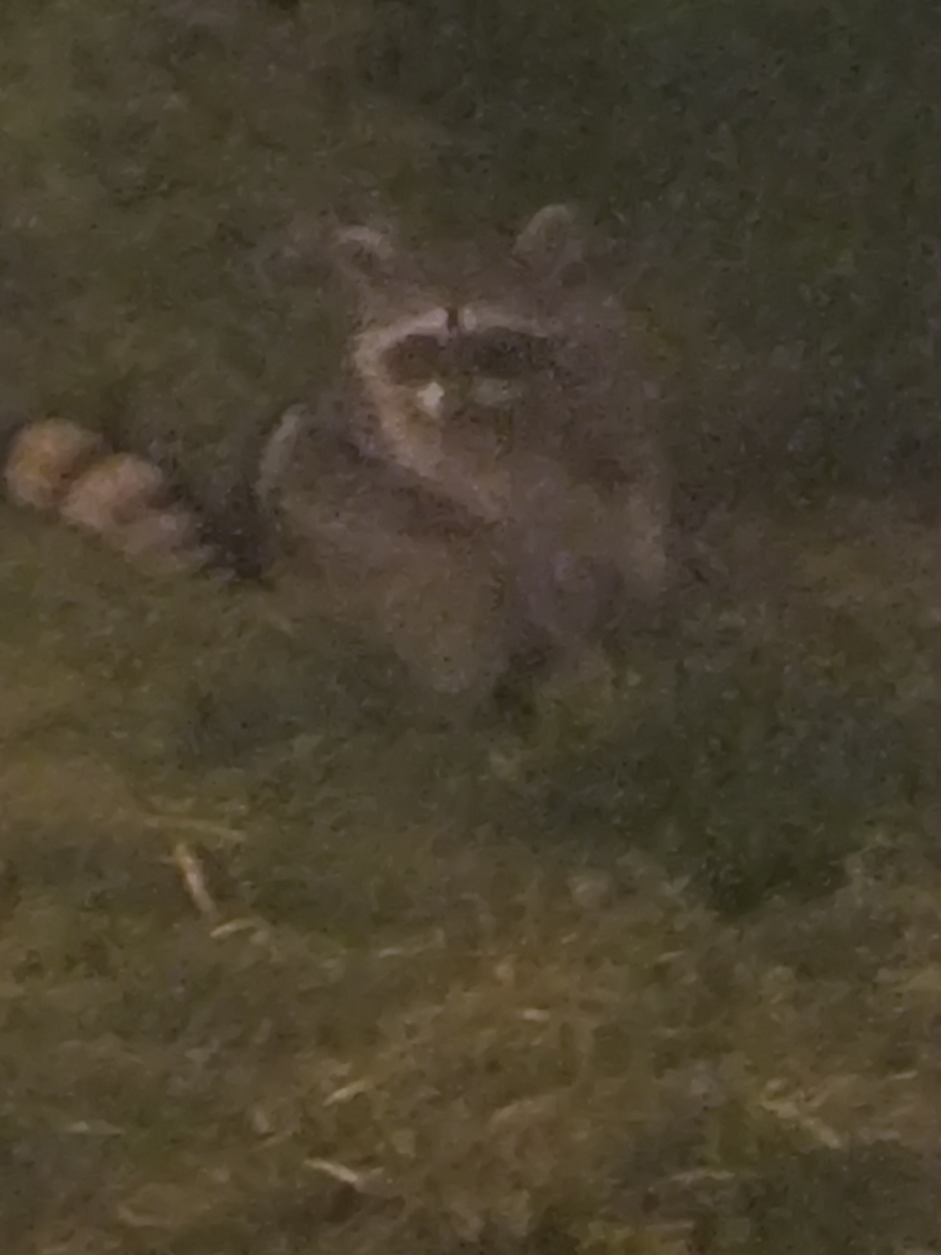 Here it is 2:30 AM. Looked outside and saw these two rascals. Mind you, in the city. Guess the outdoor cat feeder met with their dinning approval. Chas B