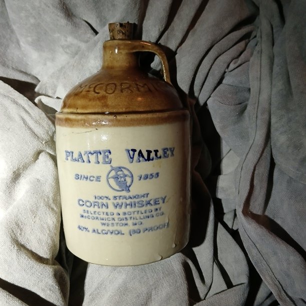 Well, "Apple Pie Season" is upon us! With that established, I'm lookin' for suggestions on handy bottles for sharing the wonderful golden libation. Undoubtedly my best experience was a number of years ago, when I managed to buy a case of "factory second" Platte Valley Corn Whiskey jugs. They were perfect! Capacity 750 ml (a shade over 25 ounces), cork stoppered... dangit, I wish I coulda bought a dozen cases! Anyway, I have but one left, and I ain't a-gonna part with it. A few years ago, Ms Helen Brimstone bought a bunch of stainless steel hip flasks, and we gave 'em out at Christmastime filled with Pie. They were okay, but much smaller (less than half the size), and even being stainless not the best material for keeping Pie ~ "drink it soon!" So - if y'all were gonna be giving out Apple Pie for the holidays, what would you bottle it in~? The "Jug!"