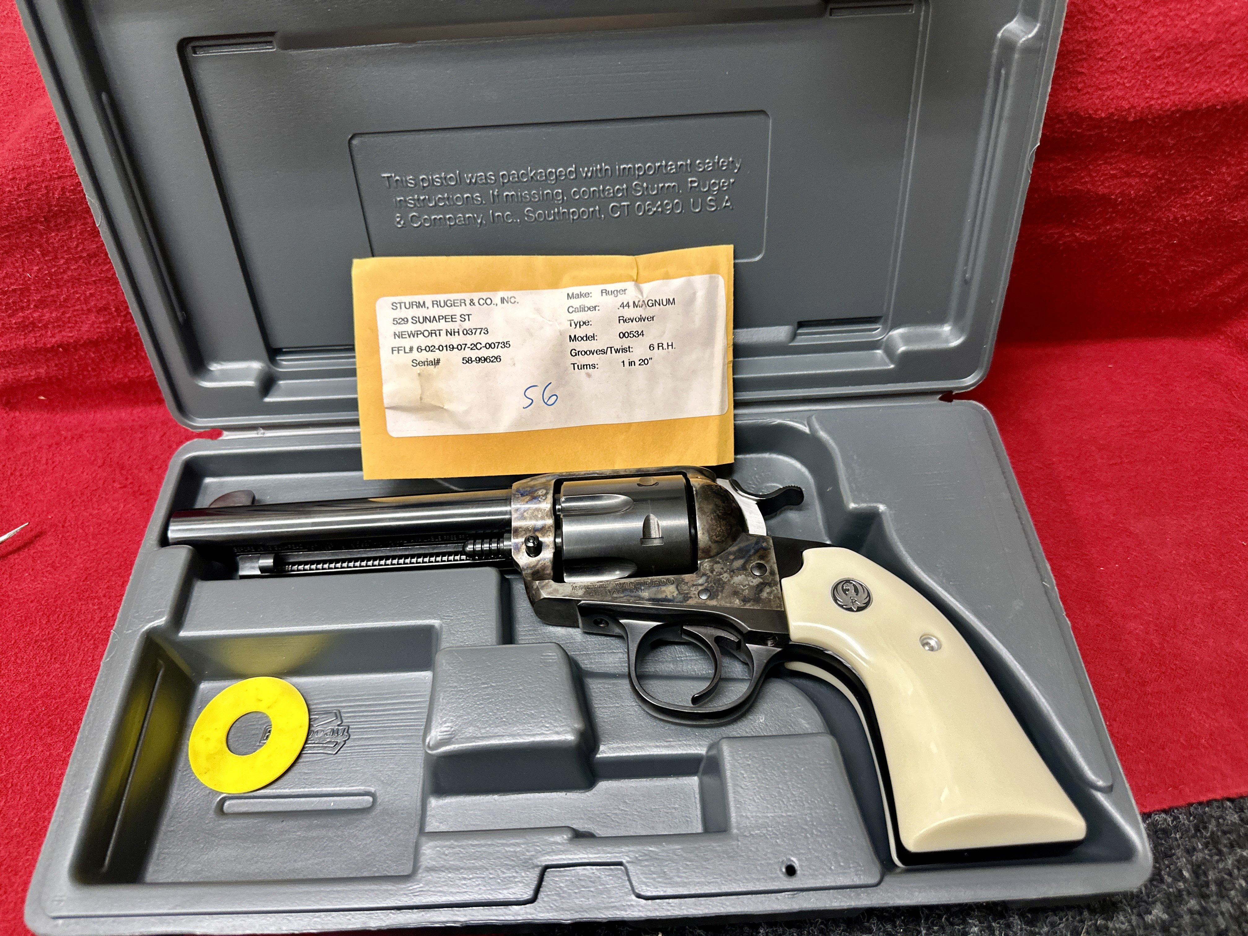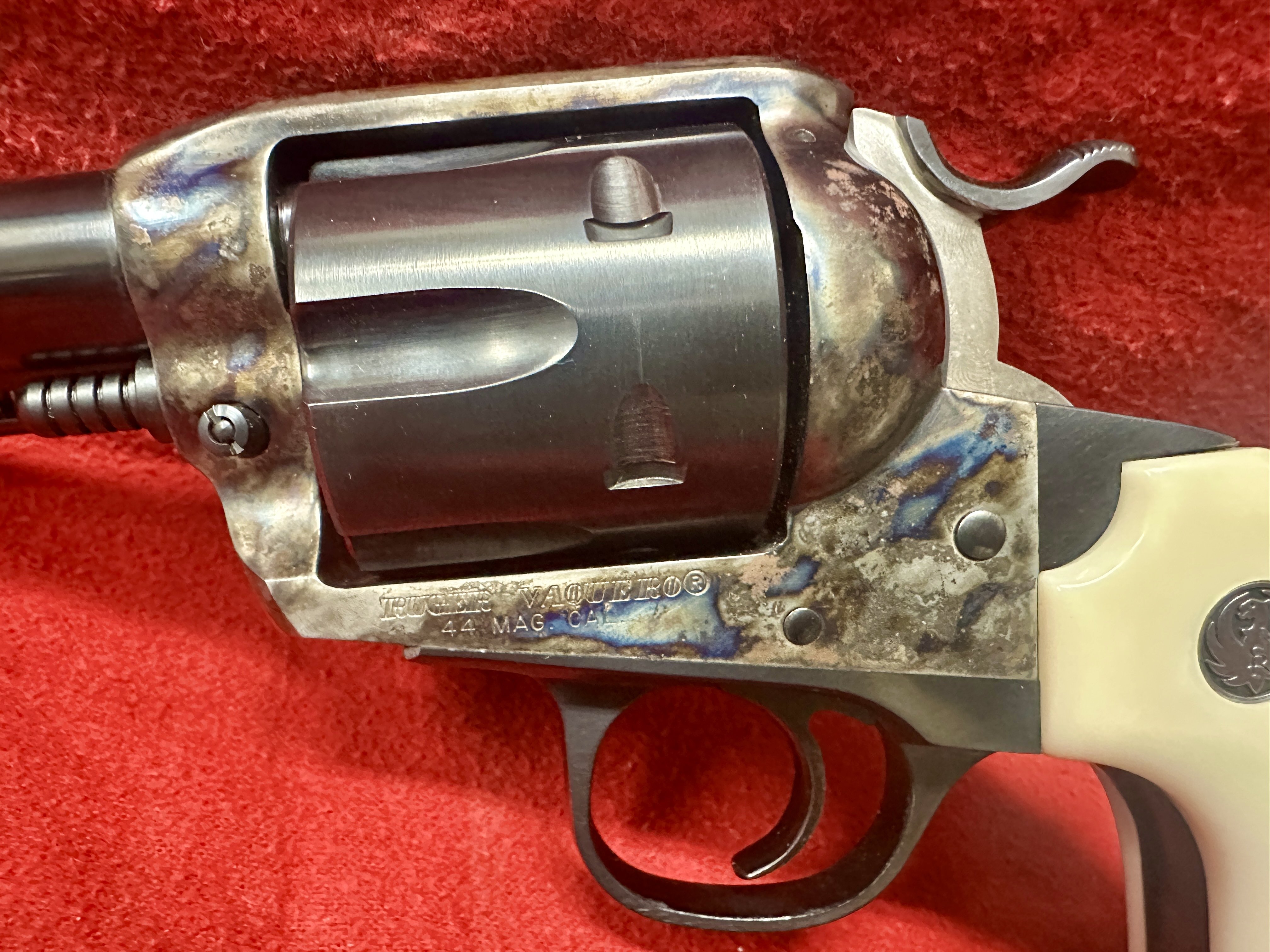 SOLD Have an extremely clean Ruger Vaquero Bisley in .44 Mag. 5.5" barrel. Box stock action and sights and grips are fully intact.This is the "Old Vaquero" frame. Talk about a fantastic woods and trail gun. Comes with gray box (does not have factory sticker on box) fired case and yellow safety ring. The condition speaks for itself on this gun that will last a couple lifetimes. $725 shipped to your FFL. First "I'll take it" posted gets it regardless of PM conversation. Thanks for looking. SOLD