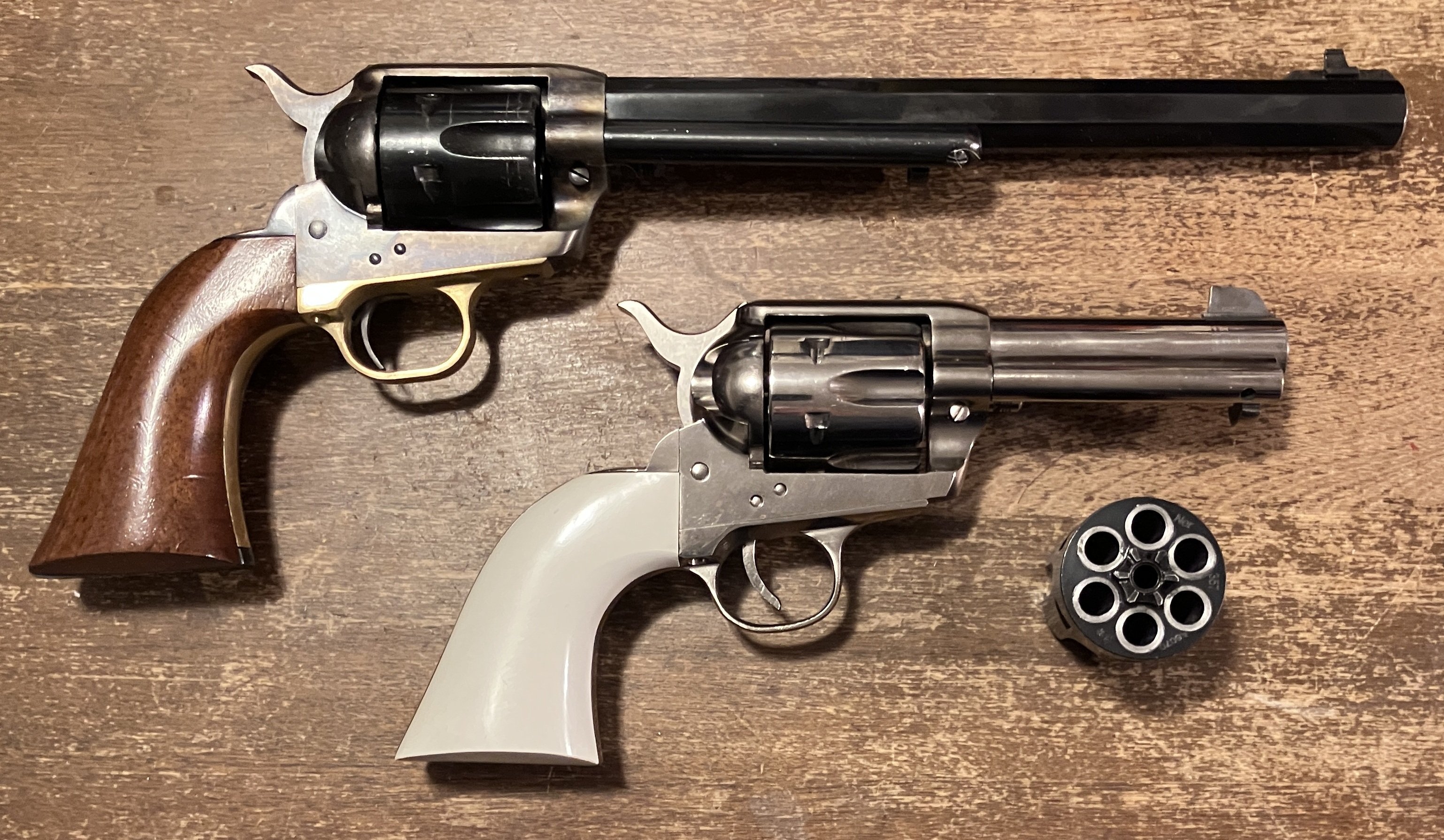 They do feel a little different in the hand when just holding it, but when shooting, the differences quickly vanish. An odd thing about this is that the cylinder is a little shorter than a Colt, so you gotta make sure your cartridges are not too long. I have found that a .45 Colt with 200 grain bullets fits just fine, but 240s were just a BIT too long.