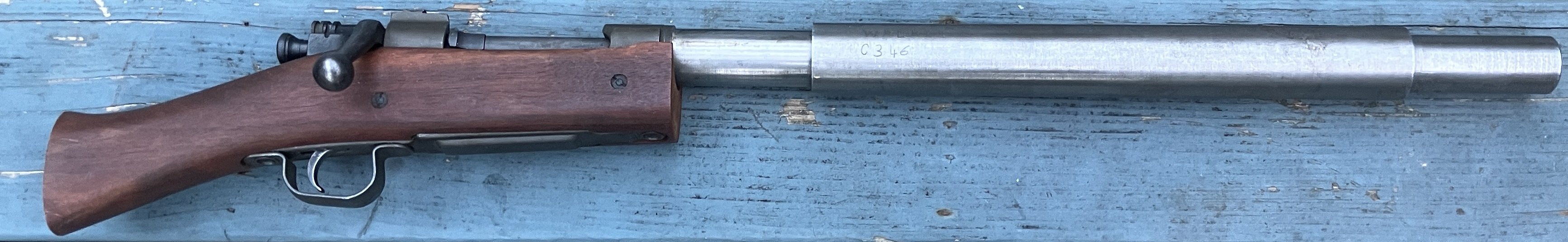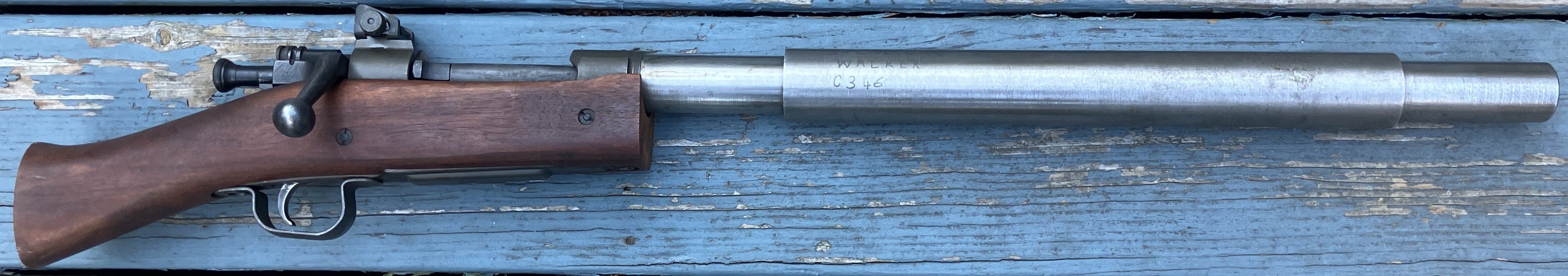A pretty typical Device. But where to go from here? Well, I guess it needs sights. Lessee, this it, technically, a Remington 03-A3 so...I found a genuine GI rear sight and installed it where it belongs. I actually think it looks kinda cool there.