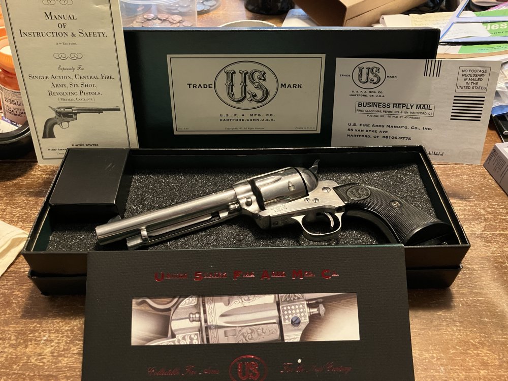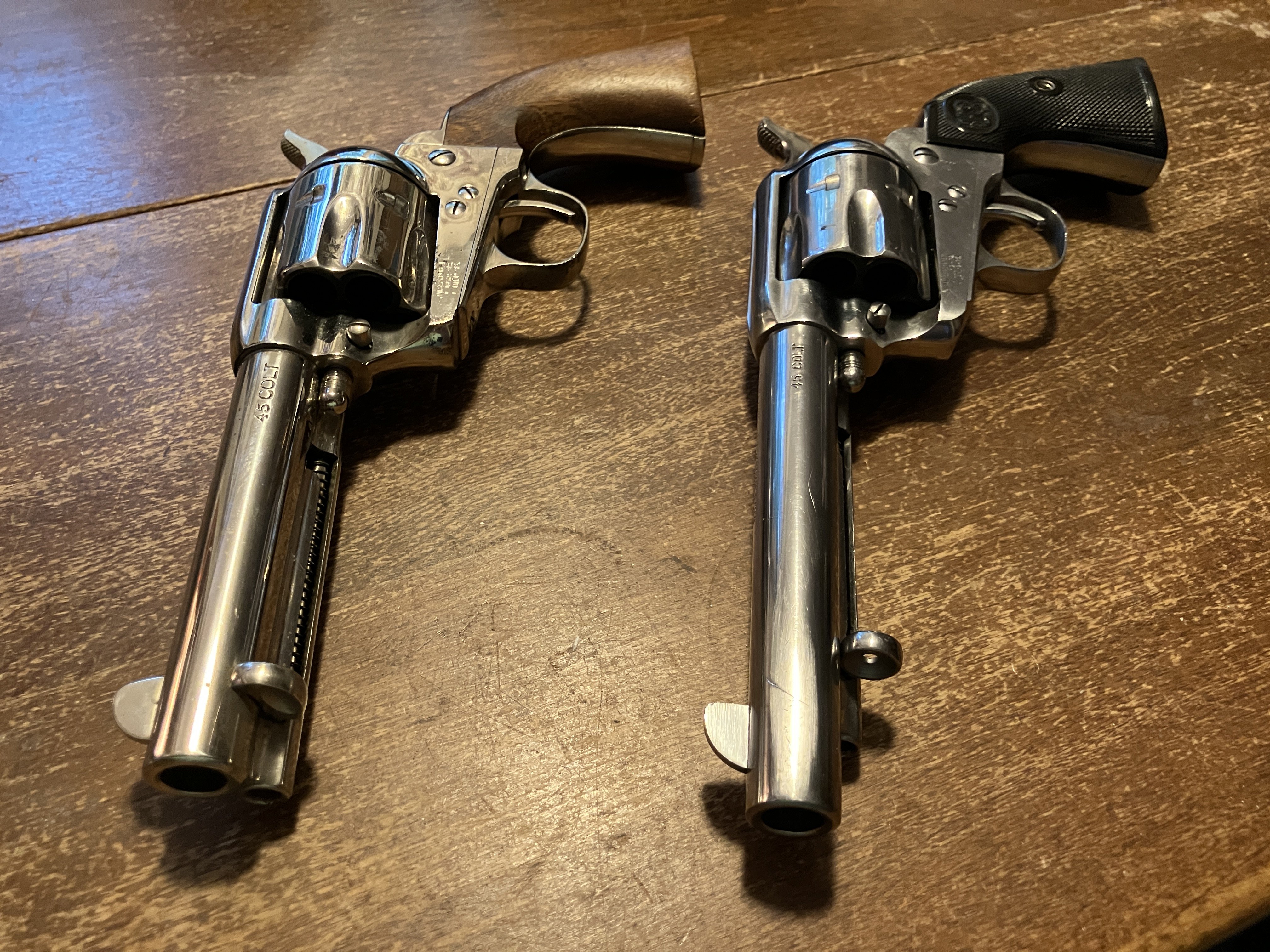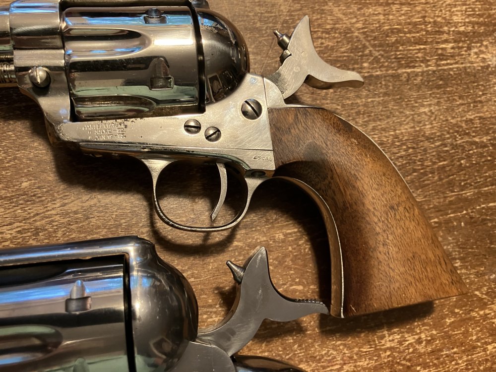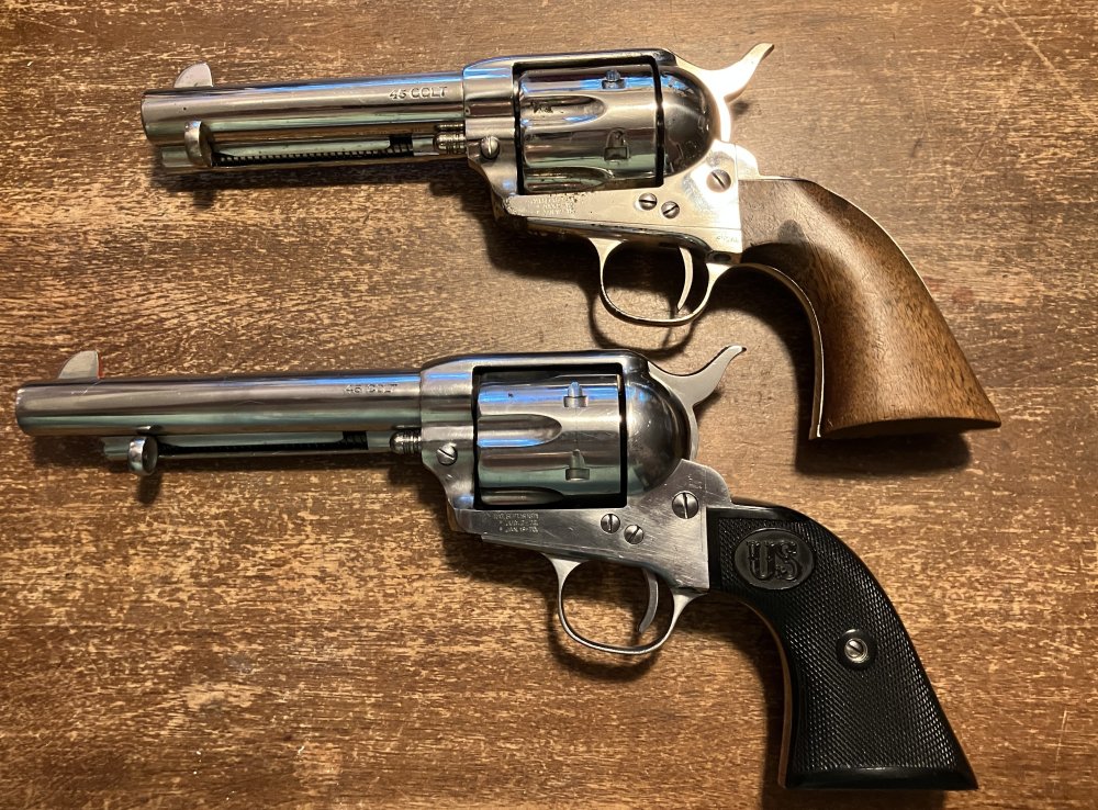 Rooster, you are correct that they will never be a Colt. I can remember when USFA was still around how lotsa people chimed in about how it was silly to buy a copy of the Colt when a real Colt cost the same price, no matter how well made the copy was. It'll never hold its value was a common refrain. Well, for whatever reason, reality didn't work out that way. USFA pistols can now sell for MORE than a contemporary Colt. We may agree that is this strange, but it is how things have developed. I think it's an excellent example of supply and demand. USFA is gone, and there ain't never gonna be no more, so the supply is fixed. But demand is still high. It is inevitable that their prices inflate. To be honest, given what I have seen these pistols actually selling for, I think I got a very good deal on both of them. And of course, when I become a famous person, their value will only go way up more.