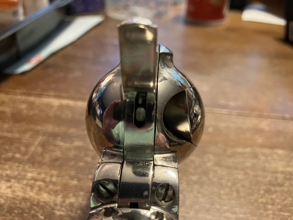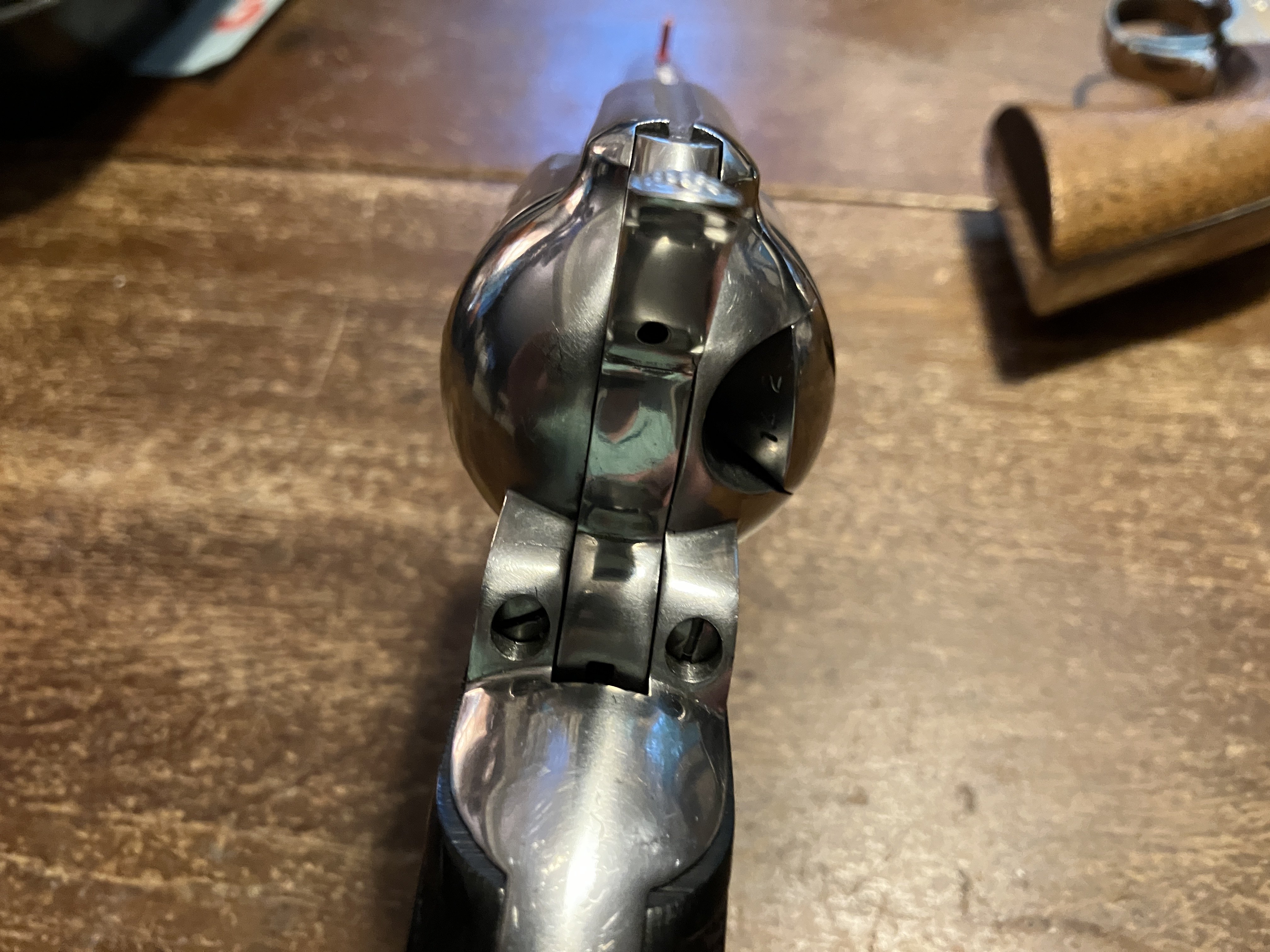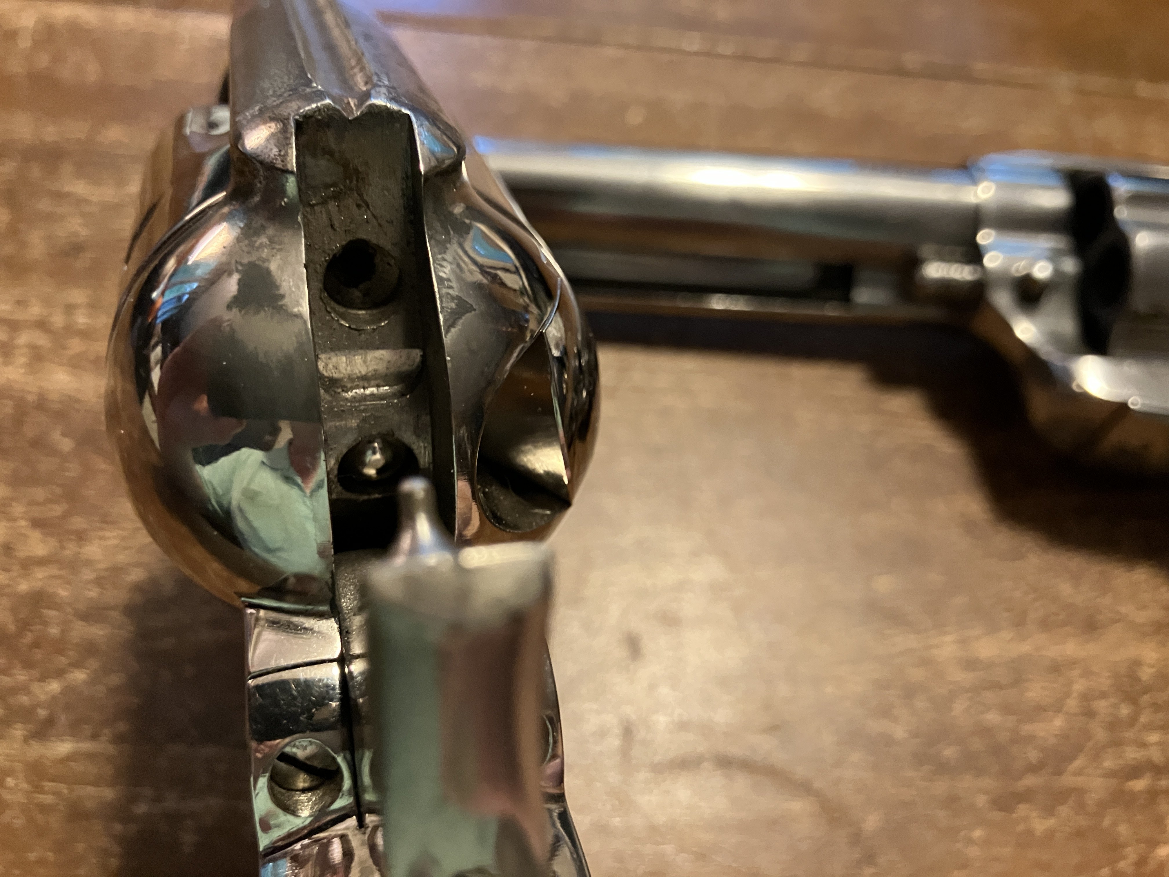 Well, Colorado, it seems you were right. Behold! The "kaboomed" pistol is no longer kaboomed! It has been repaired, and test fired by the gunsmith who repaired it, so it is again fully functional. (Interesting side effect, I now have a "matched pair" of these.) Anyway, the cylinder is a Kirst Second Generation one. I rather annoyingly could not find a Colt cylinder pin, so this one got a Uberti pin, which fit right in. Anyway, Sergey at Rustblue Gunsmithing was able to repair this gun, and I must sing his praises. I really thought it was damaged beyond repair. Never have I been so happy to be so wrong. He was able to straighten the frame, and do the minor fitting of the cylinder and timing adjustments to get it all to work. He's done more than a little work for me over the years, and this is probably one of the most impressive things he has done. He's located on Natick, Massachusettsm and I think he does impressive work. I promised him I would sing his praises here on the Wire, and plug his website, so here goes... https://rustbluing.com/ Now, I have done so. Especially for all of us here in New England, he is worth knowing about. -