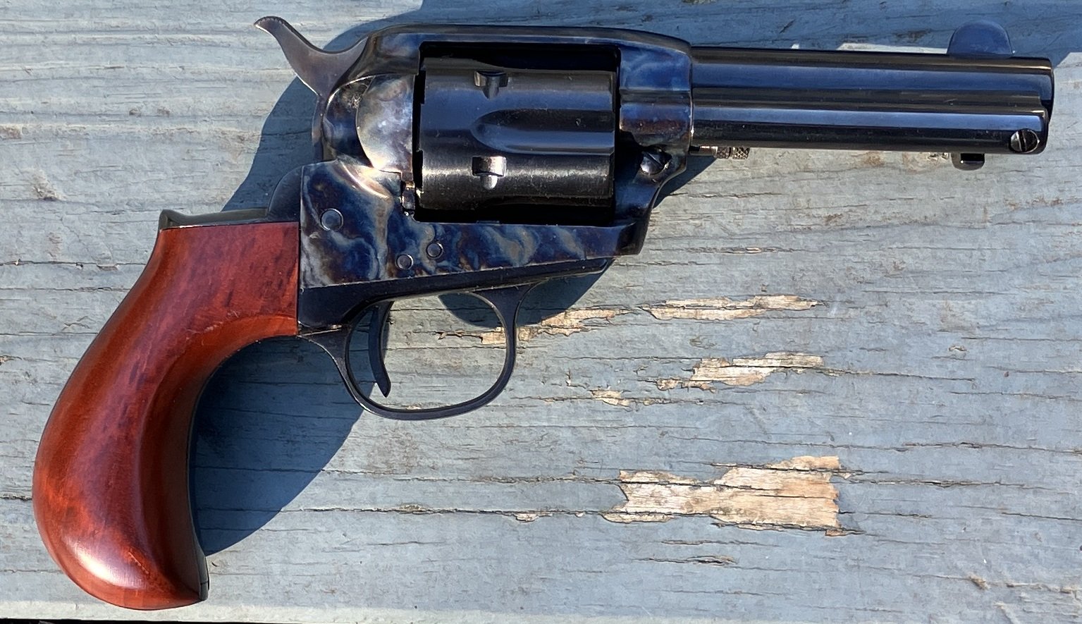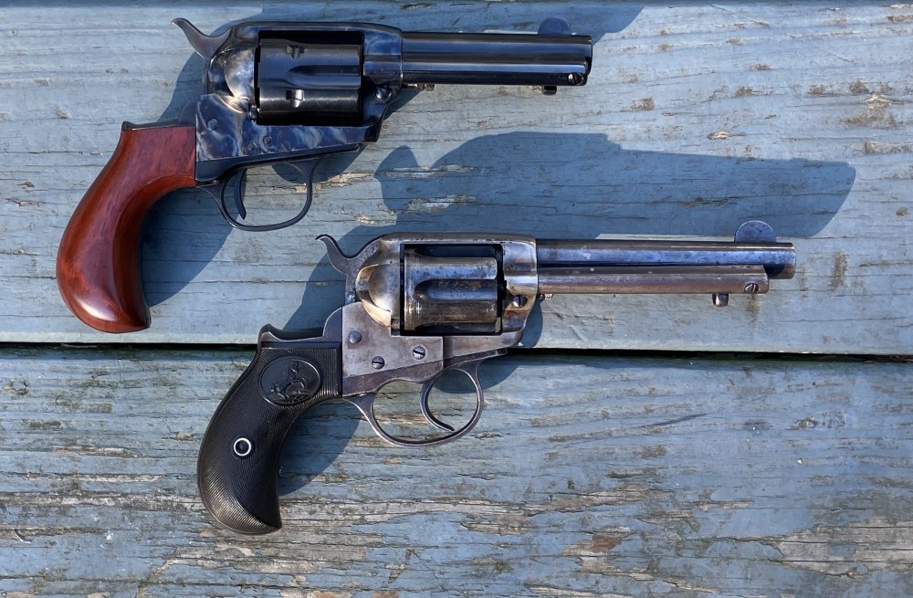 Double checked everything. It's a 4 click gun. Clicks three and four are very close, but still distinct, so that's how I got mixed up. It does have the two position pin. I guess it's "new older stock?" Anyway, as promised, here are some pics. First, a Colt Lightning. I actually have two of these, this one, and a Sheriff's model, but I thought this was a better comparison with the ejector and all. And, the Uberti... As you see, it's a very pretty gun, and clearly inspired by the Colt, but is not just a single action version of it. And the two of them together... Dimensions are very similar, but different in places. In some details the Uberti is both smaller, and larger than the Colt. Anyway, this is gonna be a fun gun to shoot. -