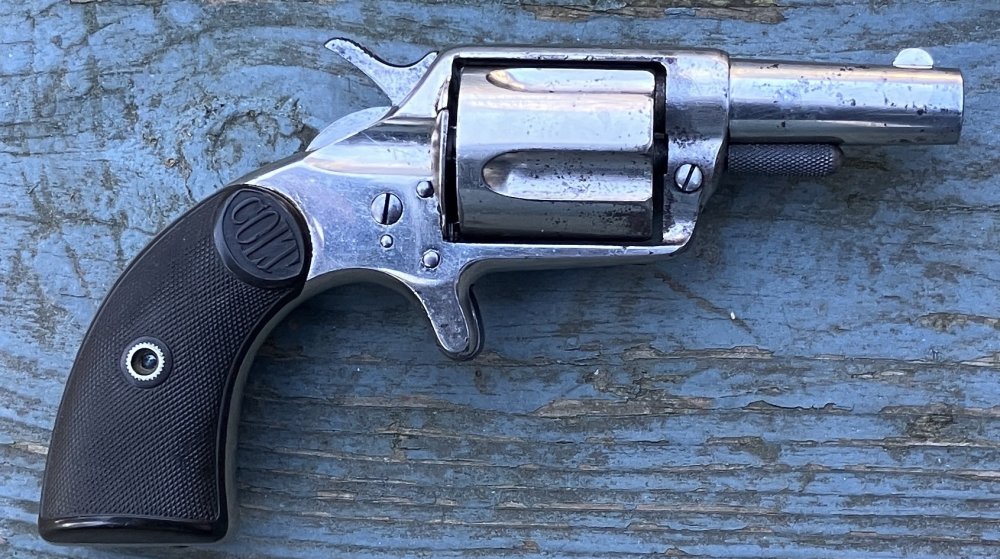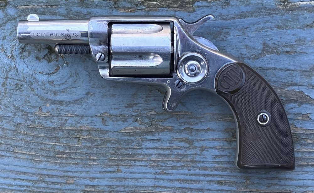 I just picked up an interesting small revolver. A Colt New House .38. The .38 in question is .38 Long Colt, which means it can also run .38 Short Colt. It is in excellent mechanical condition and the bore is very clean. According to Colt's Website, it was made in 1882, so it's a black powder only gun. I have recently become fascinated by these smaller sized single action revolvers, of .32 and .38 caliber. They are just interesting guns. Many have a spur trigger, more than a few don't. That many of them are 5 shot with no safety notch limits their usefulness as a main match revolver. You could of course load them with four and load the 5th on the clock, just for the chance to use them, which might be a pain, but might also be fun. Of course, many of them fall into that nebulous area of is it small main match gun, or a large pocket pistol? We'll let that go for now. Between what I have in my collection, and a few recent acquisitions, I am finding myself really interested in these things. Colt, S&W, Merwin & Hulbert, Remington, and who knows who else all made things in this general category. Calibers that I have found things in include .32 Short Colt, .32 Long Colt, .32 S&W, .38 Short Colt and .38 Long Colt. Curiously, I have not found anything in .32 S&W Long, but I did find one modern made gun with a .32 H&R Magnum cylinder that you could rung the S&W Longs in if you want to, and I intend to do just that. If memory serves, the S&W Long didn't come out till the early 1900's, so maybe that's why I don't find anything specifically in that caliber? (I have seen some vintage double action pistols of this size, but no singles.) Anyway, I really, REALLY find these guns to be interesting things to own and collect. Regardless of if I ever use them in our game, I may take them up to an indoor range to test fire them and see how accurate they are. Of course, some of these do need to be loaded with black powder, so I don't know if they allow that. I'll have to call and check, I guess. I will also admit that a couple of my guns of this type are currently with my gunsmith, getting fixed, but I am eager to get them all back so I can share them with you all, just for the fun of it. And finally, a couple of weeks ago, while talking about these types of guns in another context, I brought up the idea of an unofficial shooting style (akin to Josey Wales) where you would use two of these types of pistol, loaded with four rounds each, with the final 2 round being fired from a derringer. It was suggested that this could be called "Gambler Style," and I think that's a good a moniker as any. Shotgun and rifle would be any normal main match type. Maybe, at the very least, it can be a single stage side match at a bigger shoot. Setting aside whatever way, if any, these guns can be used in our game, does anyone else out there find them to be interesting? I know that for pocket pistols, most of us gravitate to DA pistols, but there are a good amount of these interesting SA guns. Let's chat about them. '' -