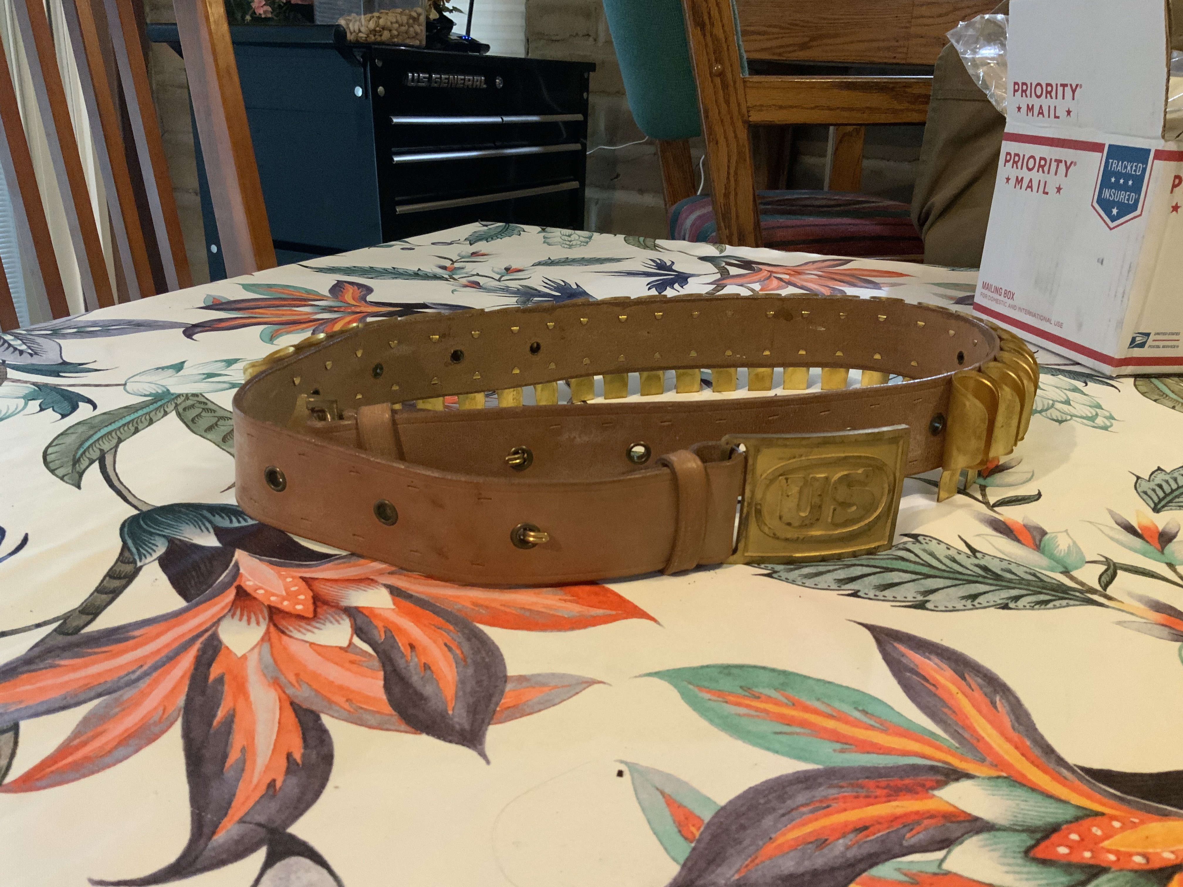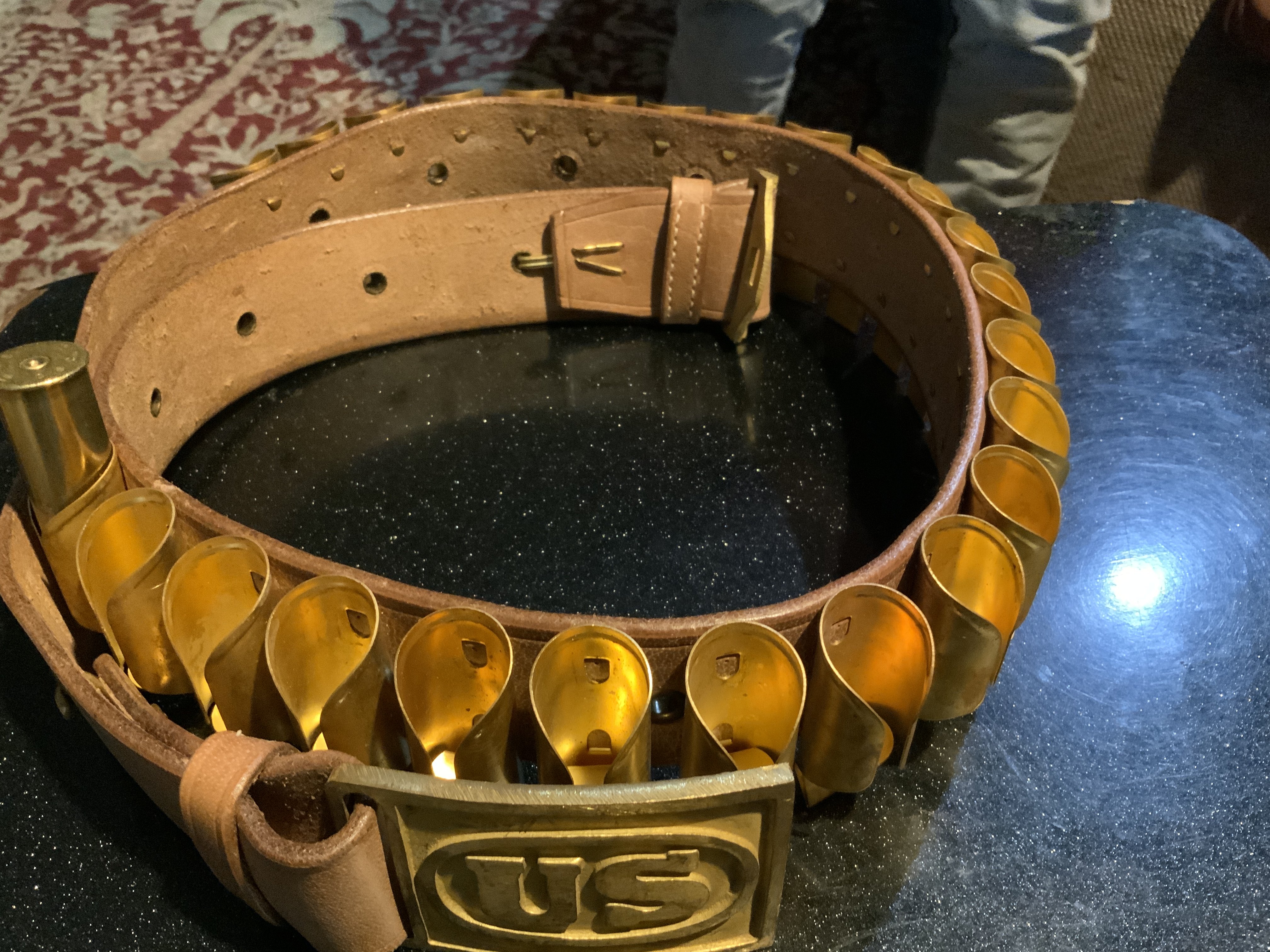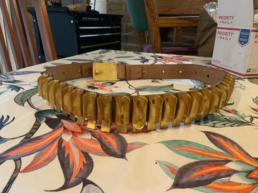 A few years ago there was a pard, Lunger Dan here on the Wire that had built a replica U.S. Army thimble cartridge belt. I guess they call it thimble because the shell holder resembles a thimble. Double Diamond, the pard that does all the leatherwork on the carts that I’ve built and the match director at Escondido told me about these belts being available on eBay. I’ve wanted one for quite awhile and decided to order one. I want to convert it to hold 16 gauge shells and that looks pretty easy to do. Overall it looks pretty well made and has 25 shell thimbles and lots of room for waste size adjustments. https://www.ebay.com/itm/236366547470?_skw=thimble+cartridge+belt&itmmeta=01KA2B1XHTFF9R3XCANPNV9QBP&hash=item37088b4a0e:g:opgAAeSwmBRo4CIg&itmprp=enc%3AAQAKAAAA8FkggFvd1GGDu0w3yXCmi1cOVJ2hzeyImwAycTC0MEeWxNjUZxWw7gXVnyc%2FYSfTwdfnok%2F%2BckES5mwa4efftR3grxNEqBPyxzJiDoBxnYoHCb2IC3%2F3wh%2BiCJY8ccy77D5K4NlcnjSEixZ7MeUnbxCG%2FDCW4dHwsHEwm%2FD1dcsnwxeBS1FbfMDmQIqtA1BffYVt3o8WHQGwsQK979e6EtyC58G7YRXGL1CpcTyMC0TDXpF5nGXxQpZDZr7%2FRHyP0msapeWA4bjHnH8AIrsNs4sVXcA1Tw9TzoWaP836IrcKjwkEc1Ytkw8GFWwr94EKOA%3D%3D|tkp%3ABk9SR4rZh8vQZg