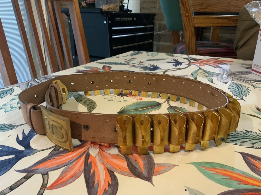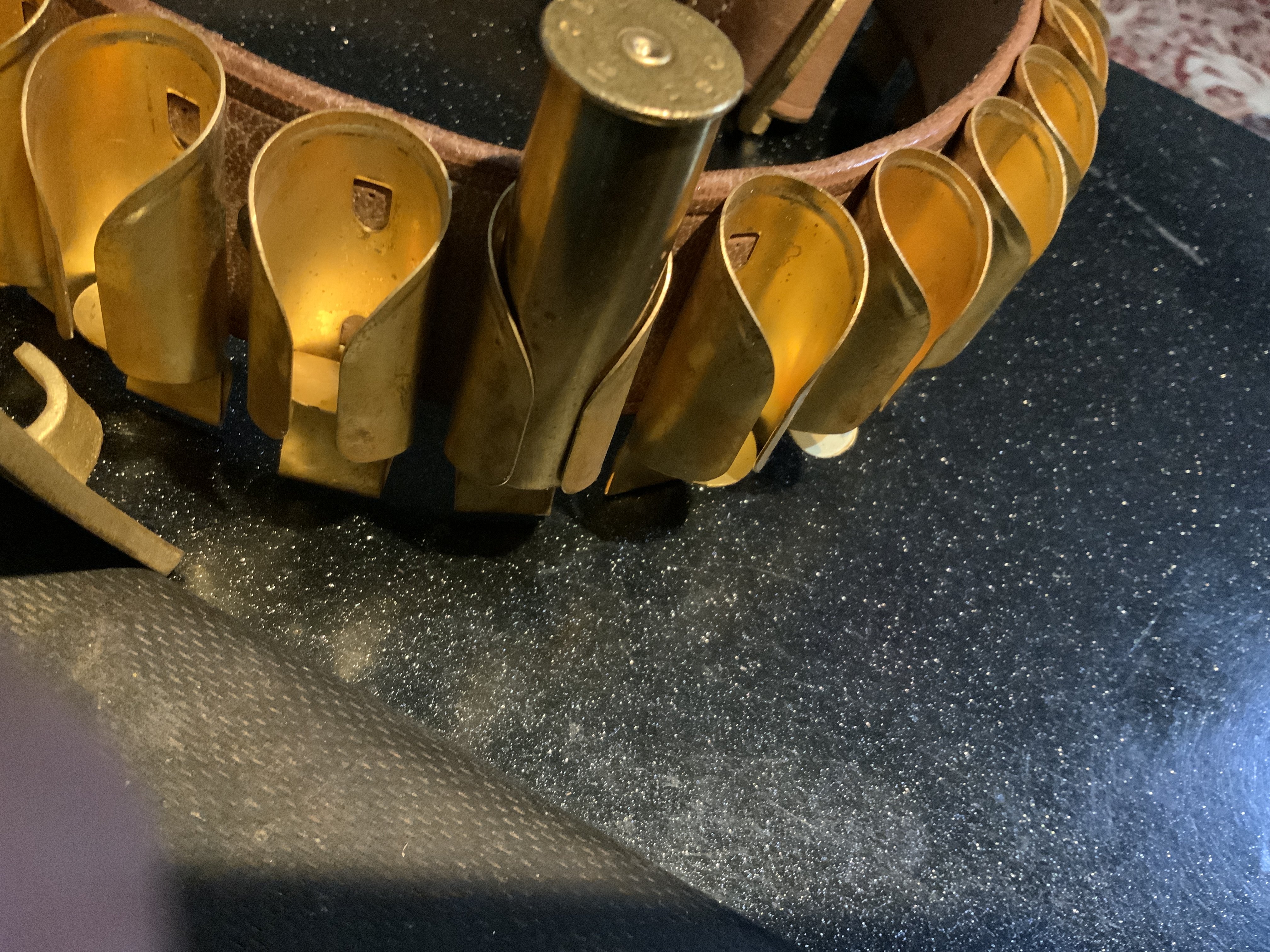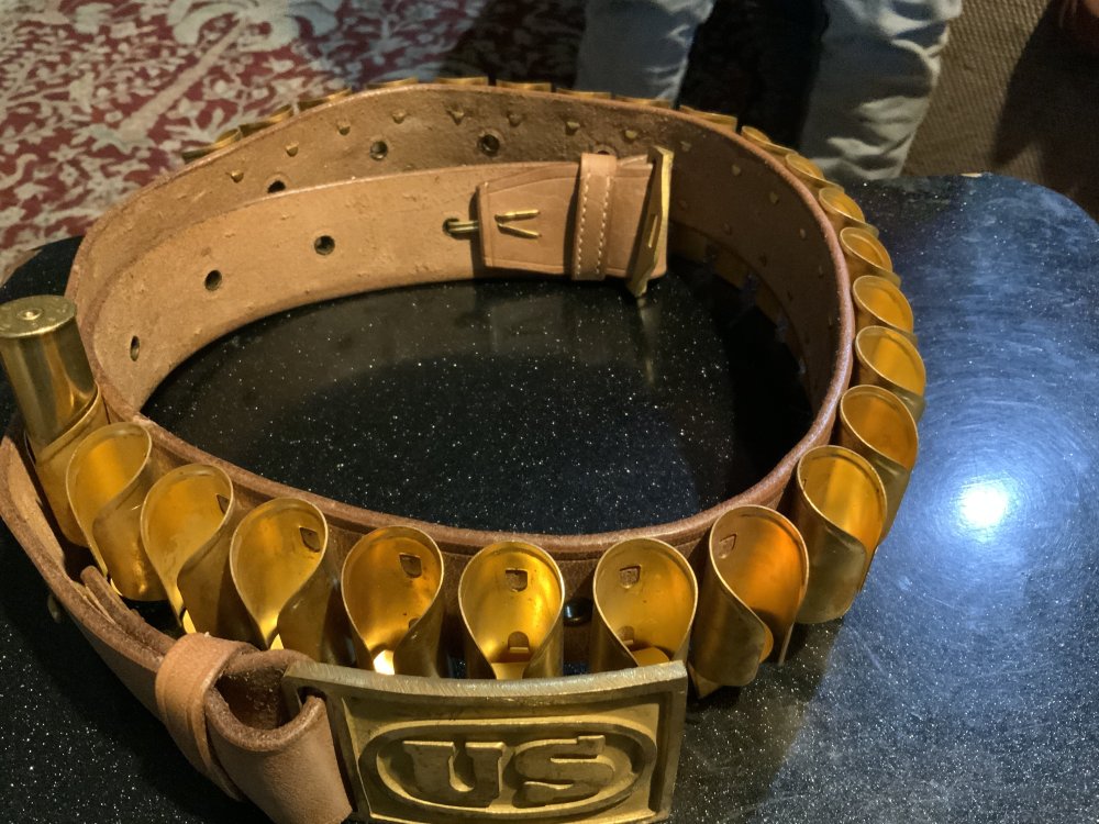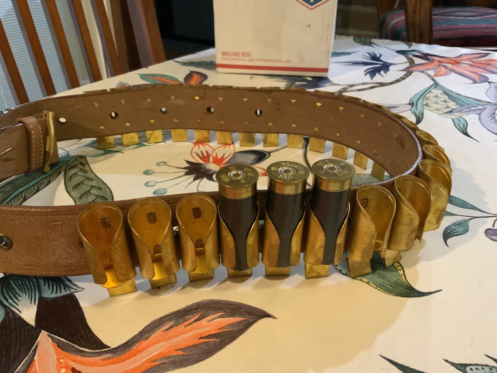 A few years ago there was a pard, Lunger Dan here on the Wire that had built a replica U.S. Army thimble cartridge belt. I guess they call it thimble because the shell holder resembles a thimble. Double Diamond, the pard that does all the leatherwork on the carts that I’ve built and the match director at Escondido told me about these belts being available on eBay. I’ve wanted one for quite awhile and decided to order one. I want to convert it to hold 16 gauge shells and that looks pretty easy to do. Overall it looks pretty well made and has 25 shell thimbles and lots of room for waste size adjustments. https://www.ebay.com/itm/236366547470?_skw=thimble+cartridge+belt&itmmeta=01KA2B1XHTFF9R3XCANPNV9QBP&hash=item37088b4a0e:g:opgAAeSwmBRo4CIg&itmprp=enc%3AAQAKAAAA8FkggFvd1GGDu0w3yXCmi1cOVJ2hzeyImwAycTC0MEeWxNjUZxWw7gXVnyc%2FYSfTwdfnok%2F%2BckES5mwa4efftR3grxNEqBPyxzJiDoBxnYoHCb2IC3%2F3wh%2BiCJY8ccy77D5K4NlcnjSEixZ7MeUnbxCG%2FDCW4dHwsHEwm%2FD1dcsnwxeBS1FbfMDmQIqtA1BffYVt3o8WHQGwsQK979e6EtyC58G7YRXGL1CpcTyMC0TDXpF5nGXxQpZDZr7%2FRHyP0msapeWA4bjHnH8AIrsNs4sVXcA1Tw9TzoWaP836IrcKjwkEc1Ytkw8GFWwr94EKOA%3D%3D|tkp%3ABk9SR4rZh8vQZg