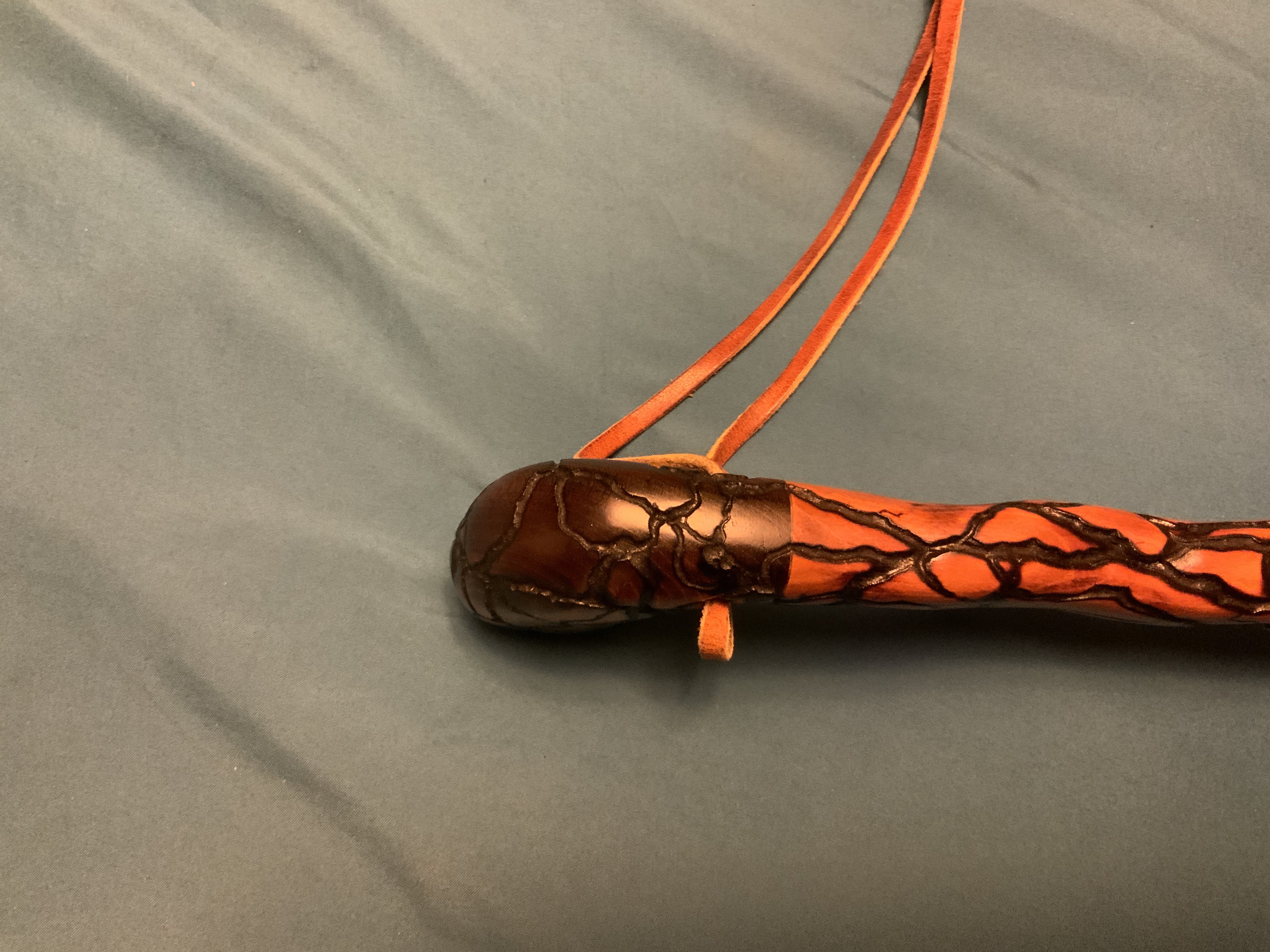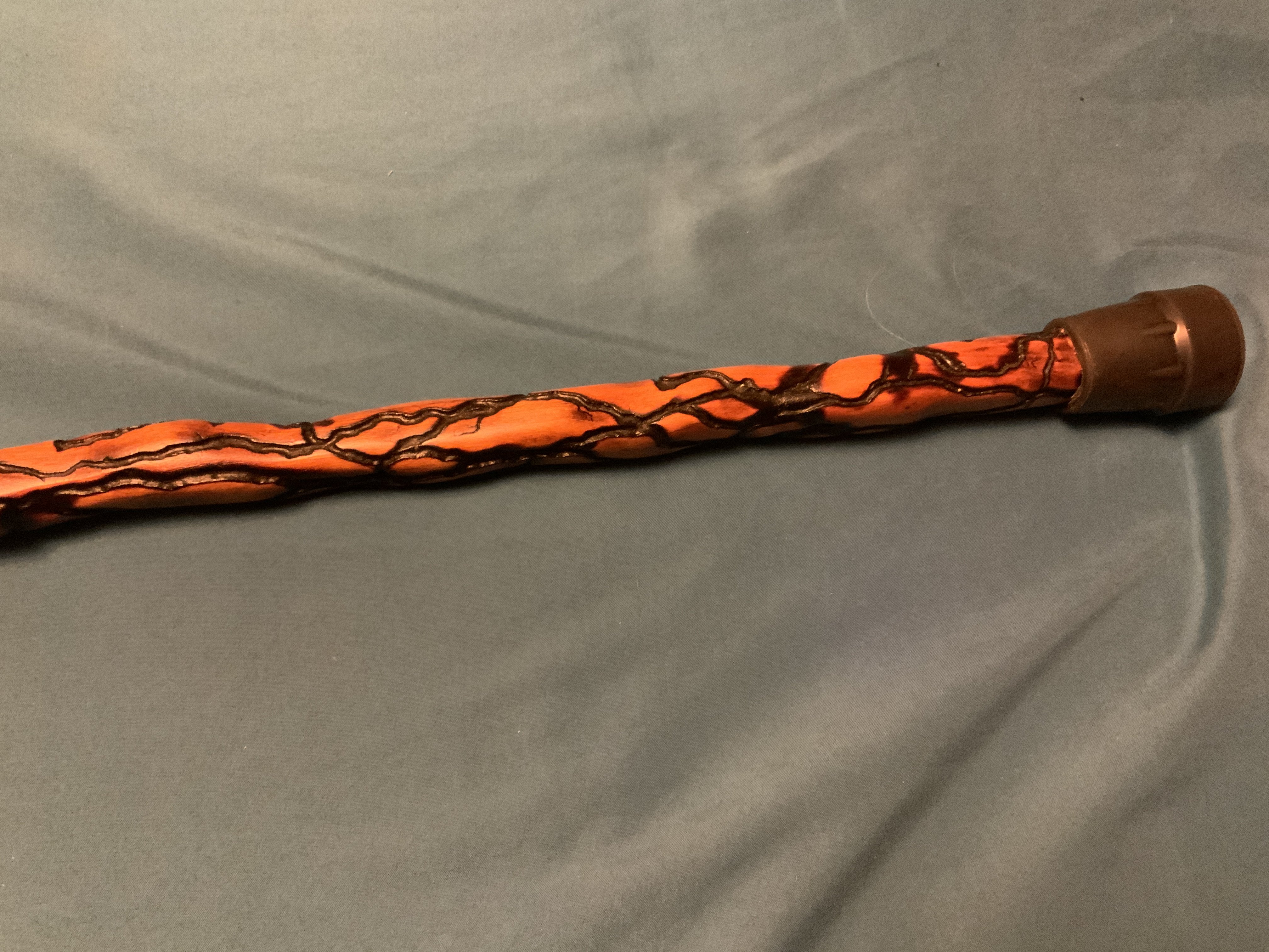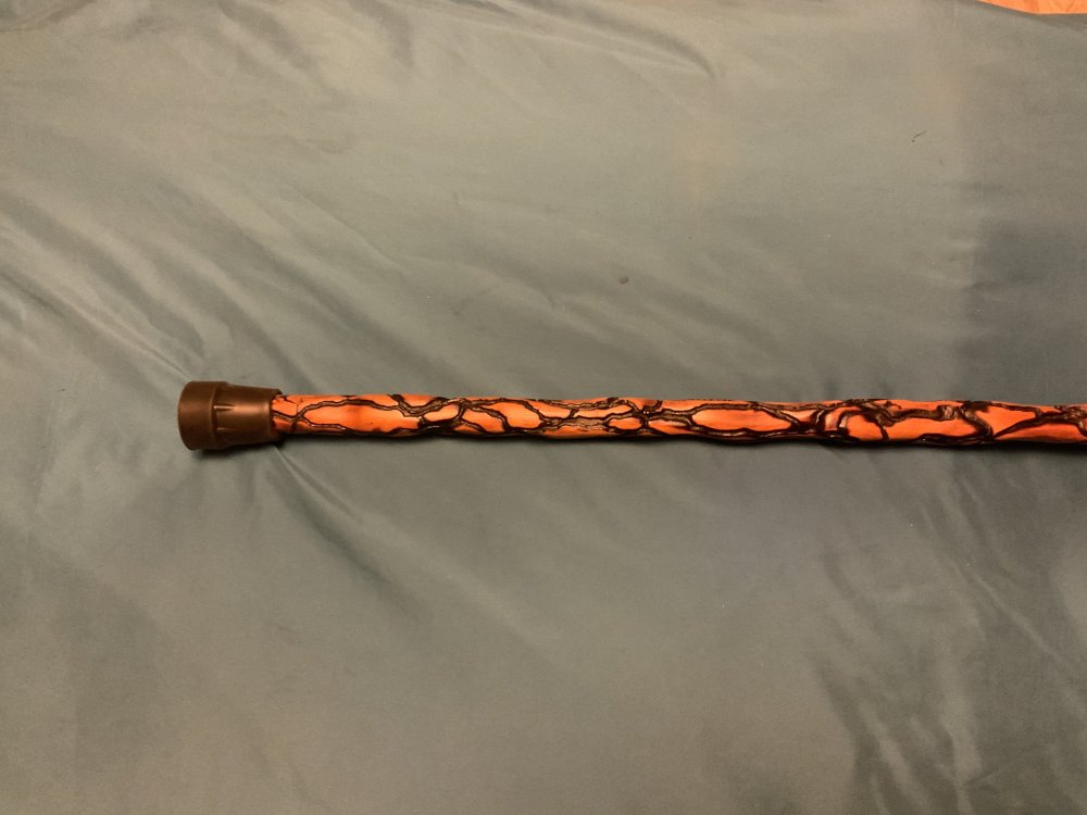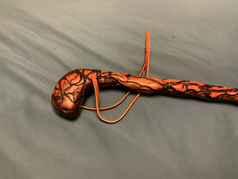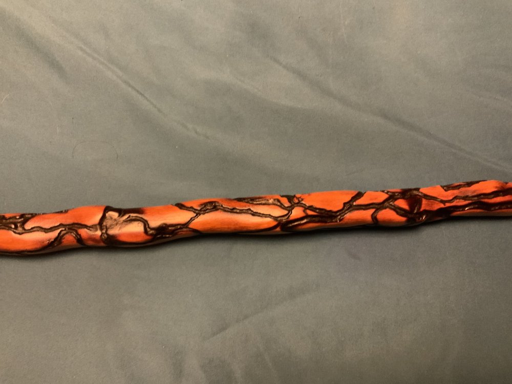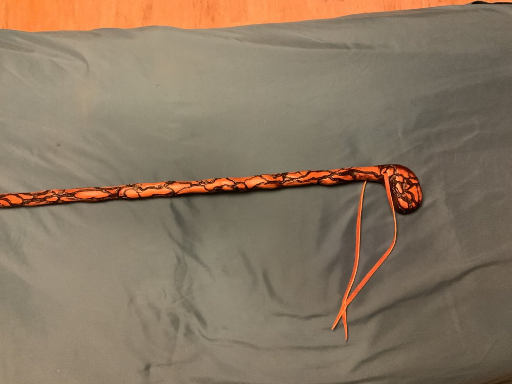 I finished this cane today. I’ve had it standing around the shop for a few years so I decided to get on it and finish it up. It’s cherry with fractal burned enhancements. The fractal burning itself took 5-6 hours. I finished it with 2 coats of teak oil and then 3 coats of polyurethane and a final hand rubbed Liberon bison wax coat.