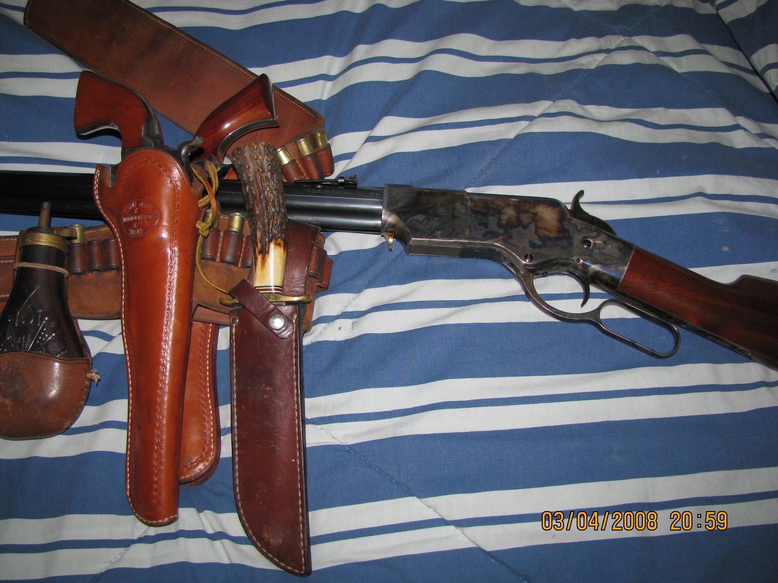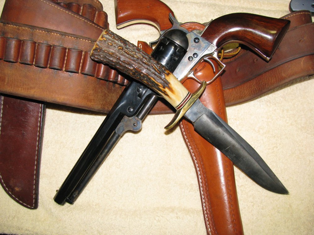 A pair of Colt 1851s, (as designed, not sissified, suppository conversions... even if they are 2nd Gens), a 1860 rifle (being modified to carbine form now) and a Blackjack #7, (for those of us that are wont to bring a knife to a gunfight)!