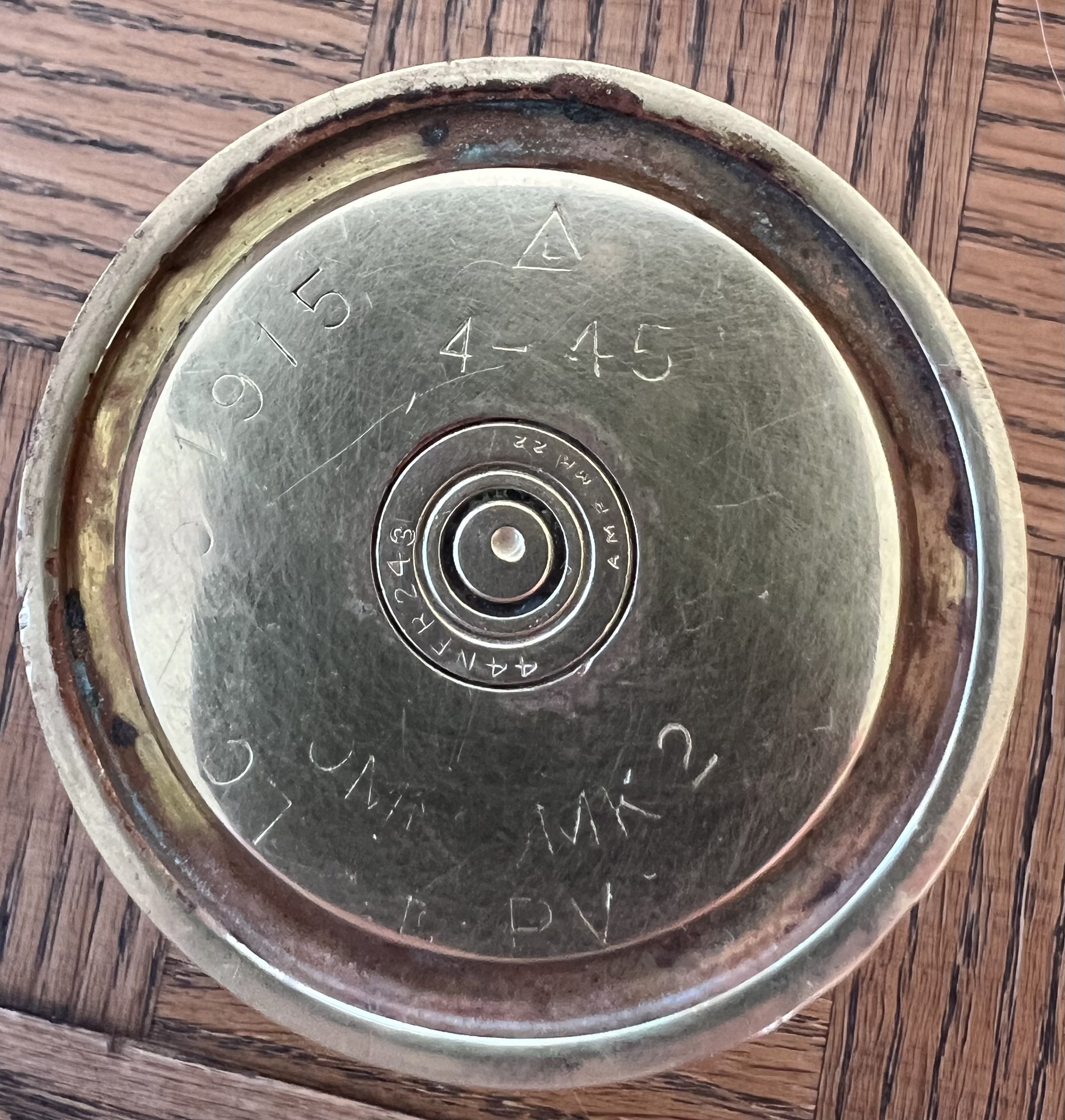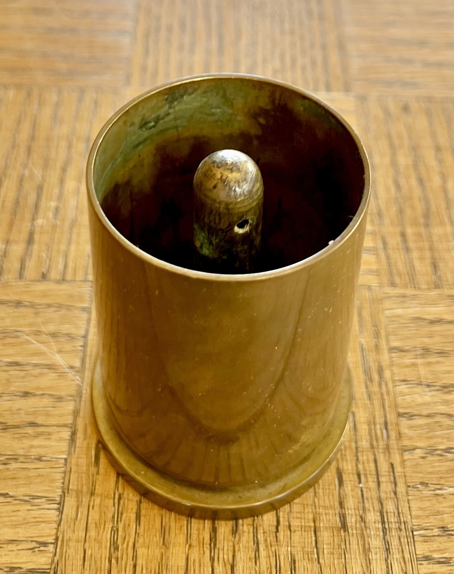 Need some help from you artillery experts in identifying this case? These pics are a cut down 2” case my mom was using as a pencil holder. What kind of round wound this be?