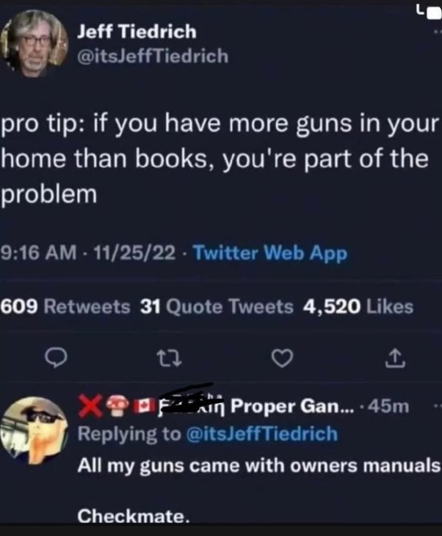 I posted this in the meme thread, but it’s also appropriate here. My last job was a 3 1/2 year stint at an agency I also worked at from ‘89 to ‘04. I was there from Nov. ‘18 to July ‘22. The level of intelligence was significantly lower when I went back to work there. This was evident all the way up through executive management. Anyway, I had this decal on the back of my Miata: I found out that several snowflakes were truly offended and made scared by this decal. I was told to remove it. I told them it was an image on a decal, not a gun. I was told I still needed to remove it. I said “No! This offends me. I have rights under the 1st and the 2nd Amendments and if I am made to remove the decal I will sue the agency and every individual involved. “ I never heard another word until just before I retired. A moron that somehow was two levels above me asked if I was still upset over the whole gun sticker fiasco. I said “No, not really. I just went to my safe space a lot during that period.” ”Oh, you have a safe space?” ”Yeah, it’s called a firing range. I went there a lot.” “A what?” ”An indoor firing range. You know, a gun range? A place to shoot guns.” ”Oh my. I have to go. I will talk to you later.” ‘CLICK’