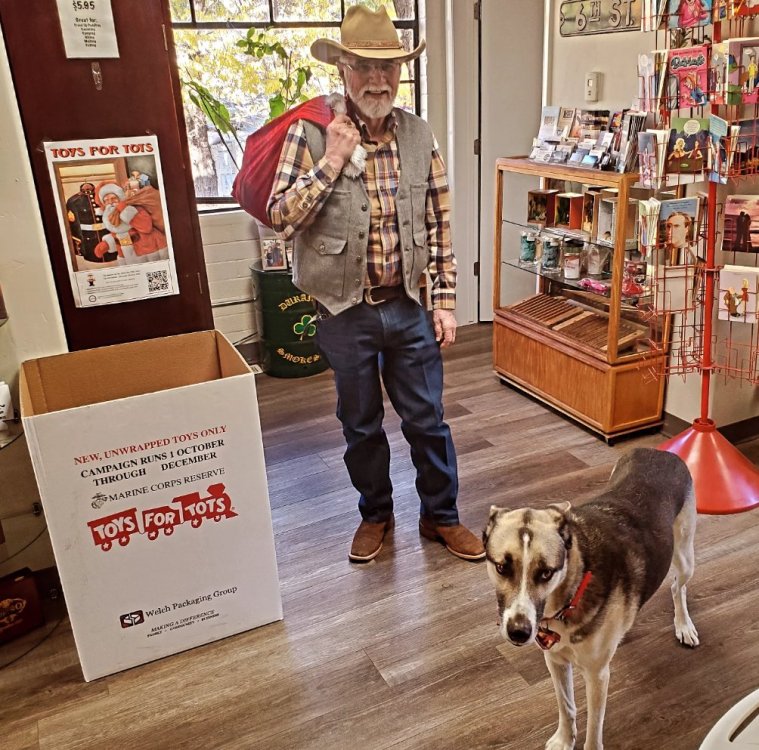 Stopped by the cigar shop to drop some Christmas cheer in the donation box. That’s Charle the official shop greeter. Usually lays right in the door and you have to step over him. 😆