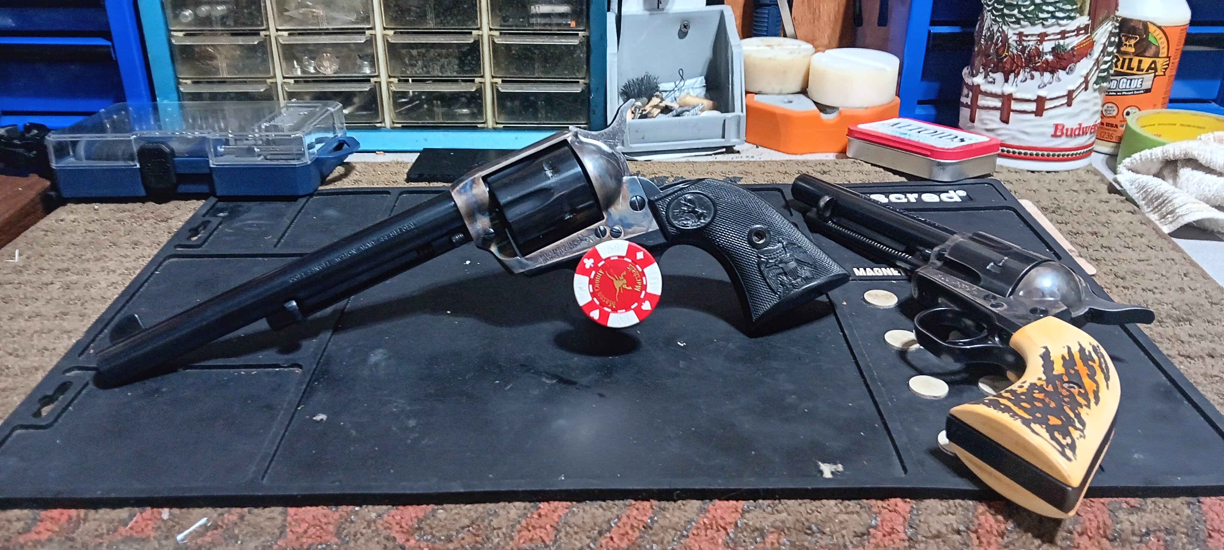 Hi Duke . This is a few pics of my 44 special Colts . The 7.5 is unfired with the original box and papers . The other one is my shooter so I dont have to shoot the 7.5 lol I hope you like them . I love them Myself. God bless all . I pray you all have a Marry Christmas. Rooster