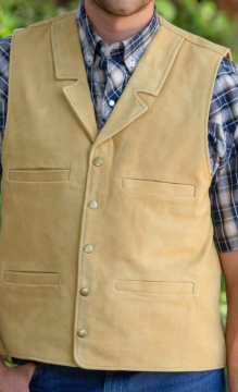 I'm looking for two vests: (1) a 24 oz wool vest, button-front, notched lapels, four shallow front pockets, in Forest Green or Charcoal, or similar: Vest Two (2): Men's (buffalo?) leather vest, button-front, notched lapels, four shallow front pockets, in tan or light brown, similar: I could order these new, but I have so many extra cowboy clothes, and I can't be the only one with too many costumes, so I thought I'd see if anyone has a closet that needs to make some room ! LOL Please send me a picture and your price. Hopefully we can help each other.