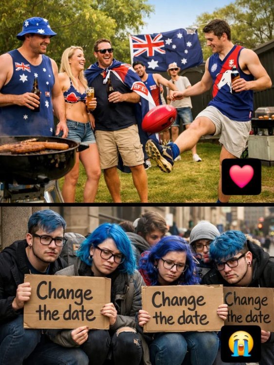 Tomorrow is the 26th January - Australia Day. My Uncles birthday, I never met him. His plane was shot down by a Japanese Zero in the Pacific in WWII. 99% of Australians will be enjoying Australia Day with family and friends, 1% will be protesting and calling it 'Invasion Day' and wanting the date changed because it marks the 1788 landing of the First Fleet and the raising of the Union Flag of Great Britain by Arthur Phillip at Sydney Cove. Suck eggs losers.