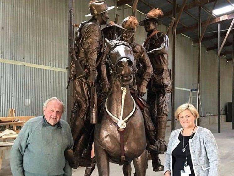 ‘BILL THE BASTARD’ Australia's greatest war-horse was the unlikeliest of heroes. ABC. Bill was not an easy stallion to ride, and earnt himself the unflattering nickname 'Bill the Bastard' At the Battle of Romani, Bill made an astonishing rescue and saved four soldiers A sculptor has now made a bronze statue to commemorate Bill and his rider Michael Shanahan's noble actions The big, partly broken-in stallion played up so badly while being loaded onto the troop ship he was nearly left behind in Australia. On arrival in Egypt, he was declared unrideable and given an unflattering nickname. "He was called Bill the Bastard because no man could mount him and ride him. He threw them off, he didn't just smash them into the ground, he put them into orbit," historian Roland Perry said. So the 17.1-hand chestnut was put to work as a packhorse at Gallipoli. "When Simpson died, Simpson and his donkey, it was Bill that brought him down from the heights," Mr Perry said. "He used to take ammo, food and water up and bring the dead and wounded back down, gently, he never bucked anyone off. It's amazing when you think about it," said Terry Shanahan, the grandson of the only man who ever rode Bill. While Bill was recovering from bullet wounds to the rump, Terry's horse-whispering grandfather Major Michael Shanahan won Bill over with kindness and licorice allsorts. "He helped the vet nurse him, he took him into the water at Gallipoli and when they all got back to Egypt he fought very hard to get Bill as a match," Mr Shanahan said. Australian poet Banjo Paterson headed the Remount Service there and was reluctant to hand Bill over to Major Shanahan. He had been making "a few pounds" betting how long soldiers could stay on bucking Bill. "Eventually granddad took him out into the desert and came back half an hour later and he was as placid as anything, he was the only bloke who could ever get on Bill," said Mr Shanahan. It was at the Battle of Romani in 1916 where Bill and the Major made an astonishing and little-known rescue galloping towards advancing Turkish soldiers to save four comrades. "Four Tasmanian troopers had their horses shot from under them so they're left stranded in no-man's-land," Roland Perry recounts. "Major Shanahan got them up onto Bill, he had this reputation of being a pretty ornery horse, how would he cope with five human beings on him?" "Under Shanahan's calm direction he took the five of them off." Incredibly, Bill and the Major returned immediately to battle. "Shanahan keeps on battling Turks, then he collapses because he's been shot in the leg and Bill walks him slowly back to the horse depot." Major Shanahan's leg was amputated. He was sent to England, never to see Bill again. He was awarded a Distinguished Service Order, while Bill's reward was to be decommissioned, never to carry a soldier into battle again. 'Retreat from Romani' memorialised Roland Perry's book 'Bill the Bastard' inspired sculptor Carl Valerius to recreate the daring ride of Bill and the Major in bronze. Fittingly, Mr Valerius lives in Murrumburrah, north west of Canberra, where in 1897 the first Light Horse Troop was raised to fight in the Boer War. It's taken him nine years to capture Retreat from Romani, the moment when Bill and the Major carried four troopers to safety "What an incredible ask of an animal, but he seemed to know the circumstances in which he found himself, and the trust he had in the Major was incredible, the same as the trust the Major had in the horse, it's not a one-way thing it's a two-way thing." "No-one could imagine the sort of fear these men would be going through when Bill came along and picked them out of the middle of a battlefield and rode them a couple of miles to safety, it just amazes me," he said. Very few war horses returned to Australia. Most were shot to save them from a life of misery after the war. Bill escaped that fate. He returned once again to Gallipoli as a packhorse to assist soldiers collecting battlefield artefacts. It's believed he lived out his life with Turkish farmers, who were warned never to put anyone on his back.