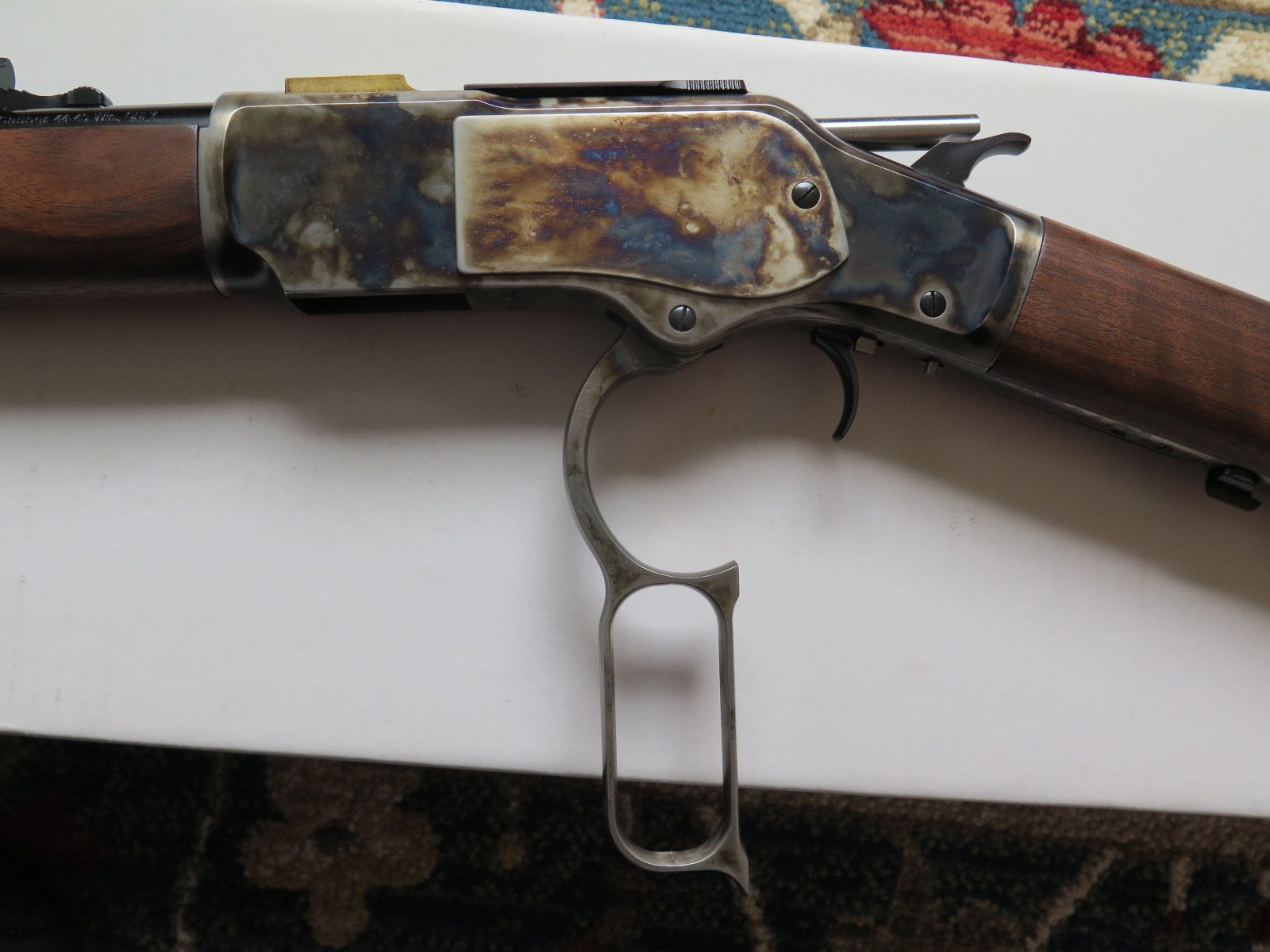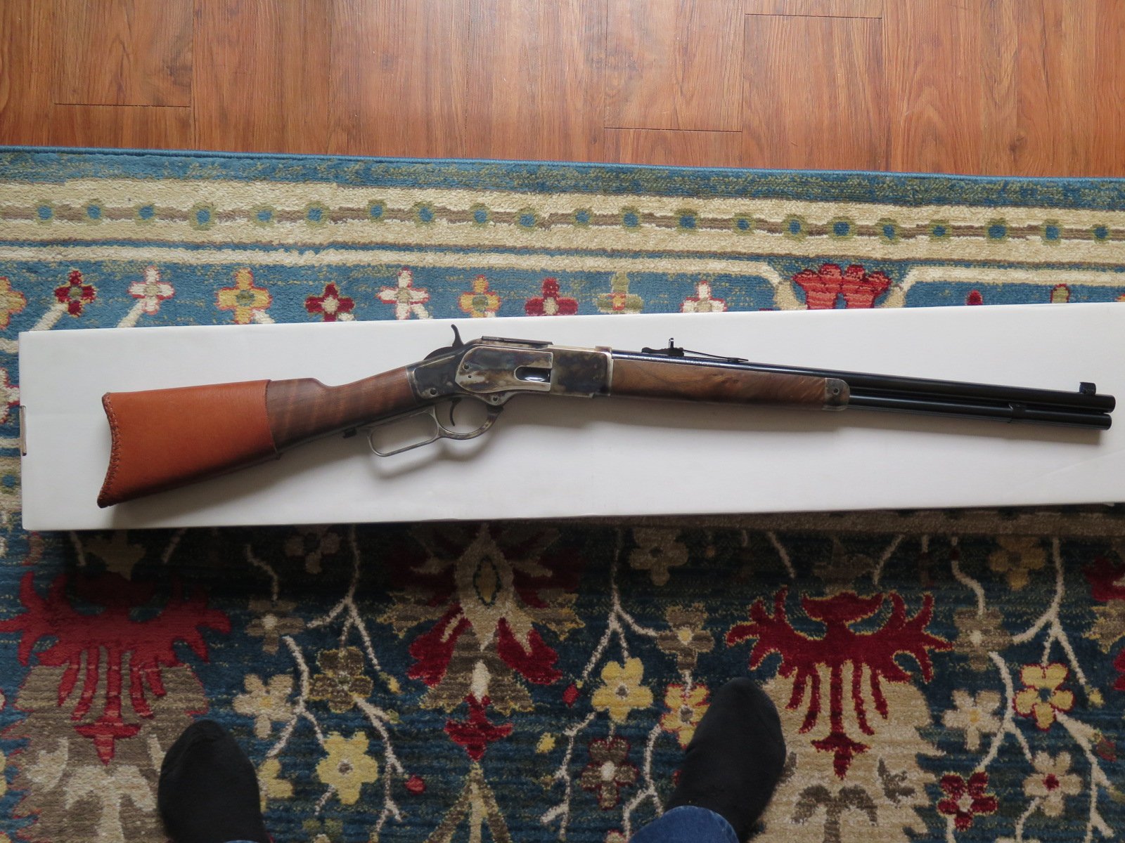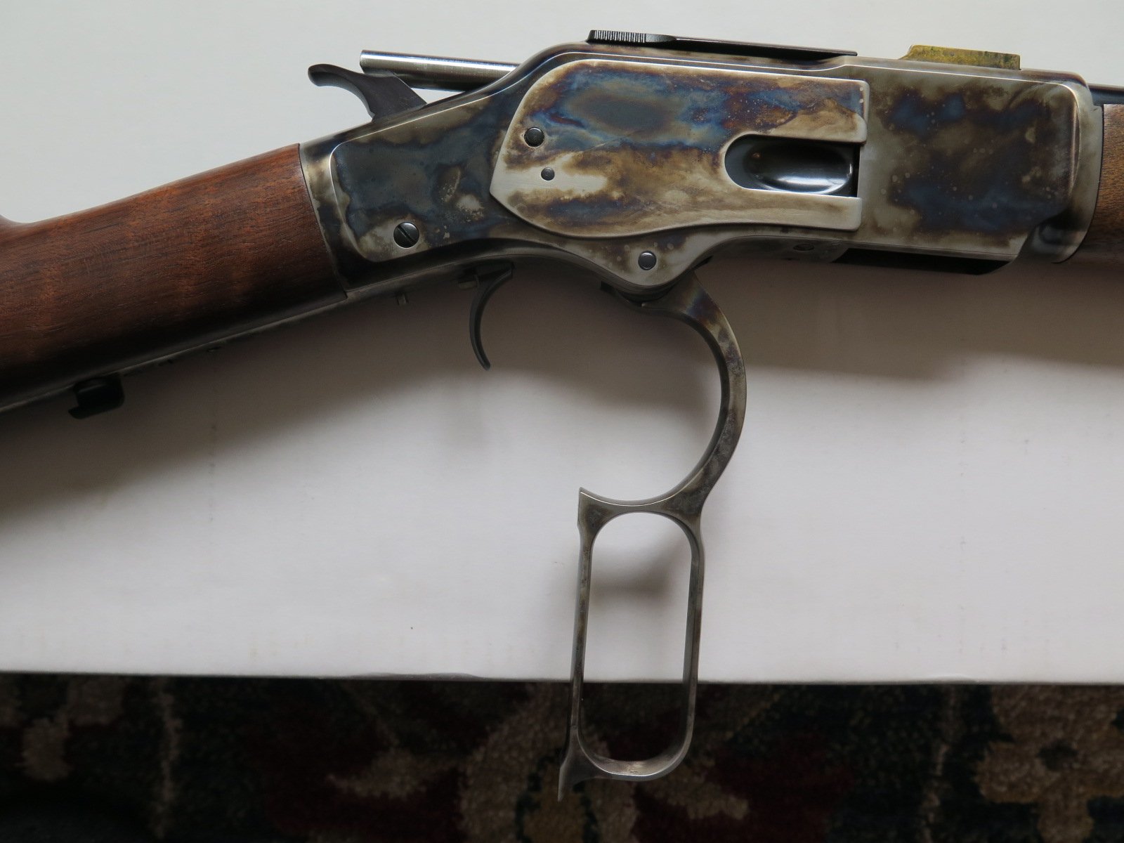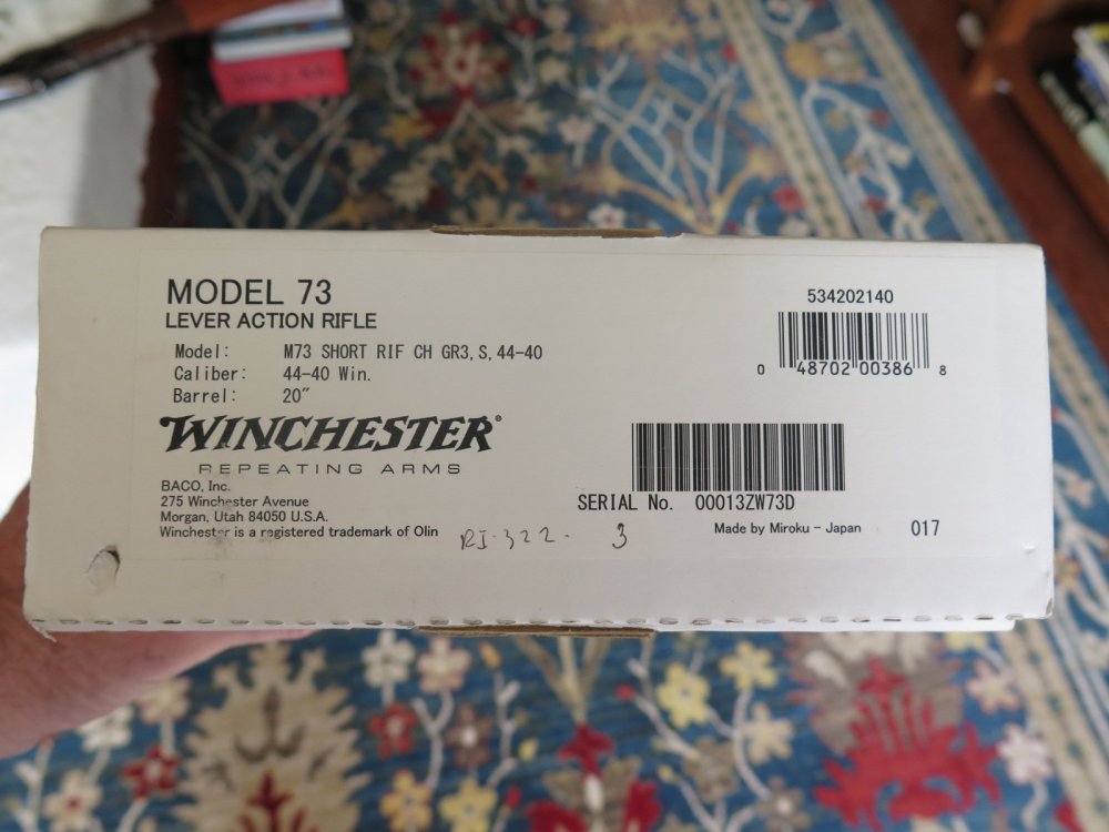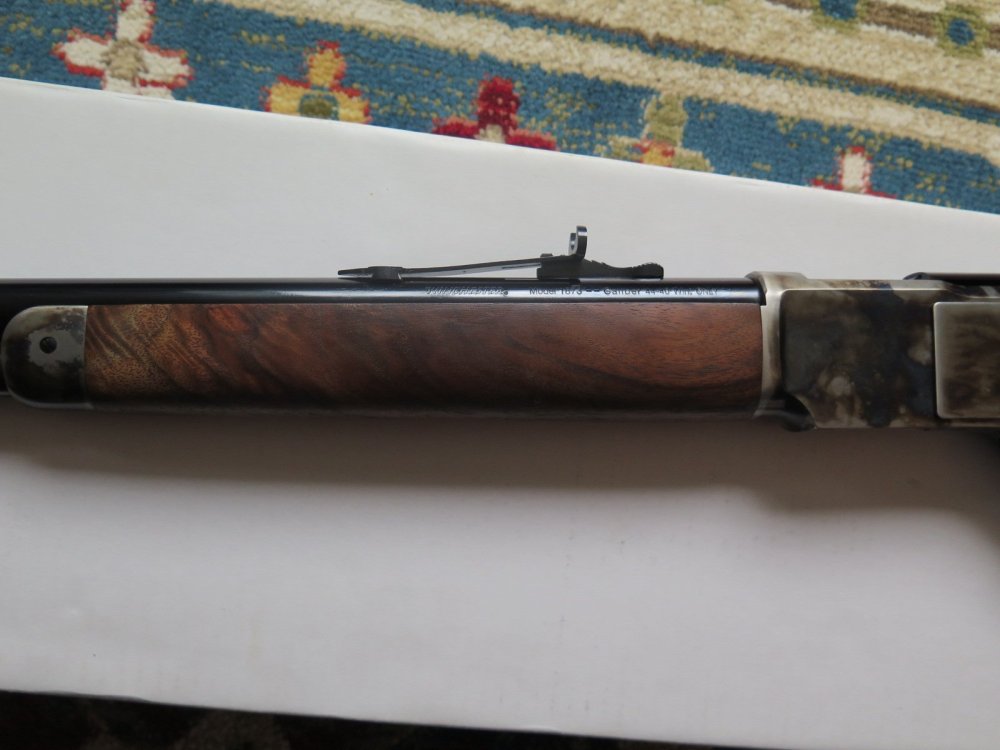 For Sale: Modern Winchester Model 1873 Short Rifle Chambered in .44-40 Up for sale, I have a modern made Winchester Model 1873 Lever Action Short Rifle, manufactured by Miroku in Japan for Winchester, chambered in .44-40 caliber with 20 inch barrel and case-hardened frame. [Model: M 73 Short Rifle, CH GR3, S, 44-40]. I purchased this rifle new back in 2014 and it is still in very good to excellent condition with really nice wood and case colors. It has been used some but it has not been abused or ever knocked around in a cart (I carry my long guns in a case, even at shoots). The box and manuals are also present and included with the sale. No sales to California because I have not found a local FFL dealer who will ship there and no sales to Alaska or Hawaii due to the cost. Price: $1295 shipped To an FFL in the lower 48 States (except California as noted above). Thank you for looking. Professor Thoreau SASS Life # 2611