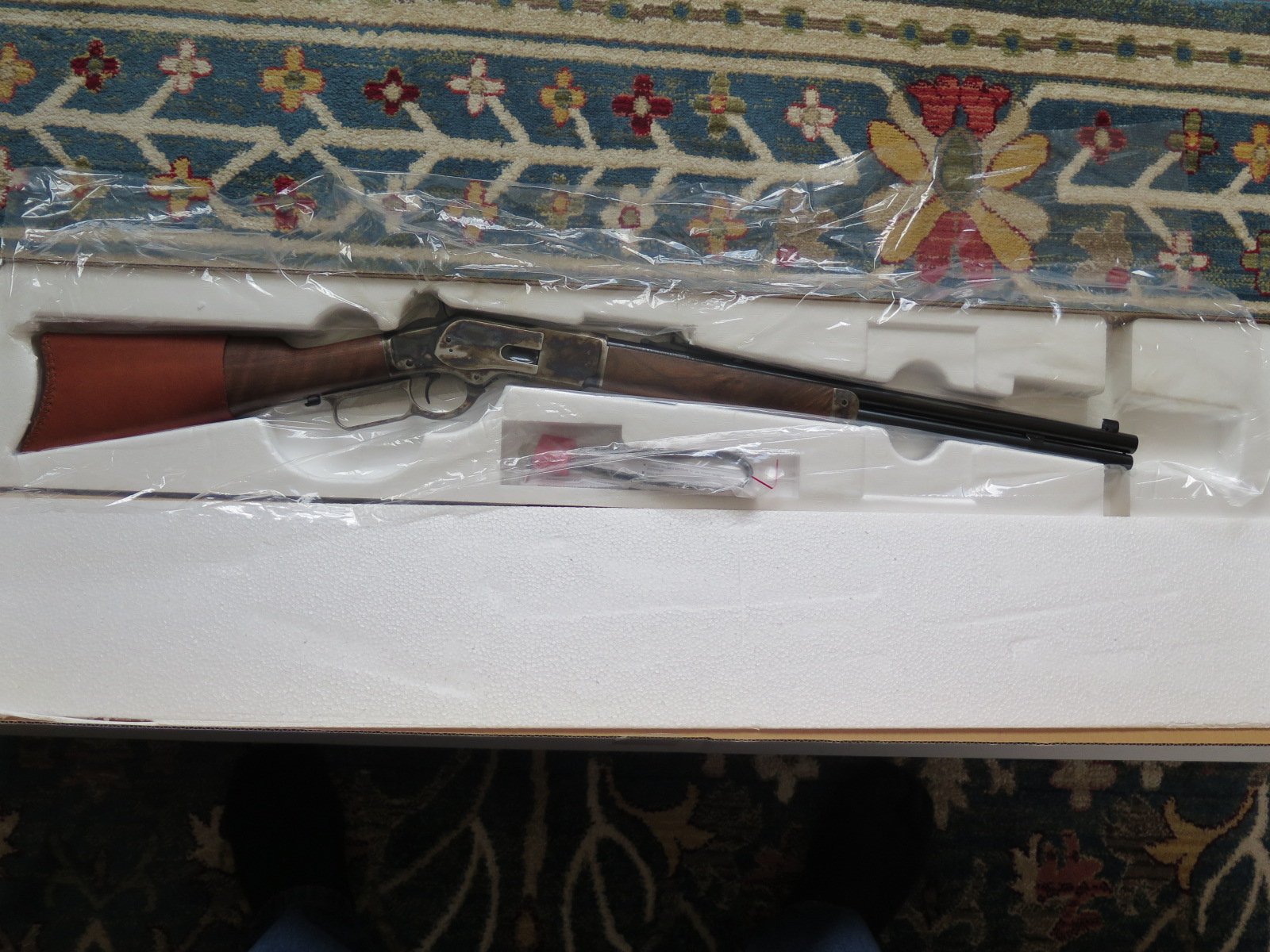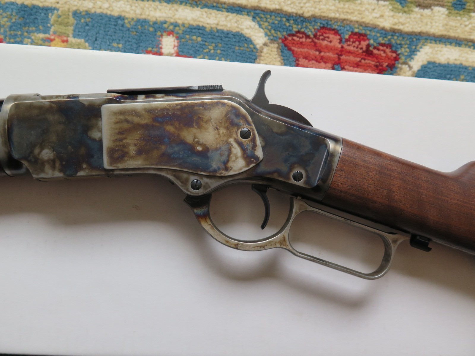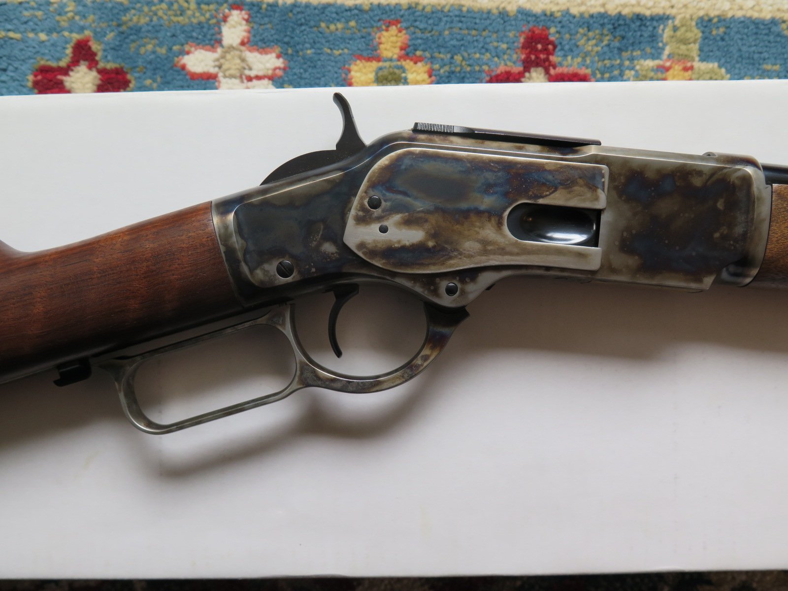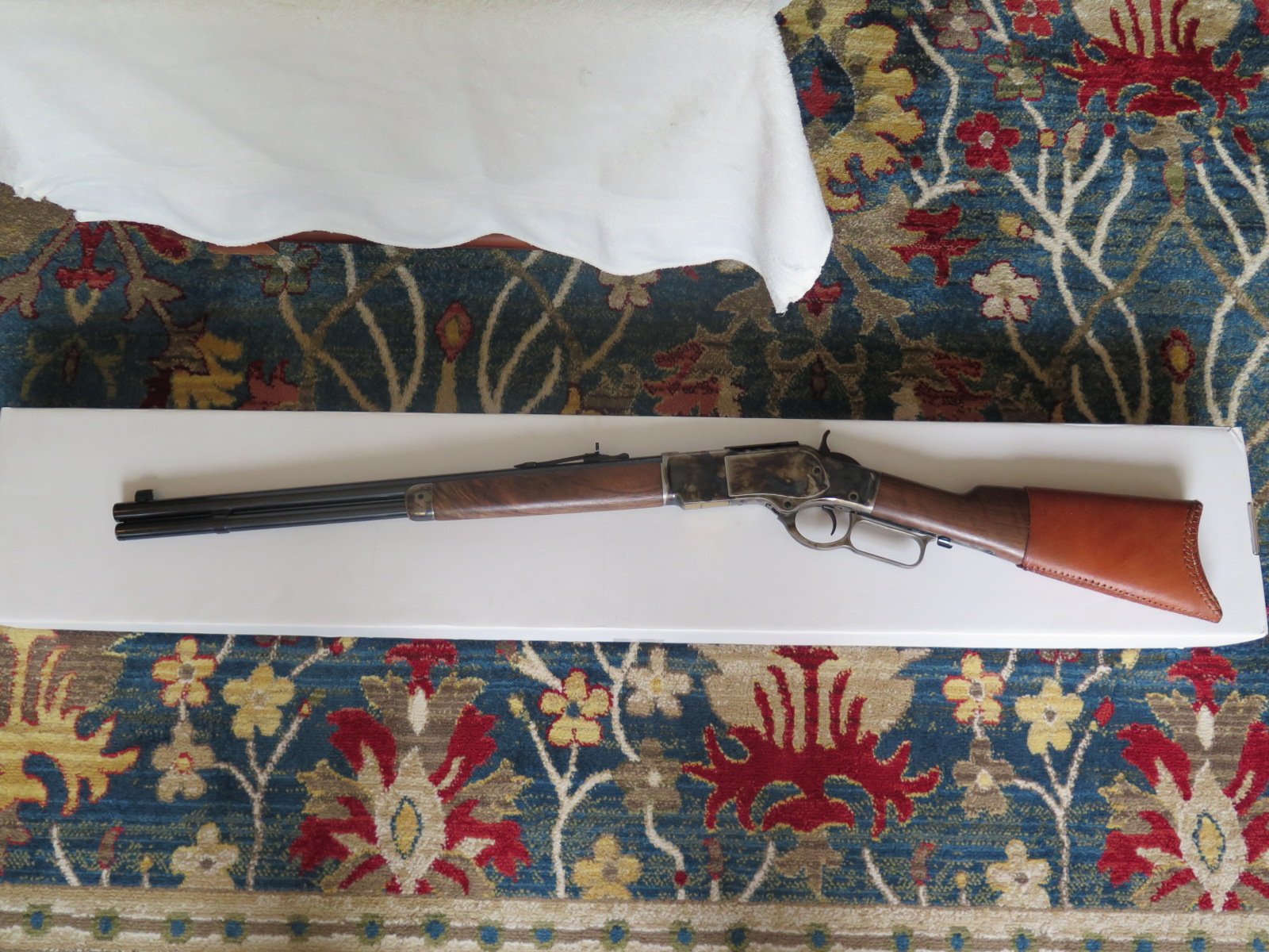 For Sale: Modern Winchester Model 1873 Short Rifle Chambered in .44-40 Up for sale, I have a modern made Winchester Model 1873 Lever Action Short Rifle, manufactured by Miroku in Japan for Winchester, chambered in .44-40 caliber with 20 inch barrel and case-hardened frame. [Model: M 73 Short Rifle, CH GR3, S, 44-40]. I purchased this rifle new back in 2014 and it is still in very good to excellent condition with really nice wood and case colors. It has been used some but it has not been abused or ever knocked around in a cart (I carry my long guns in a case, even at shoots). The box and manuals are also present and included with the sale. No sales to California because I have not found a local FFL dealer who will ship there and no sales to Alaska or Hawaii due to the cost. Price: $1295 shipped To an FFL in the lower 48 States (except California as noted above). Thank you for looking. Professor Thoreau SASS Life # 2611