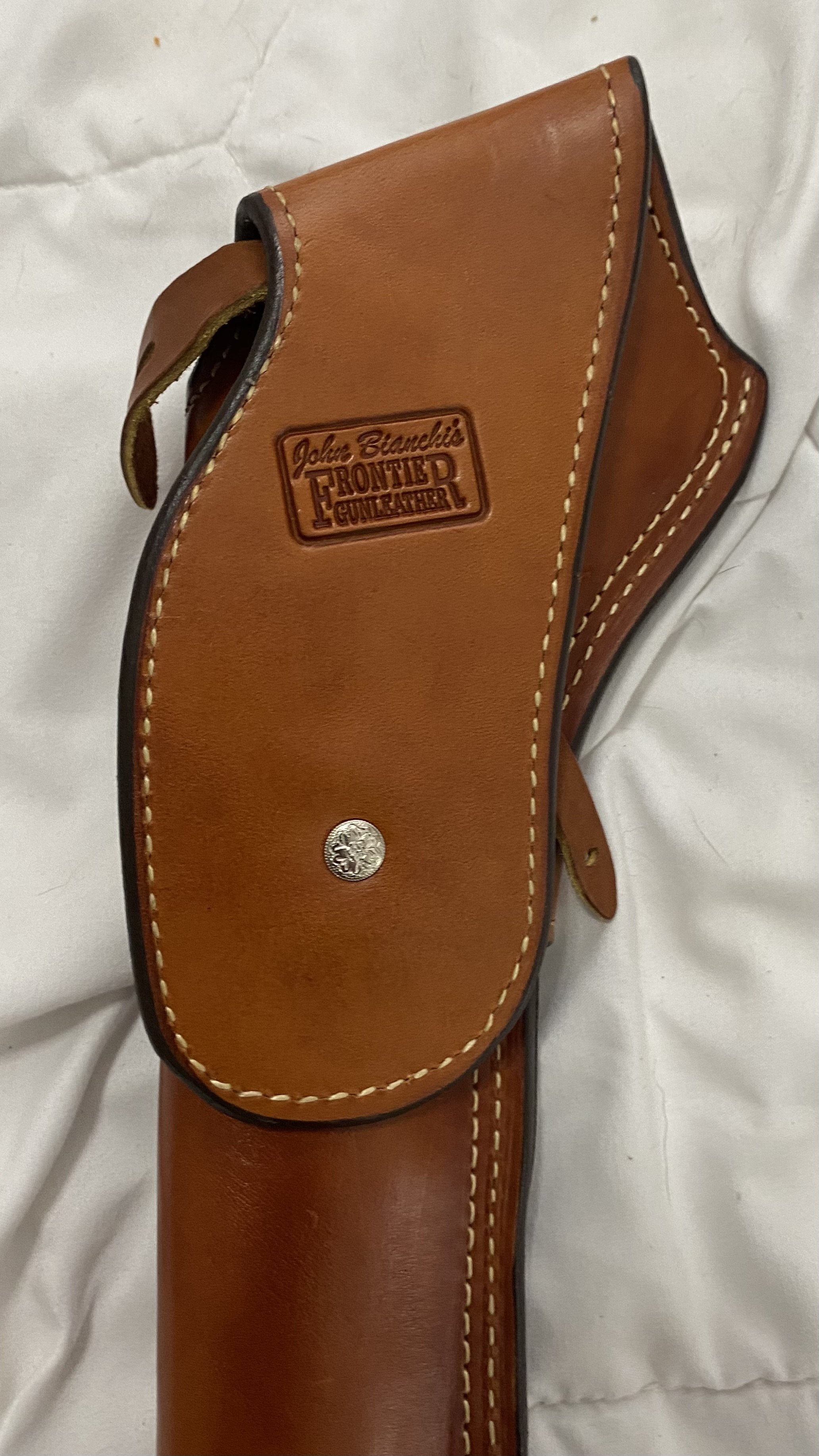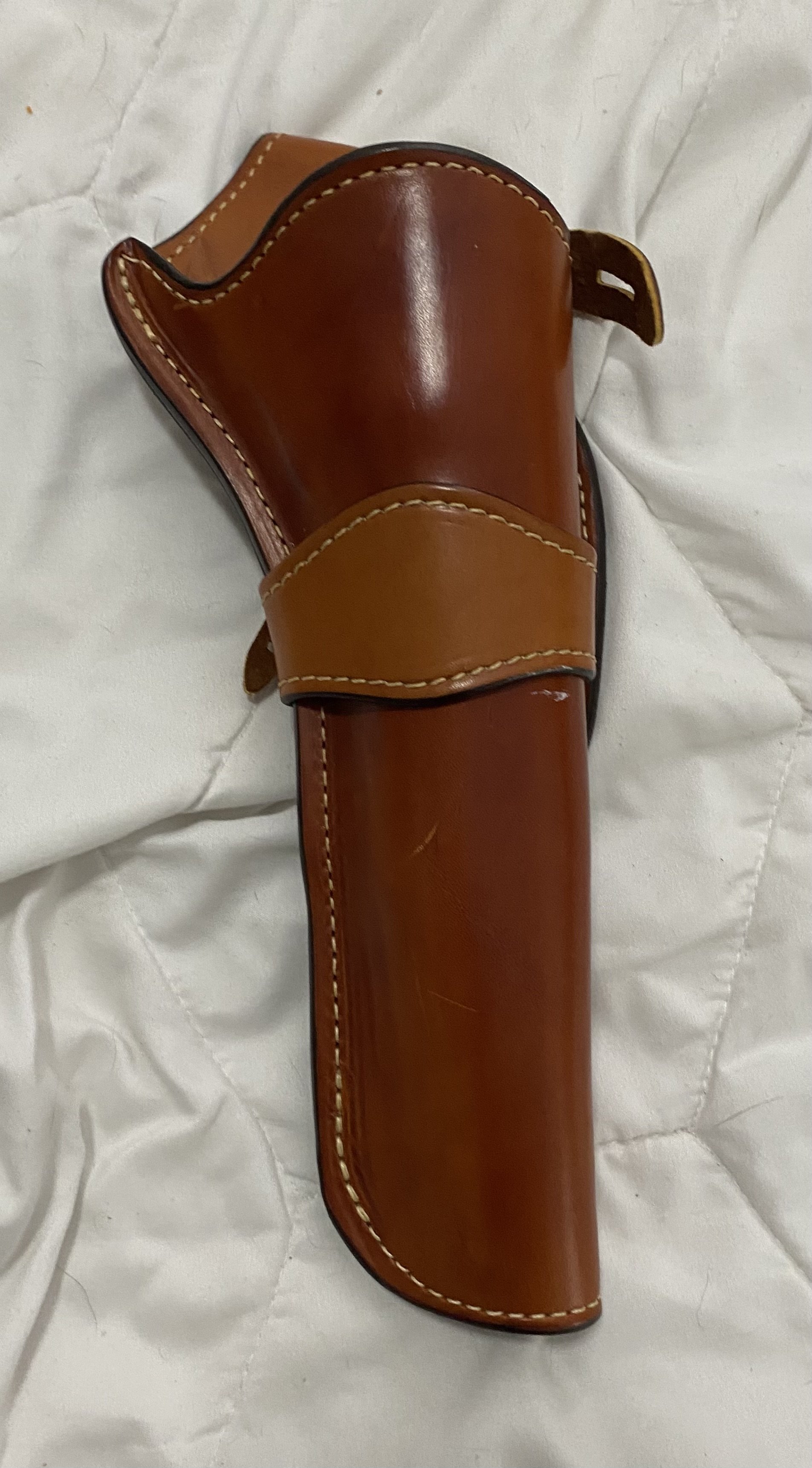 Bianchi Duke Holster Right Hand Strong Draw 7-1/2” only I’ve had both Uberti El Patron and Ruger OMV in it both fit. Though my guns were 4-3/4 barrels I see no issue. It looks new/unused. $125 shipped.