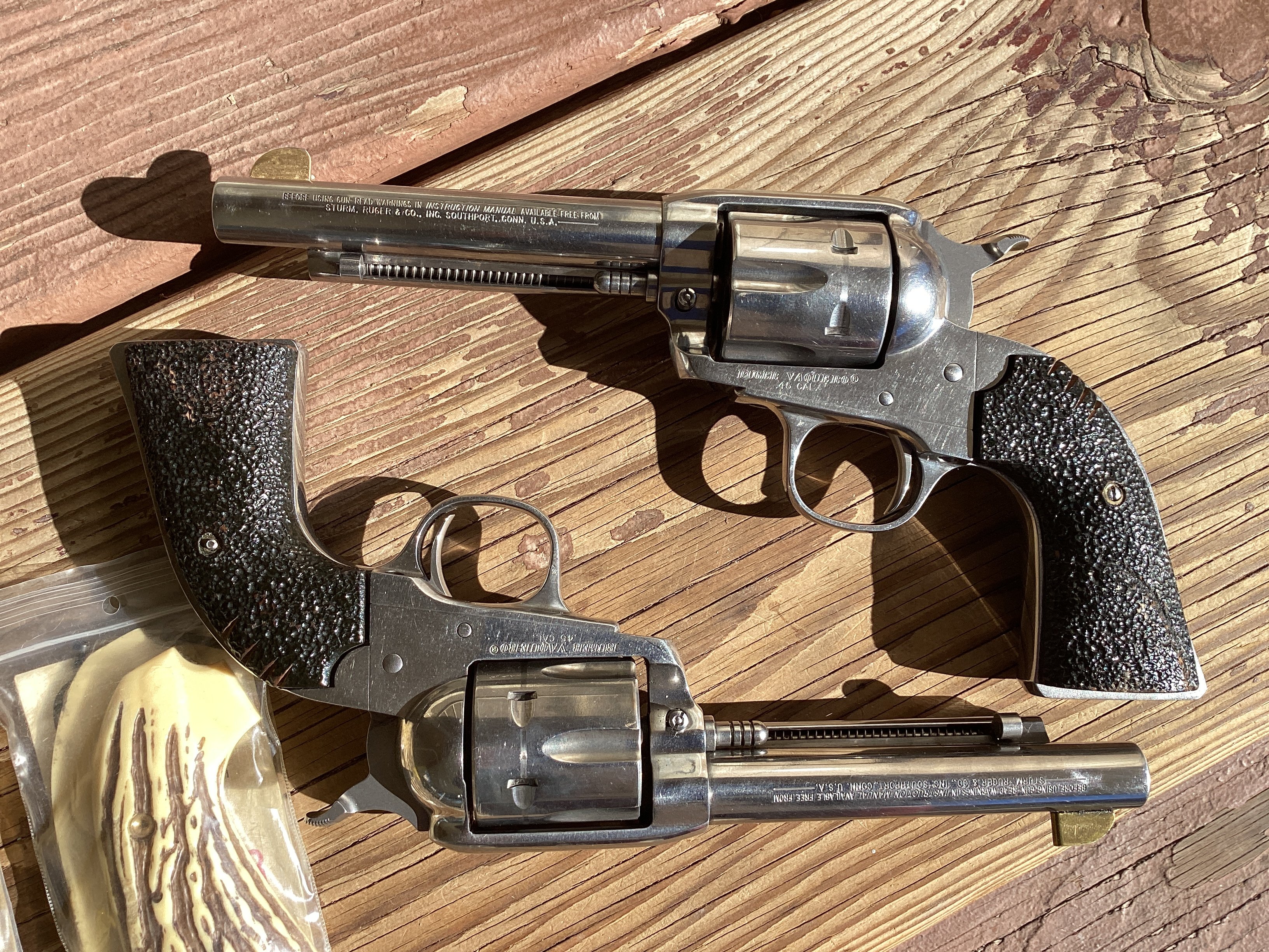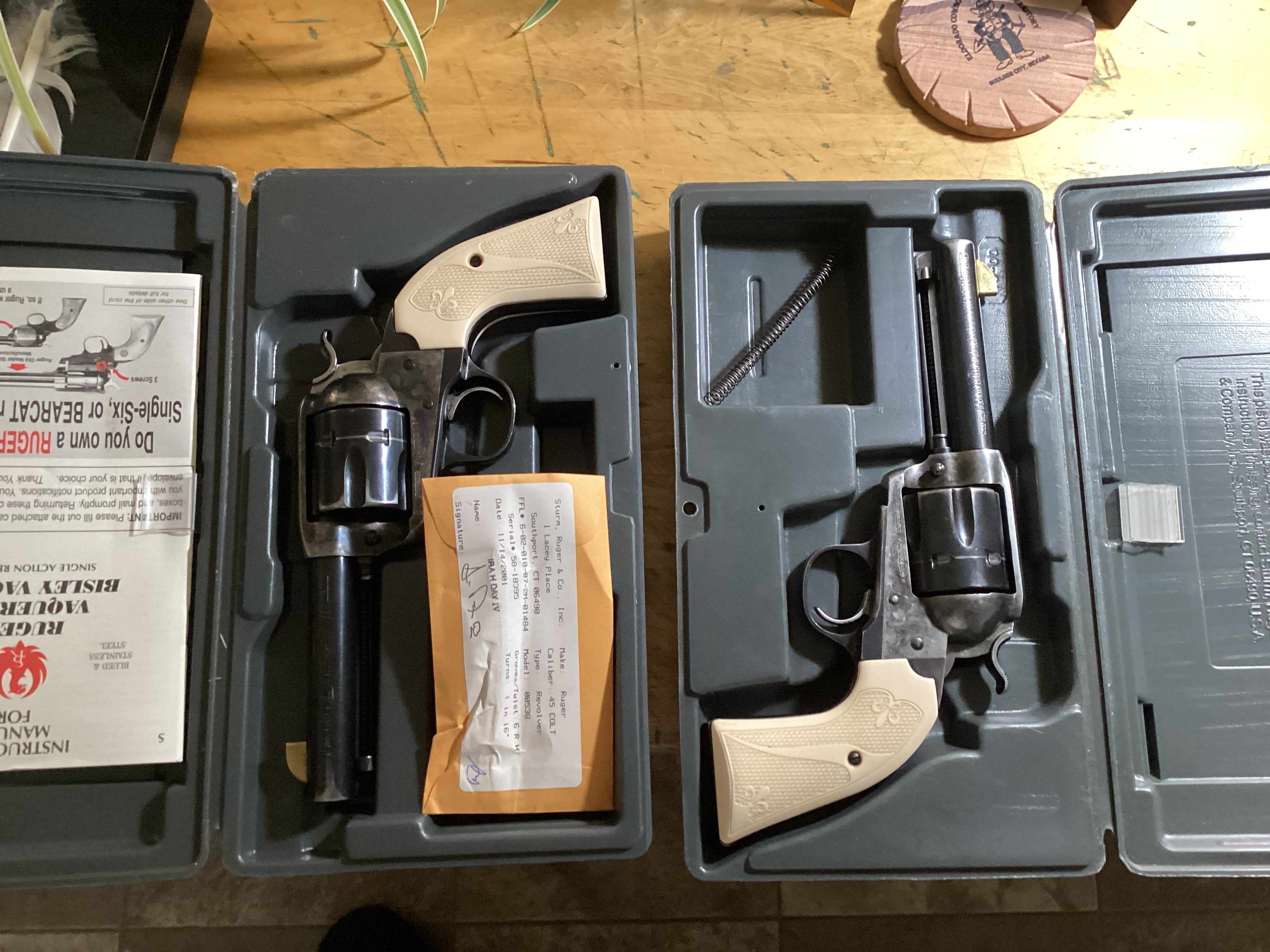 I have a set of un-molested Ruger New Model Single Six's in 32. These are in excellent condition. I'm sure have been shot, but not by me. They come with papers, boxes and locks. One of the boxes does not match the serial number. Thanks!! Yank http://www.badgeguys.com/sell/32_1.jpg http://www.badgeguys.com/sell/32_2.jpg