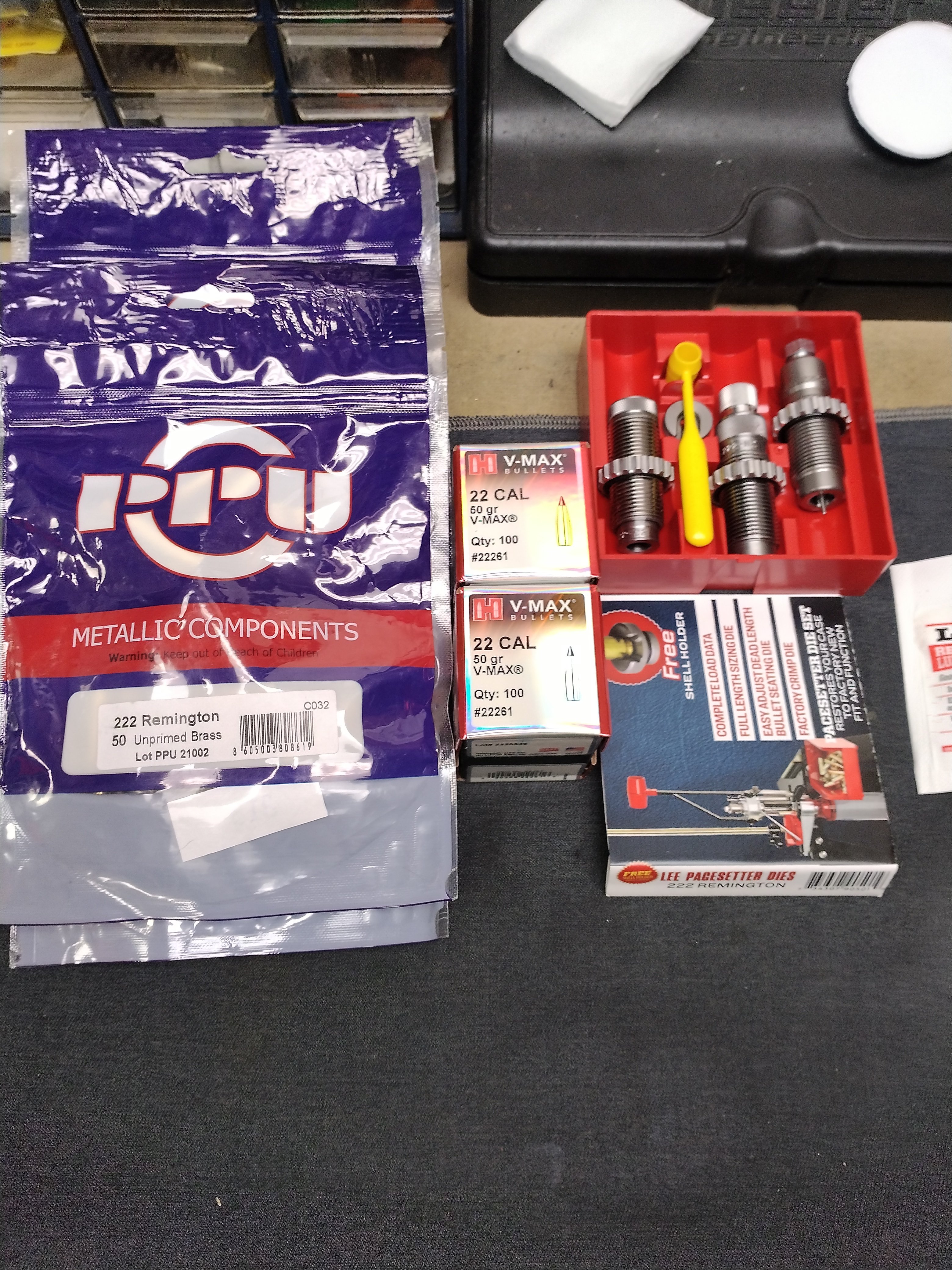 5- bags of new 50 ea. PPU 222 Remington brass.
