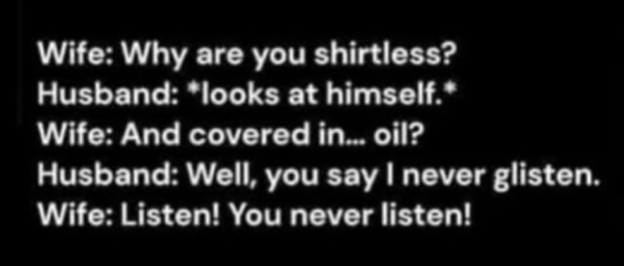 Subdeacon Joe Posted February 18, 2024 Author Posted February 18, 2024 9 hours ago, Rip Snorter said: Y That is right up there with "Do these shorts make me look fat?" 40 years on my response "I like some of your other ones better" still resonates on occasion. Do not say, "No, those shorts don't make you look fat... your fat makes you look fat." That sort of comes from SHMBO. I had made the comment, "I'm glad you don't play those games " after hearing That Question on a TV show. She said, "I don't need to. I know my clothes don't make me look fat, my fat makes me look fat." She had also quipped at the grocery store, when the checker asked if I wanted a bag, "He doesn't need one, I'm right here " 1 3 Quote