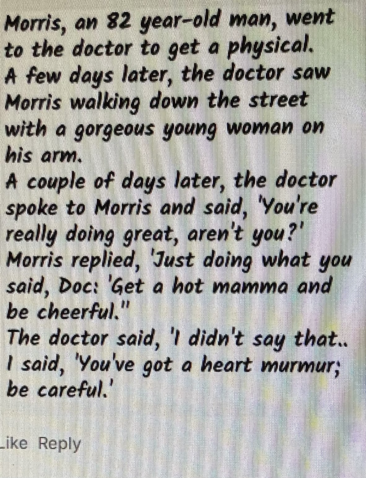 Marshal Mo Hare, SASS #45984 Posted April 16, 2025 Posted April 16, 2025 A guide was explaining to his client that the meanest animal in the world was nearby and he must be aware of it. “It’s the crocagator, head of a crocodile at one end, head of an alligator at the other, mean as all get out”. Client: “If he’s got a head at both ends how does he poop?” Guide: “That’s why he’s so mean.” 1 3 Quote