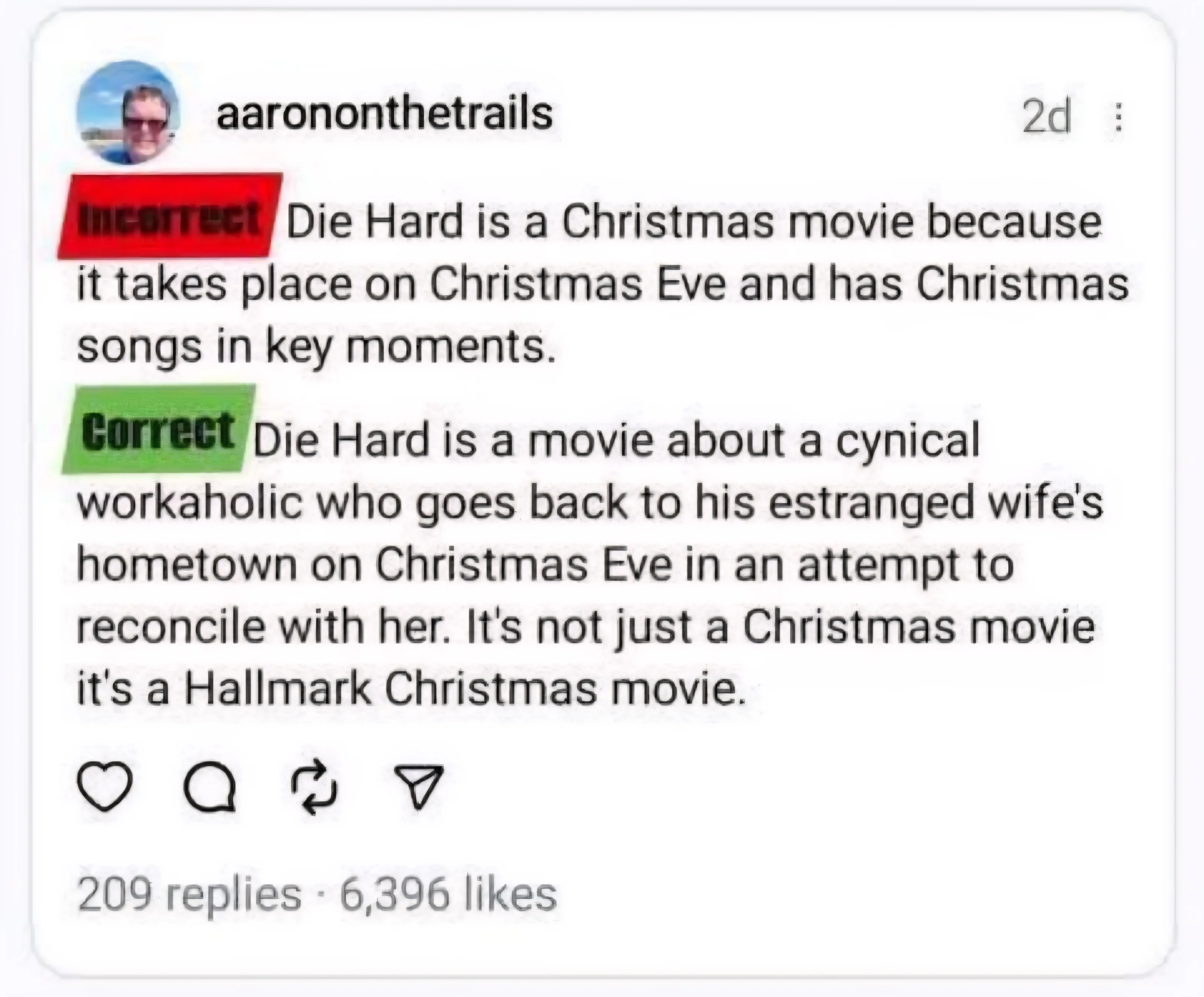 Chicken Rustler, SASS #26680 Posted December 7, 2025 Posted December 7, 2025 12 hours ago, Alpo said: Die Hard is about a hero who sneaks around a tower at night avoiding Alan Rickman, it's a Harry Potter movie. 1 Quote
