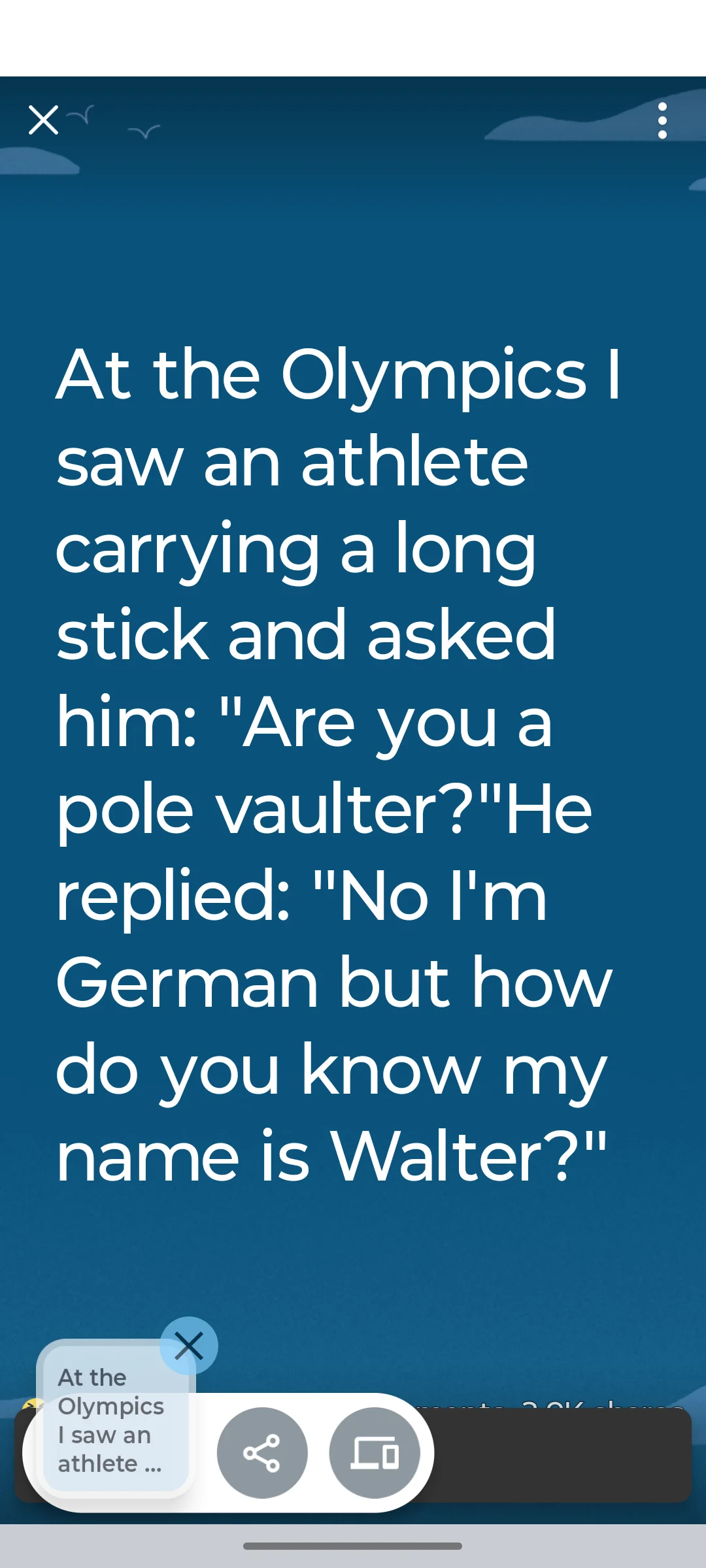 Subdeacon Joe Posted December 6, 2025 Author Posted December 6, 2025 Naked Cowboy A Sheriff in a small town in Texas walks out in the street and sees a blond haired cowboy coming toward him with nothing on but his cowboy hat, his gun and his boots. He arrests him for indecent exposure. As he is locking him up, he asks 'Why in the world are you walking around like this?' The cowboy says, 'Well it's like this Sheriff ...... I was in this bar down the road and this pretty little red head asks me to go out to her motor home with her. So I did. We go inside and she pulls off her top and asks me to pull off my shirt... So I did. Then she pulls off her skirt and asks me to pull off my pants.... So I did. Then she pulls off her panties and asks me to pull off my shorts...so I did. Then she gets on the bed and looks at me kind of sexy and says, 'Now go to town, cowboy.. ' 'And here I am.' Son of a Gun. Blonde Men do exist!!!! 4 Quote