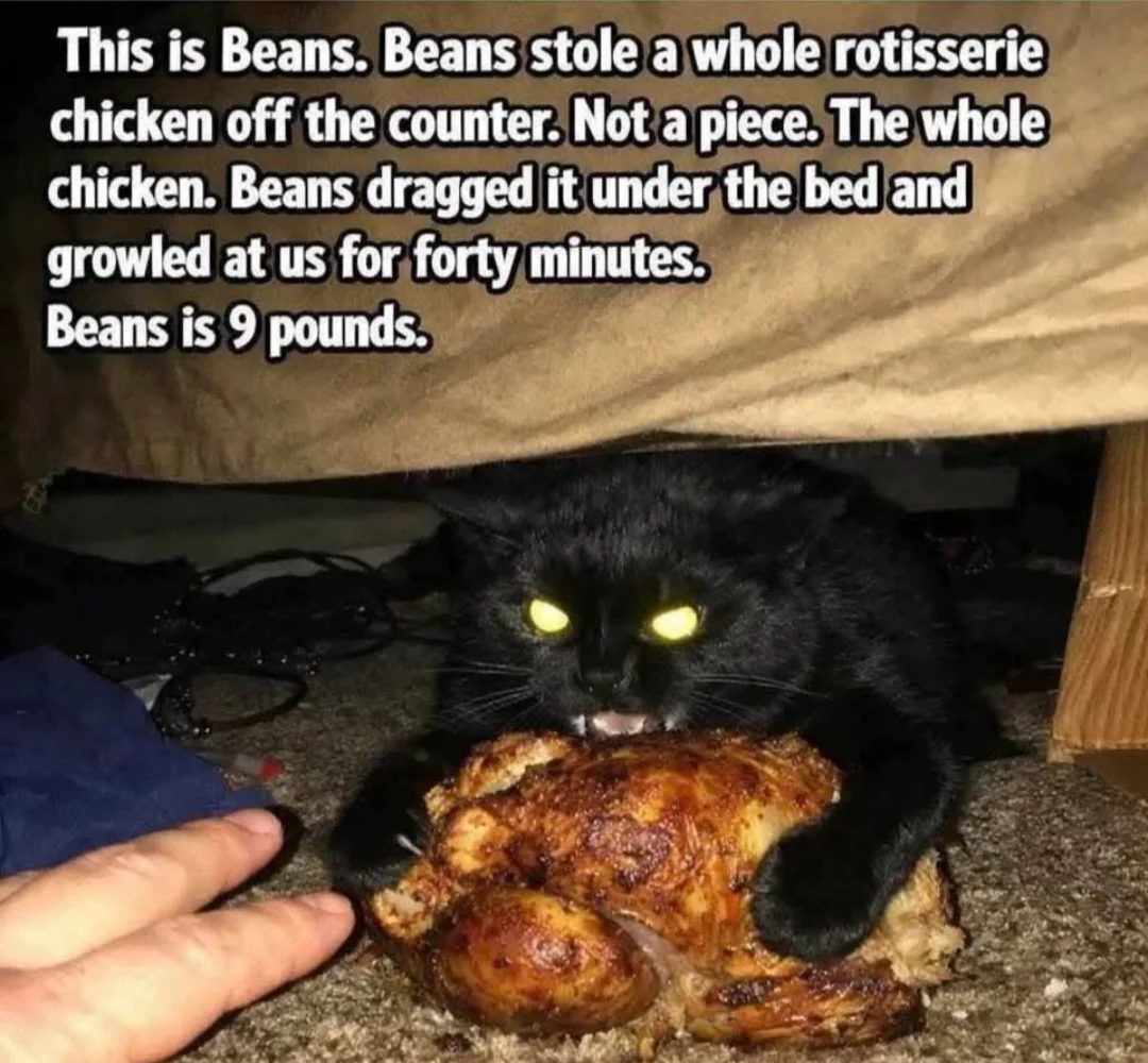 Alpo Posted February 27 Author Posted February 27 That would require me getting a clean fork. Because that cat would have gotten stabbed in the ass. Actually, I would have stabbed him for getting on the table, let alone putting his tail in my food. 4 1 Quote