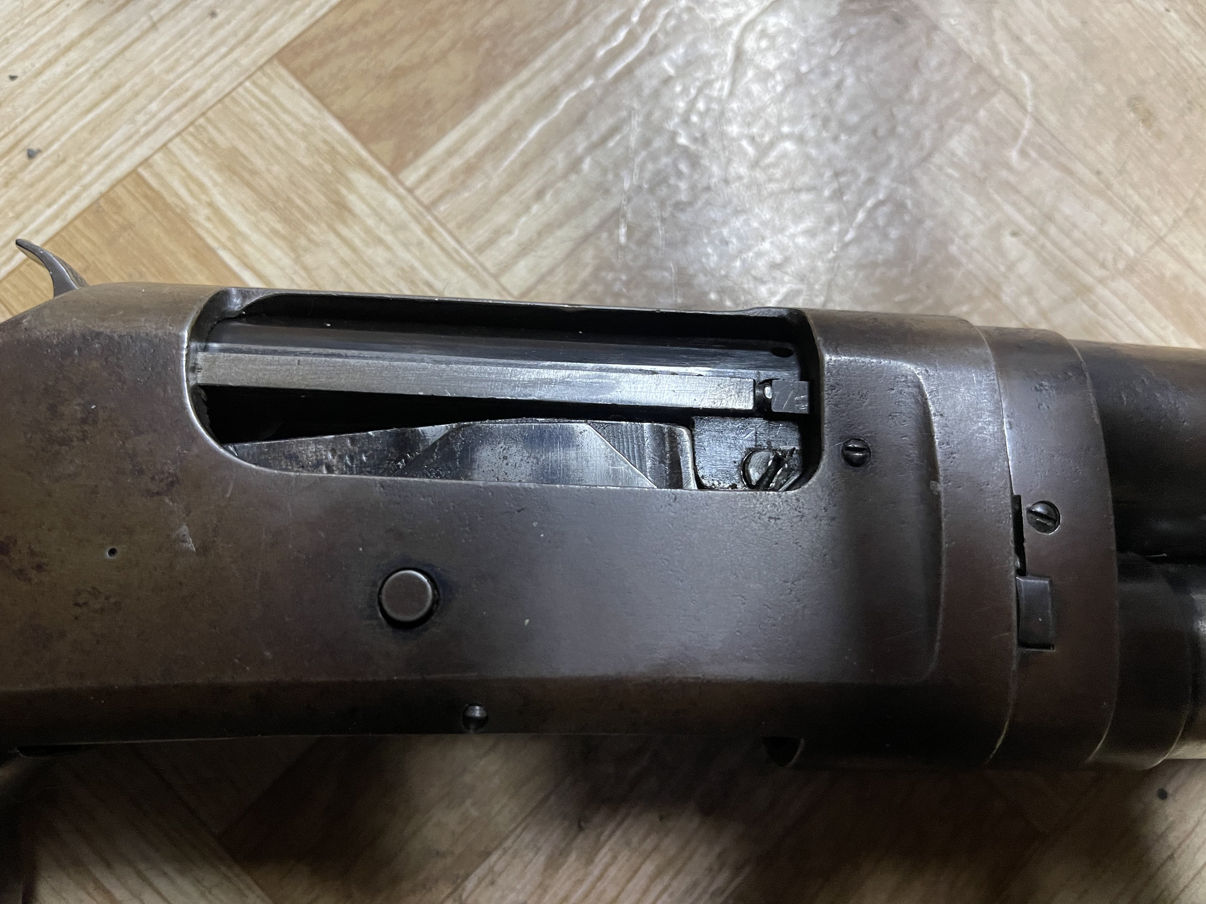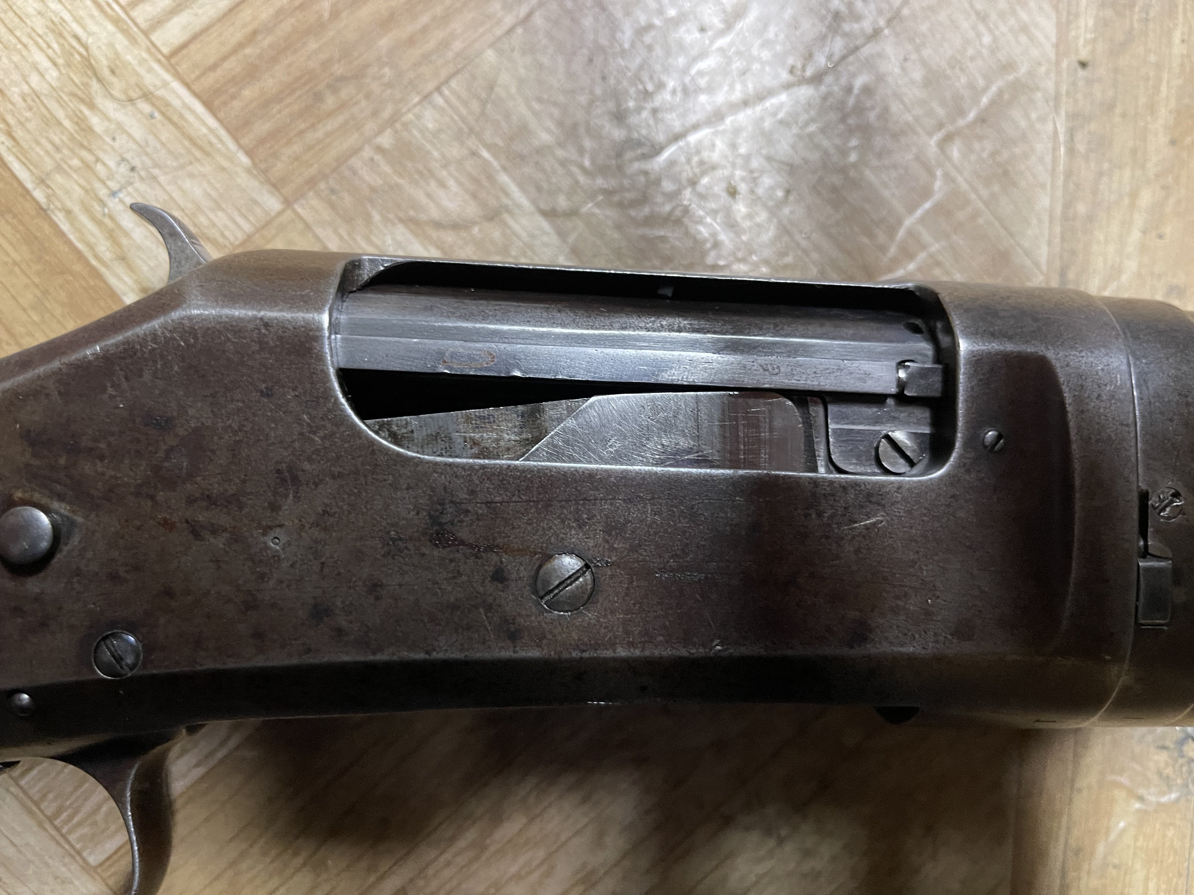 Yul Lose Posted August 21, 2023 Posted August 21, 2023 Well if it is indeed a broken hook screw and you can’t get the bolt out you may have to do as I did on one of my numerous 1897’s. After a few conversations with Jim Bowie at The Cowboys and Indians store I did as he suggested and drilled a 5/16” hole on the left side of the receiver and drove the end of the hook screw out with a punch, actually it was just a lite nudge once the hole was drilled. I had tried everything to try and get the end of that broken screw out without success. Once it was out the hook and bolt came right out. I’ve been asked about that extra hole at the loading and unloading table a few times and after explaining why it’s there they want to know where they can get a hardened hook screw. I replaced all of the hook screws in my 1897’s with the ones from the Smith Shop, that Larsen references above. In the one picture you can see the end of the hook screw through the hole. There’s also a few pictures of the bolt, hook and hook screw.