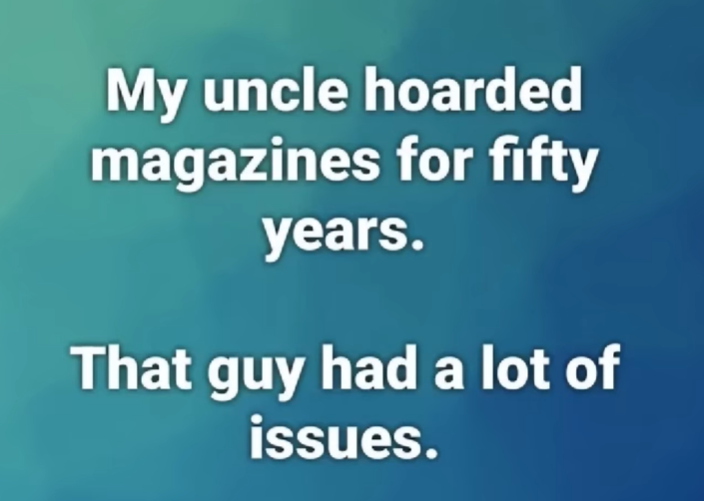 Marshal Mo Hare, SASS #45984 Posted August 12, 2024 Posted August 12, 2024 I saw this and thought, that would be a dad joke Where do generals keep their armies? Up their sleevies. 3 1 Quote