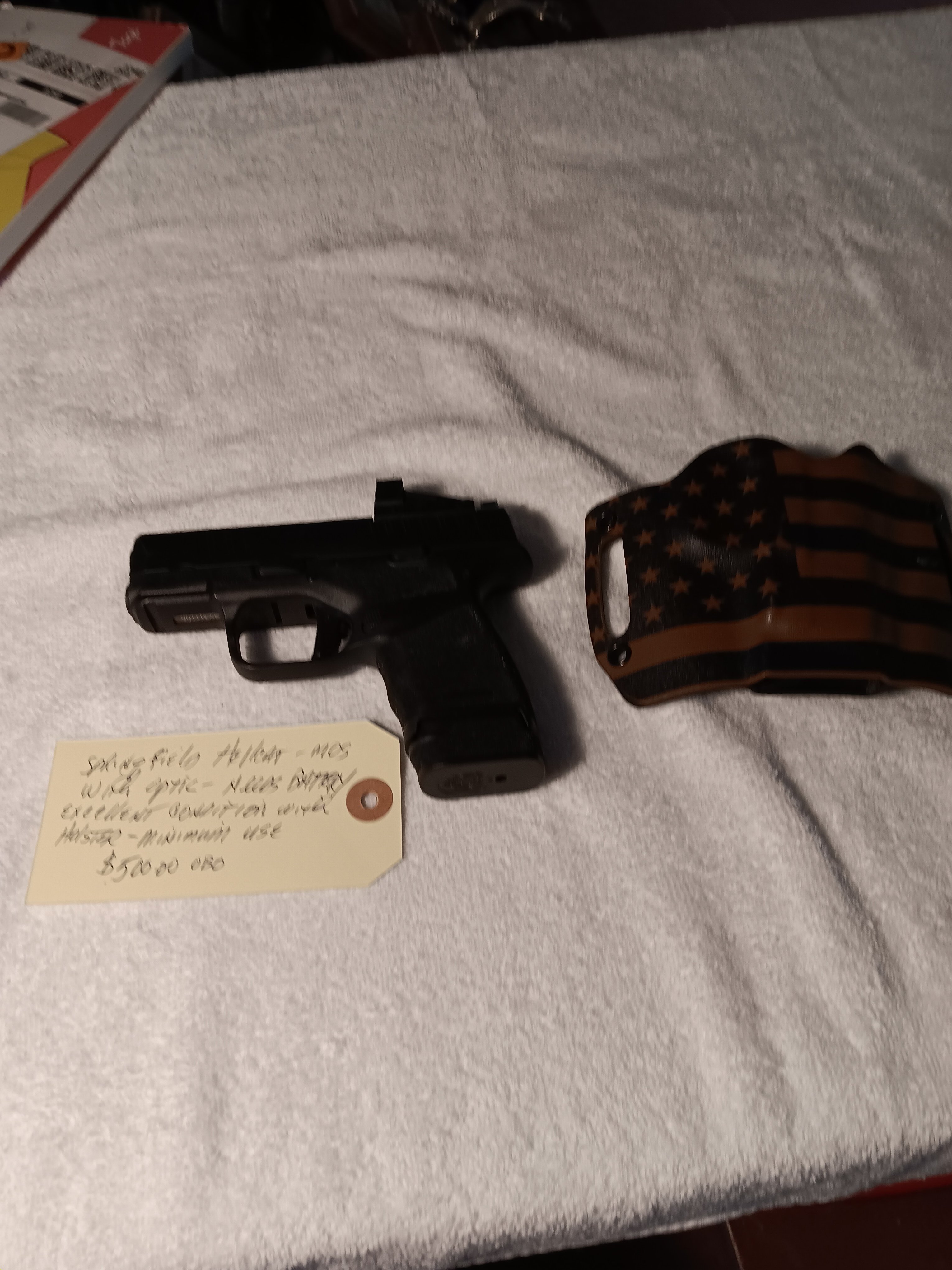 SouthwestShooter Posted February 21, 2025 Posted February 21, 2025 For sale: Schofield 38 special , mint $1000.00; Sig 1911 45 acp, custom grips $700; Hellcat 9mm MOS with optic n Holster $500; Grips 40.00 from ruger single six 32 h n r ; Winchedter model 06 22 short/long/ long rifle $400.00; IAC 97 12 GA pump action job, excellent condition $600 obo.