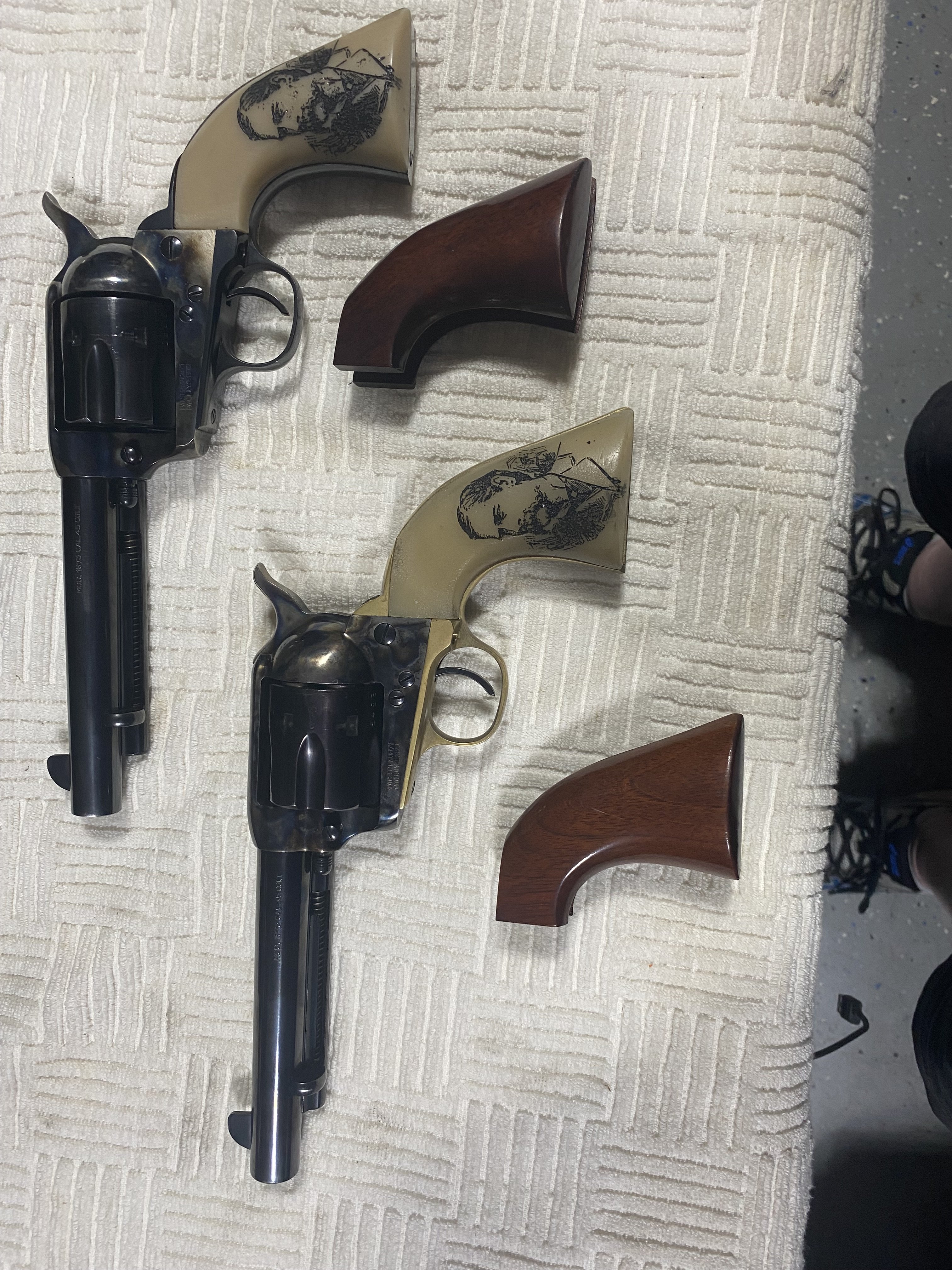 C. W. Knight # 47289L Posted July 30 Author Posted July 30 The Pietta is a single revolver. The Uberti’s are two, one with a brass grip frame and one blue steel frame. Sorry for any confusion. 2 Quote