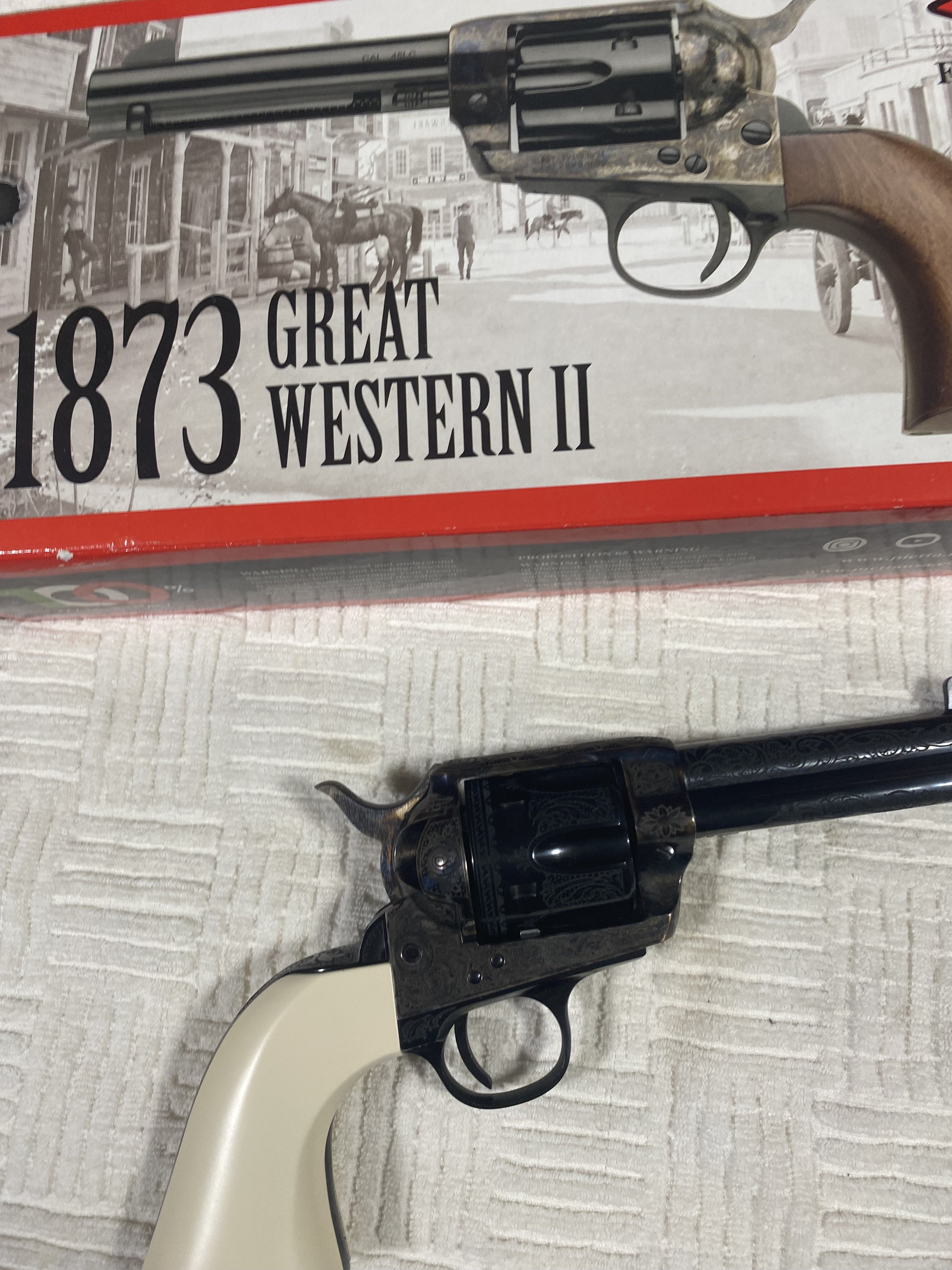 C. W. Knight # 47289L Posted July 29 Posted July 29 (edited) CZ Sharp-Tail! Straight from Griner Gun Works. 12 ga. 22” bbl, 13.5” LOP from trigger to back side of Decelerator recoil pad. Case &all papers. Fired less than 16 rds., still new stiff. $ 1,350.00 shipped from my FFL to yours. Next, two .45 Uberti’s, one with brass grip and trigger guard. Other blue steel, each with case color frames. 5.5” blue bbls. They both have three click hammers with Colt style firing pins. No box or papers. Will ship in hard pistol case. $ 800.00 Shipped fm my FFL to yours. Item #3, Pietta GW ll, .45 Colt. Original box and papers. 4 1/2” bbl. Factory engraved with ivory color grip. Added, Steel, Del Rio DLX. Pietta no longer for sale. Please PM with any questions. C. W. Edited August 3 by C. W. Knight # 47289L additional info provided & price lowered 3 Quote