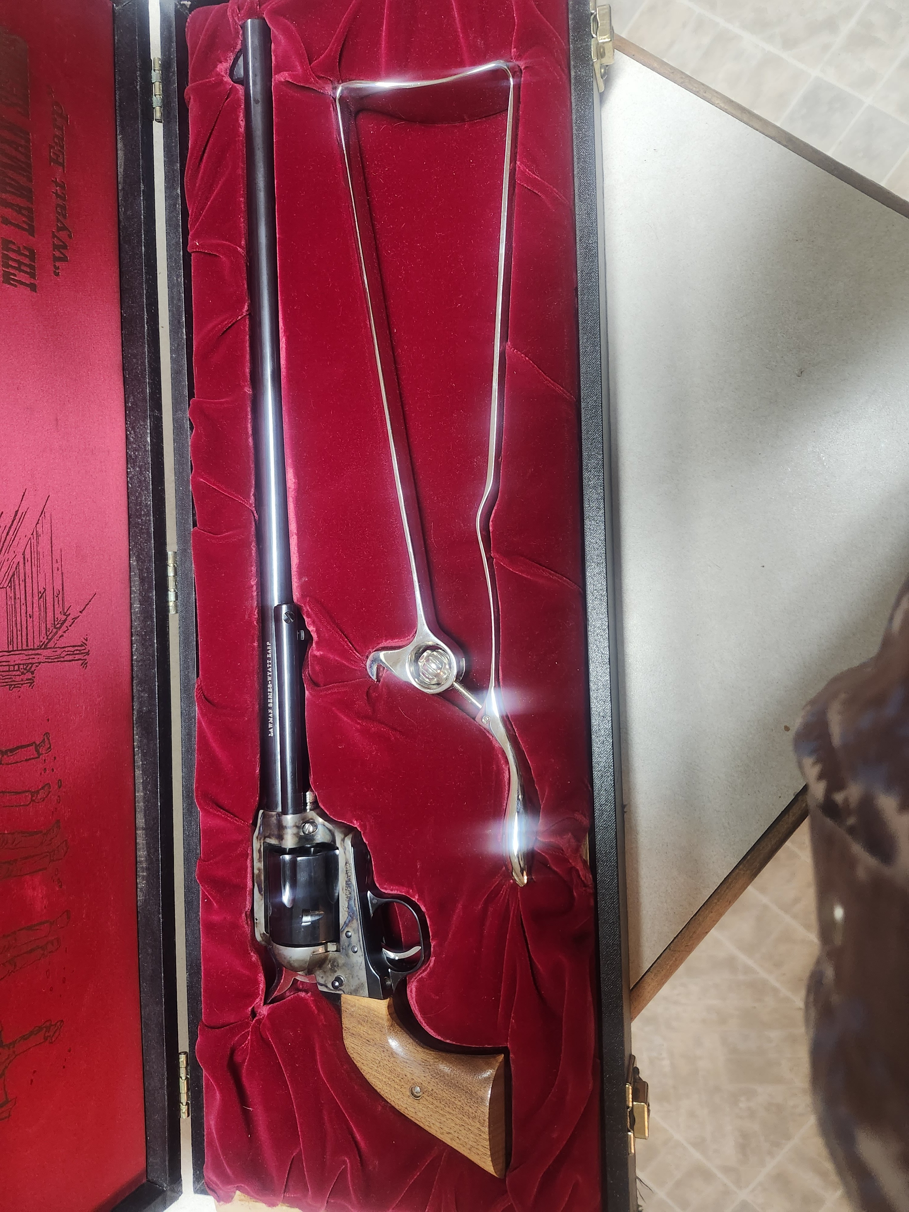 H. K. Uriah, SASS #74619 Posted September 11, 2025 Posted September 11, 2025 4 hours ago, Cholla said: If you’re talking about the “Buntline” it should be a Second Generation Colt. 500 were made so your three digit serial number falls right in. https://www.rockislandauction.com/detail/78/3850/colt-lawman-series-wyatt-earp-commemorative-buntline-revolver Ah, I did not know of this one. Rather nifty looking. And yes, this would also be a C&R pistol.