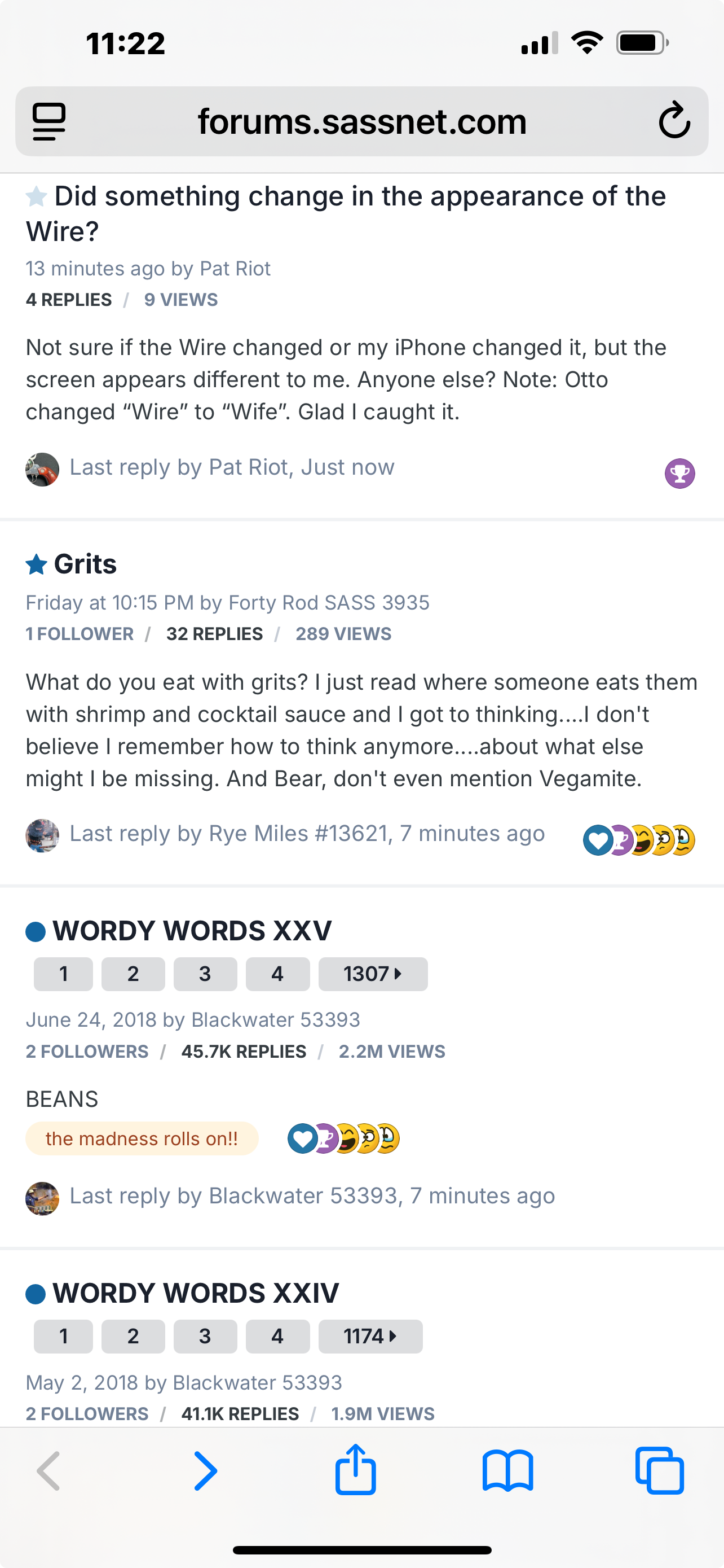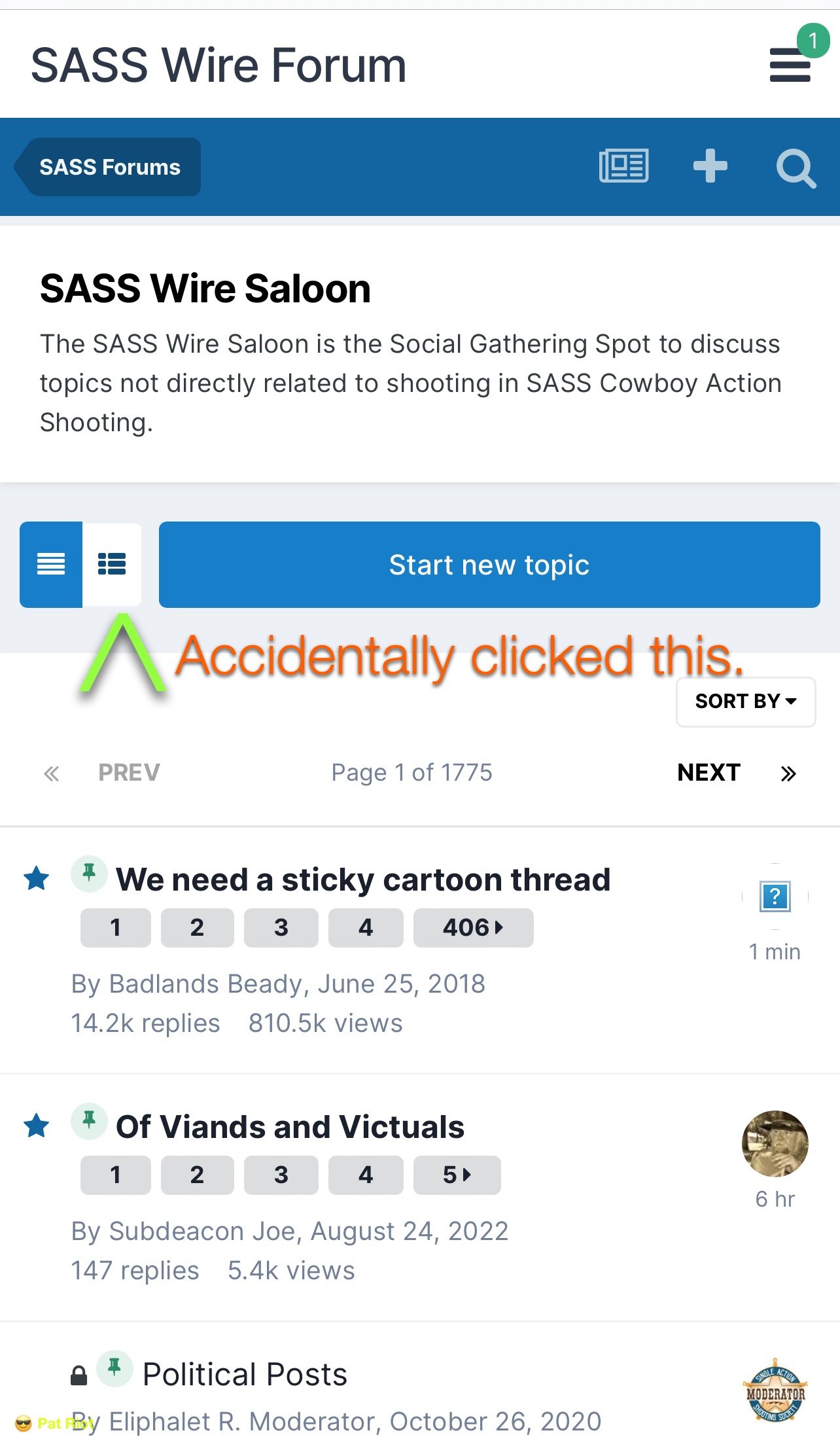 Pat Riot Posted October 7, 2025 Author Posted October 7, 2025 1 hour ago, John Kloehr said: I do not know how to change default magnification on the iPhone, but on my laptop I can use Command + or Command - to zoom in and out. At some step size, this does change the look. Now I feel like a complete idiot. I was going to try and use Mematic to combine some images to show the problem. I decided to search my photos to see if I had a screenshot of the Saloon to shop how it should look versus what I see now. I found this: In February of ‘23 I accidentally clicked that little button on my iPhone and caused my screen to go wonky…like I was just complaining about. As soon as ai saw that image I remembered that incident clearly. I had forgotten about it. So, now everything is back to normal and I am going to go bang my head on something…or that might make things worse. Never mind. Thank you all for the help and comradery in this Deja Vu adventure. 1 Quote