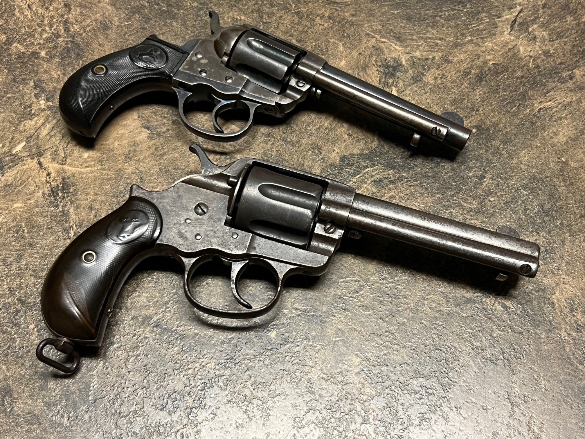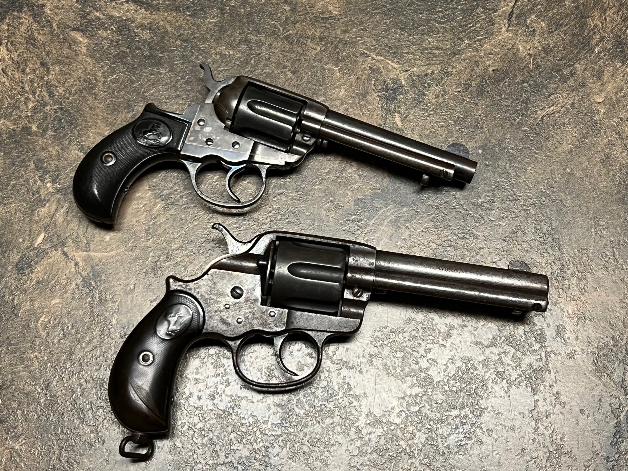 Rube Burrows Posted October 13, 2025 Posted October 13, 2025 (edited) I have a very nice Colt 1877 Lightning Revolver in .38. The guns has been gone through by well respected 1877 gunsmith Salvatore Lanara. He has fitted it with new springs and made sure it was running well and in timing. I have not shot it since it came back from him. It has been sitting in the safe since. This one should run a long time. I have decided to just keep my .41 cal 1877 and sell this one. Barrel is 4.5" long. New Price - $1,300 + 35 shipping. Made in 1902 so it will have to be shipped to FFL or C&R lic. The 1878 revolver in the photo is not for sale. Edited December 11, 2025 by Rube Burrows 4 Quote