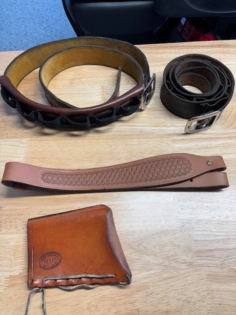 Dungannon Gunner Posted October 14, 2025 Posted October 14, 2025 (edited) REDUCED Set for $90.00 Now $50.00 Can deliver to you at EOT or ship 1 Rifle sling never used, 1 Buffalo Brady 1873 Butt-cover used, 1 Mernickle size 52 Shot-belt slightly used, and 1 shotshell belt well used, size 50+ Edited February 3 by Dungannon Gunner price 1 Quote