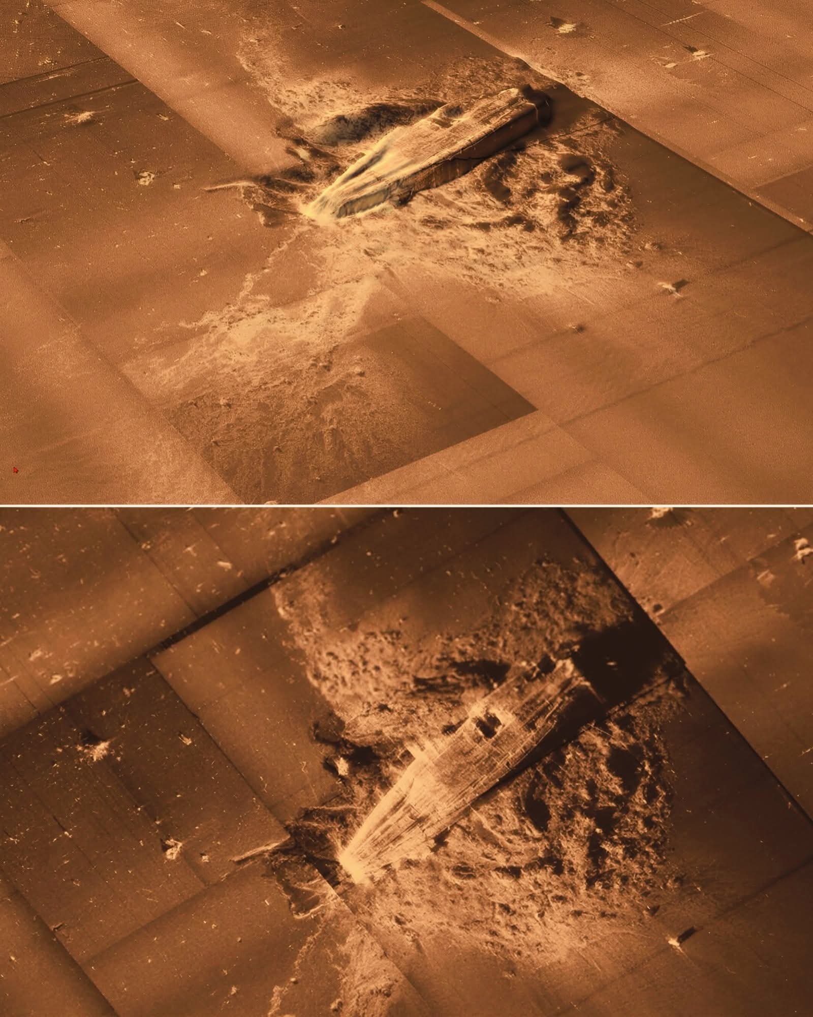 Dr. Zook Posted November 4, 2025 Posted November 4, 2025 Absolutely, that's what I thought as well --- the sonar scans do show the keel, a very large hole thru her double bottom and her four propeller shafts at the stern in an upside-down position. Looking at the sonar scan it shows what looks like a 40mm gun tub & mount off the starboard bow - maybe that's upright in the mud. But I agree the hull #'s and depth to keel are right side up... 2 Quote
