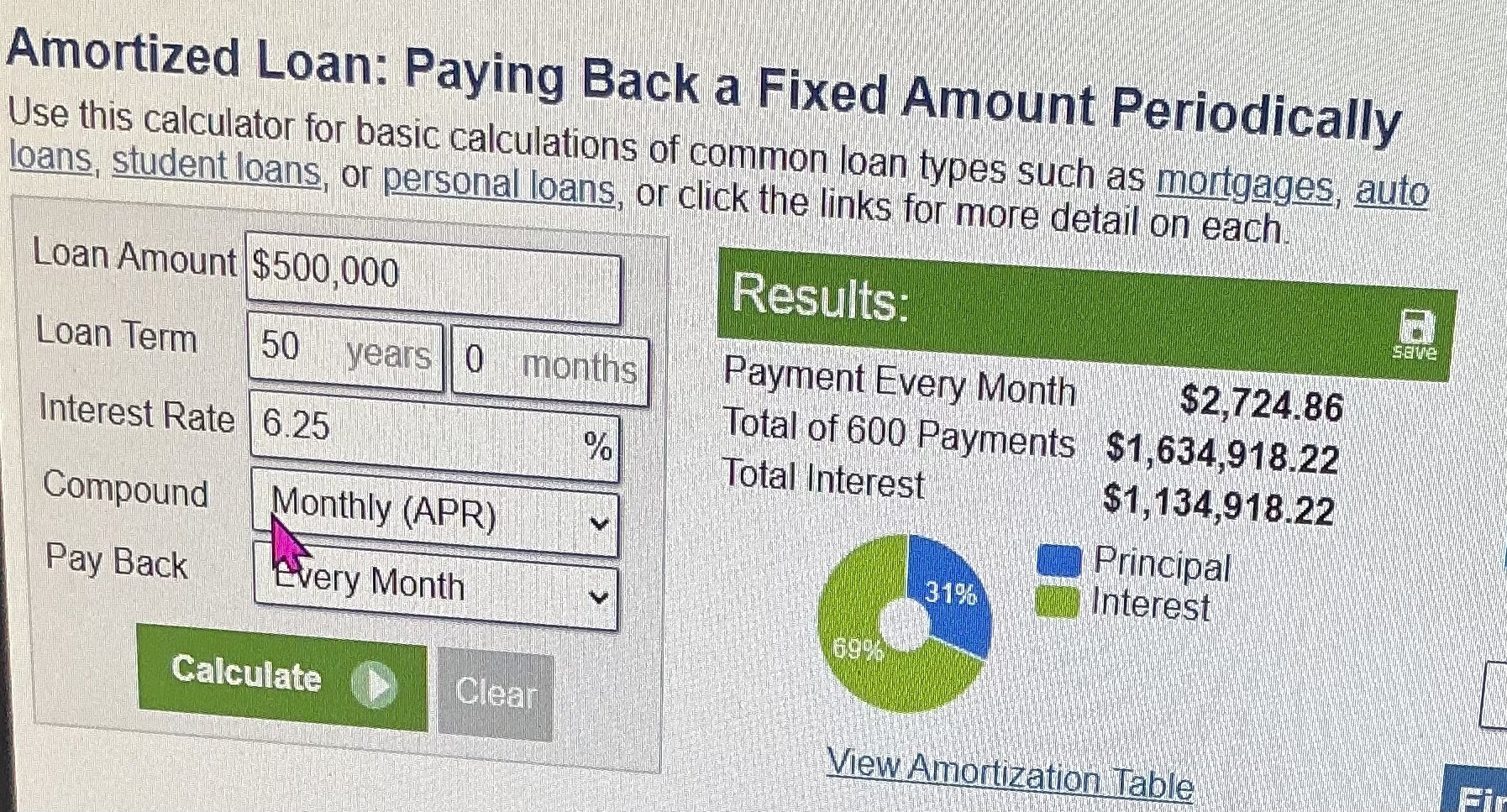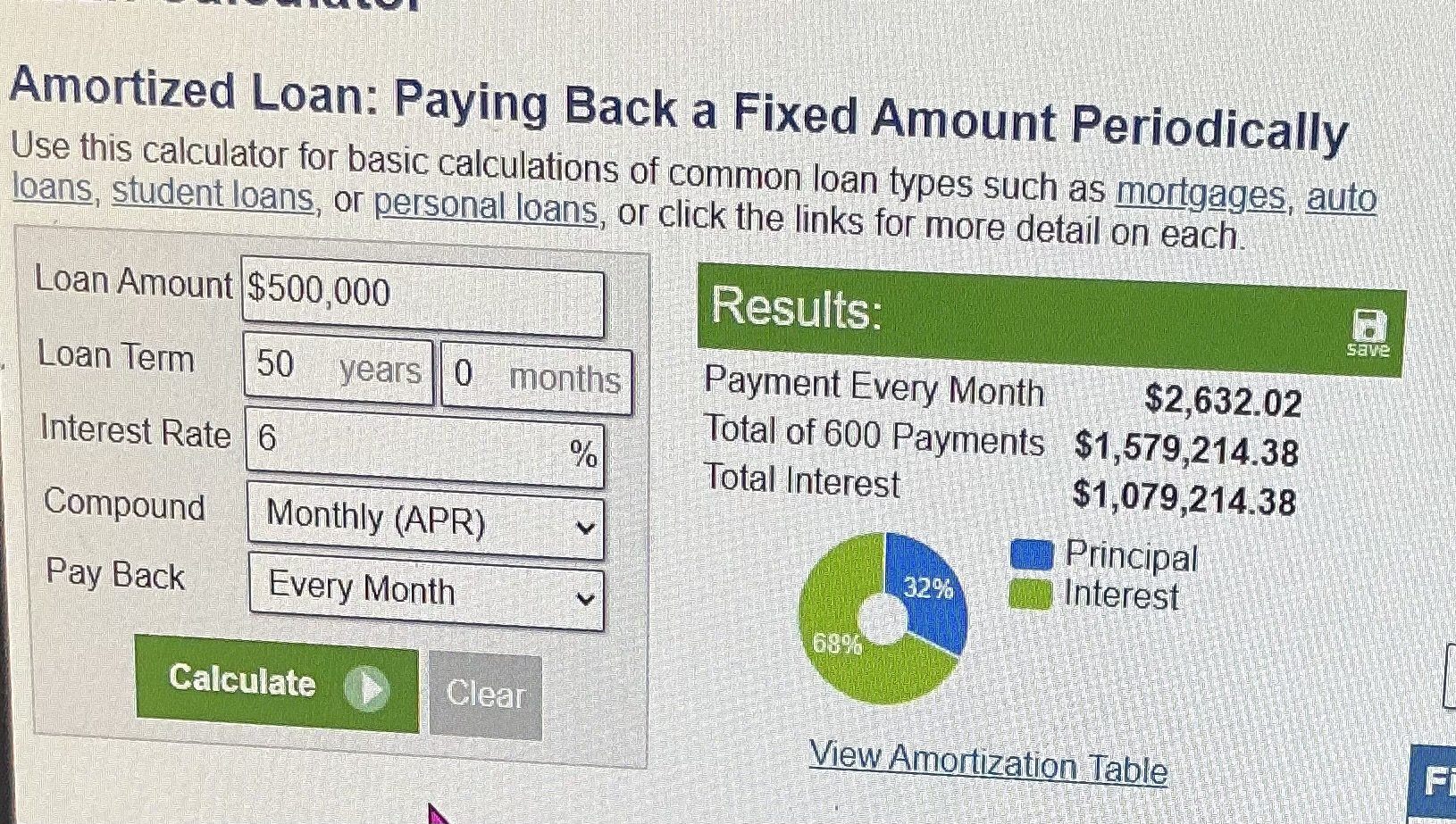 Marshal Mo Hare, SASS #45984 Posted November 11, 2025 Posted November 11, 2025 (edited) It was hard to find a site that would do the math for me without asking for personal info. i went online looking for a hypothetical payment for a half million dollar mortgage at 6% comparing 30 and 50 years. In reality, I think for 50 years, a bank might want another 1/4 point, so I included that. Basically you start at a $3k monthly payment without taxes and insurance and save no more that $370 a month by going for the longer term. Edited November 11, 2025 by Marshal Mo Hare, SASS #45984 Quote