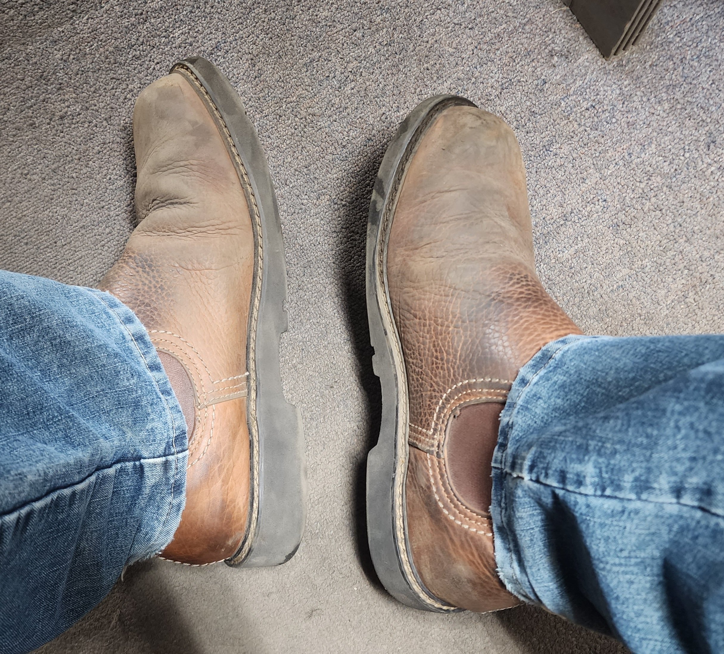 Dapper Dave Posted December 8, 2025 Posted December 8, 2025 (edited) We poor, we shop at Boot Barn. So, long story long, my wife needed a new pair of work boots and decided out of the blue that the Chelsea style would work well for her. We went to Boot Barn and she found a set that was quite decent and sturdy...and I decided to check these weird Beatles boots out. I knew they had been around longer than some other style of Cowboy boots, like what we normally see at a match or on real riders, but never really caught on out there, called paddock boots or dealer boots according to that AI thingie on my phone. "Dealer boots"? Do I need to get the sleeve garters to make the outfit correct, including a deck of period cards? I can do that, if needed. Starting line for a stage, "Five aces?" The name Chelsea came about in the 60s, apparently referring to a city in England where the Beatles decided to make the style famous. Ya know, I really am not a fan of the Beatles, sorry. So, people calling them Chelsea boots are ignoring the actual Western history of these low slip-on elastic sided boots, originally designed in the early 1800s in England for a queen, IIRC. And ya know what? The dang things are comfortable. Yes, she talked me into buying a pair. Wearing them right now. Anyone else use these, or only tenderfeet and city slickers? Edited December 8, 2025 by Dapper Dave title spelling Quote