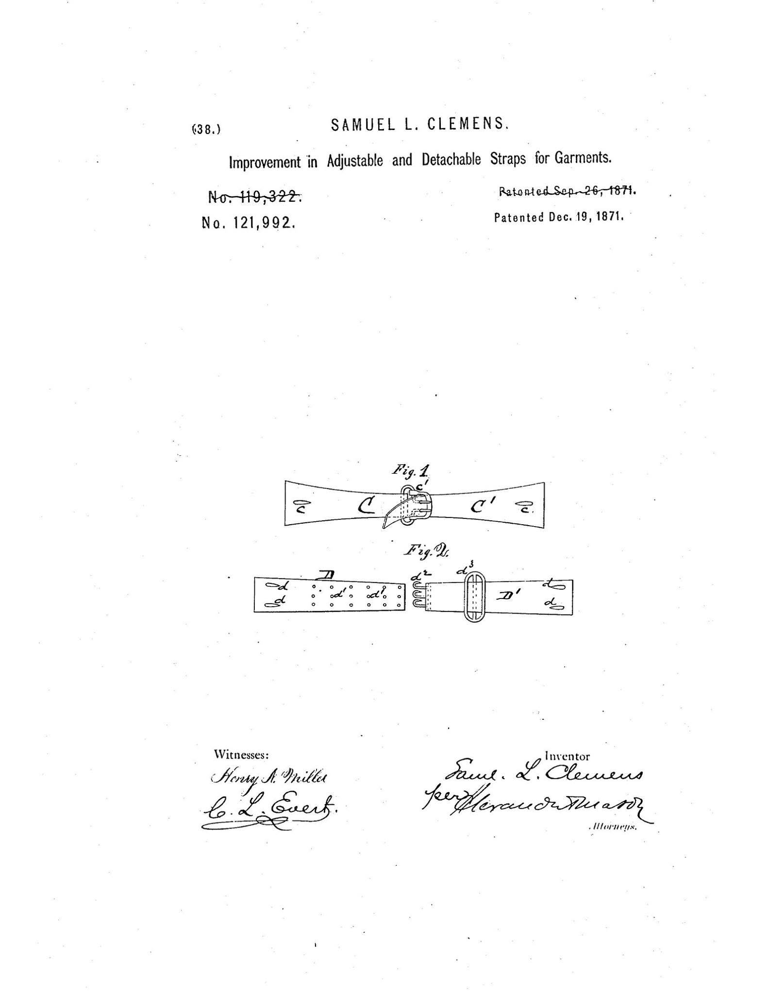 Marshal Mo Hare, SASS #45984 Posted December 27, 2025 Posted December 27, 2025 Was not used during his life. The long-term uses for a product do not always materialize during the inventor’s lifetime. Such was the case with Mark Twain — the celebrated writer born Samuel Clemens — who filed a patent for a clothing accessory when he was 35 years old. Twain found wearing suspenders uncomfortable, so he came up with a device he called an “Improvement in Adjustable and Detachable Straps for Garments.” What he envisioned was a versatile two-piece strap — preferably elastic — that fastened with hooks. The hooks were inserted into a series of rows of small holes, chosen depending on how snug (or loose) the wearer wanted their garment. Twain thought this simple, gender-neutral tool could customize the fit of a wearer’s vests, shirts, pantaloons, or stays, a corset-like object that women wore under dresses. When Twain submitted his patent in September 1871, Henry C. Lockwood was attempting to patent a similar invention he described as an “elastic waist-strap.” Utilizing a process known as “interference,” the U.S. Patent Office had both men compose statements in order to determine which design originated first. Twain responded by writing a characteristic short story, explaining how he had given the idea thought for four or five years before making his prototype that August. The office accepted his claim to being first, and patent No. 121,992 was granted to Twain on December 19, 1871. However, thanks to changing fashions — waistcoats with adjustable buckles, dropped waistlines that accommodated belts — his garment straps were not produced for several decades. In 1914, four years after Twain’s death and long after his hard-won patent expired, Mary Phelps Jacob patented the first bra from handkerchiefs and ribbon. When she sold her patent to the Warner Brothers Corset Company, they added Twain’s straps to the back to keep the garment in place. 1 2 Quote