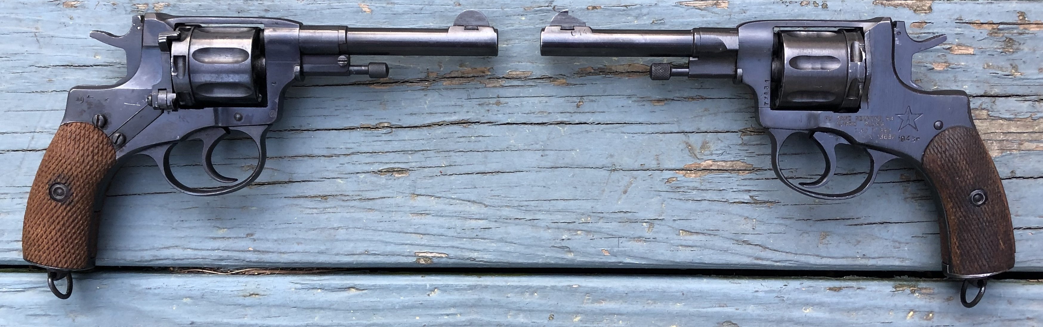 H. K. Uriah, SASS #74619 Posted December 31, 2025 Posted December 31, 2025 4 hours ago, watab kid said: why do you want a DA when we are a SA game ? There were several interesting DA pistols made by various gun makers back in the Old West era that are very interesting guns. Even though they have no place in our game, they are all pre-1900 designs, and are therefore of peripheral interest to many of us. A lot of them can be described as double action versions of the company's single action guns, and some of them are just darn pleasant to shoot. And some of them have a DA trigger pull as good as, or even better, than some guns on the market today. They make for an interesting addition to the collection. Personally, I think there should be a least a side match for "Frontier DA Revolvers," but I have never seen one. Some clubs might even allow you to use these guns in a regular match as long as you use them in SA mode. (There is something to be said for that, but let it go.) So, I guess, that's the why. Here's some examples... A Colt 1877 Lighting in .32 Long Colt. Essentially a DA version of the SAA, at least visually. The innards are very different. Another Lighting. Sheriff's model version. A pair of Colt 1878. Again, internally different, but much more of a DA Peacemaker. The top, a .44-40 is a standard one. The bottom is a Model 1902 "Alaskan" model, US GI surplus for use in the Philippine Insurrection. It's a .45. A pair of Russian Nagants. These guns came as either single or double action. The only internal part that can be removed to make the DA version identical to the SA version. Yes, these are SASS legal, and is the only (that I know of) DA pistol that can legally be converted to SA for our game. While the DA pull is horrid, the SA pull ain't that bad. S&W Model 3 DA. Essentially a DA version of the New Model 3. This is a .44-40. I have, with prior permission, used this at a match on a couple of occasions. There are others. Certain Merwin & Hulbert guns, for example, that I do not own example of. All are fun to shoot and own. Quote