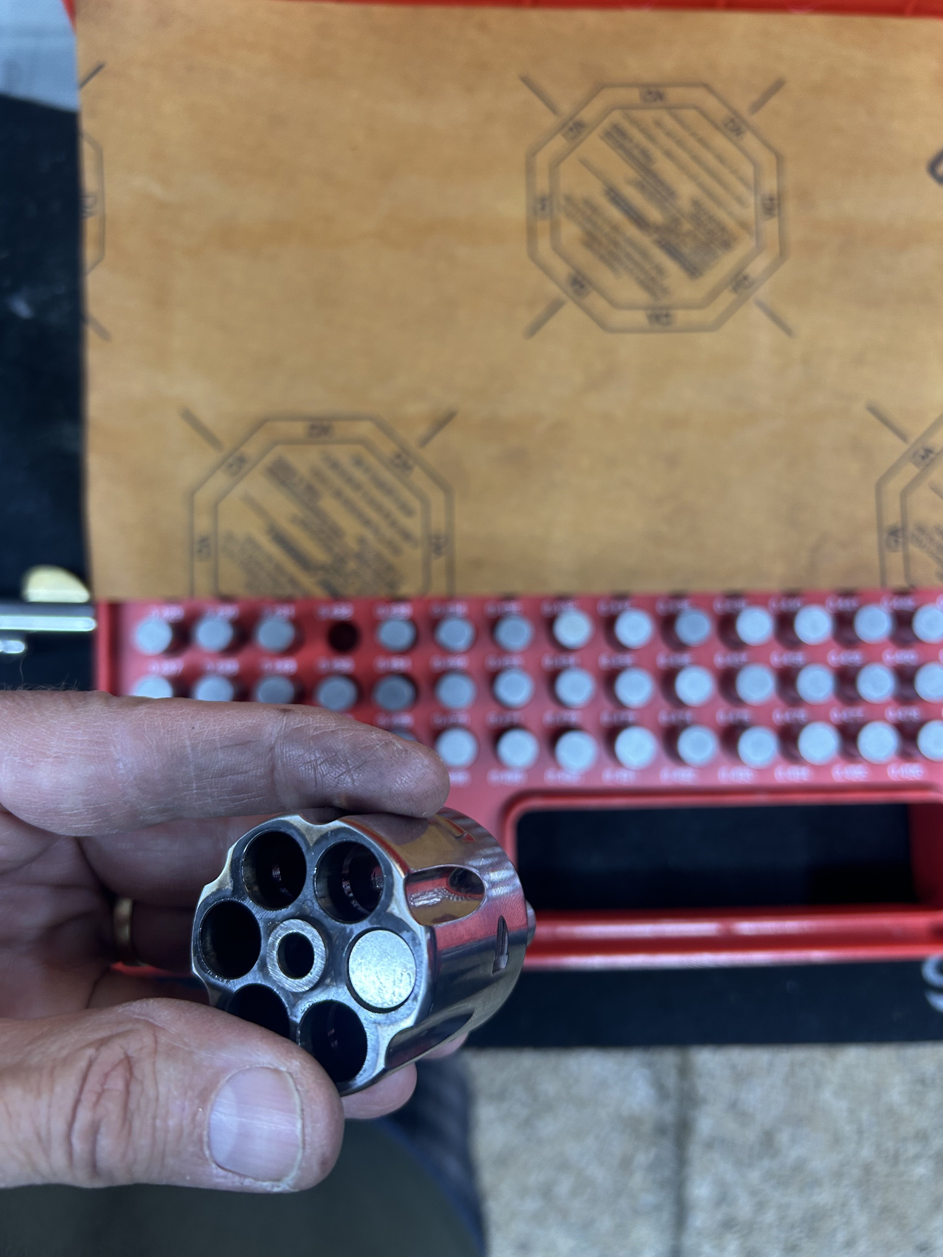 Blackwater 53393 Posted December 31, 2025 Posted December 31, 2025 Was the gun used with .45 Cowboy Special loads before you obtained it?? If so, thoroughly clean the chambers and try it again. 4 1 Quote