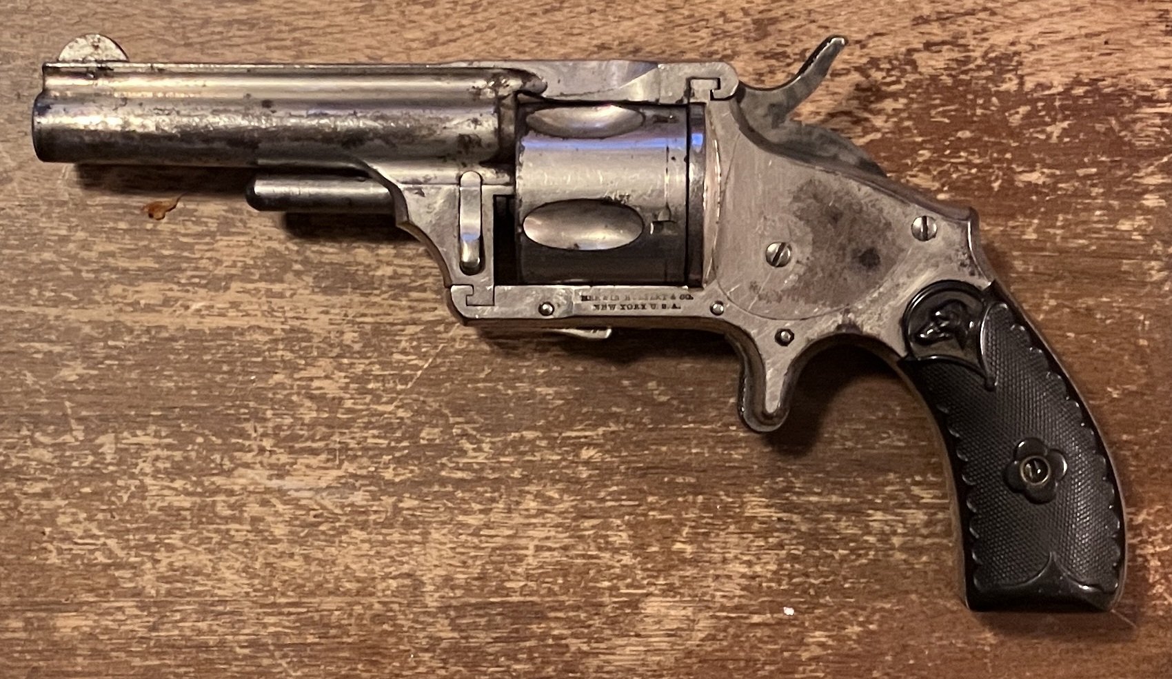 H. K. Uriah, SASS #74619 Posted January 11 Author Posted January 11 I should point out that this gun was obtained for free. Many years ago, my father was helping a lady clean out her house, and this was found in a drawer. Lady wanted it gone, so Dad took it off her hands. To be honest, I have seen other examples that look fantastic on the market, and I was shocked at how expensive they are! I had no idea that these old M&Hs were so valuable. But seeing some images of ones that still look factory new had me wondering about getting this little guy fixed up right. That's shy I contacted Turnbull. But they don't do nickel anymore. Believe me, this is all very much in the "research" phase. If it's too expensive to redo it, I'll probably not do it. I guess nickel refinishing is actually more complicated that bluing/case hardening. That being said, I was wondering if there is anyone out there that specializes in it. It's good to have projects under consideration. 1 Quote