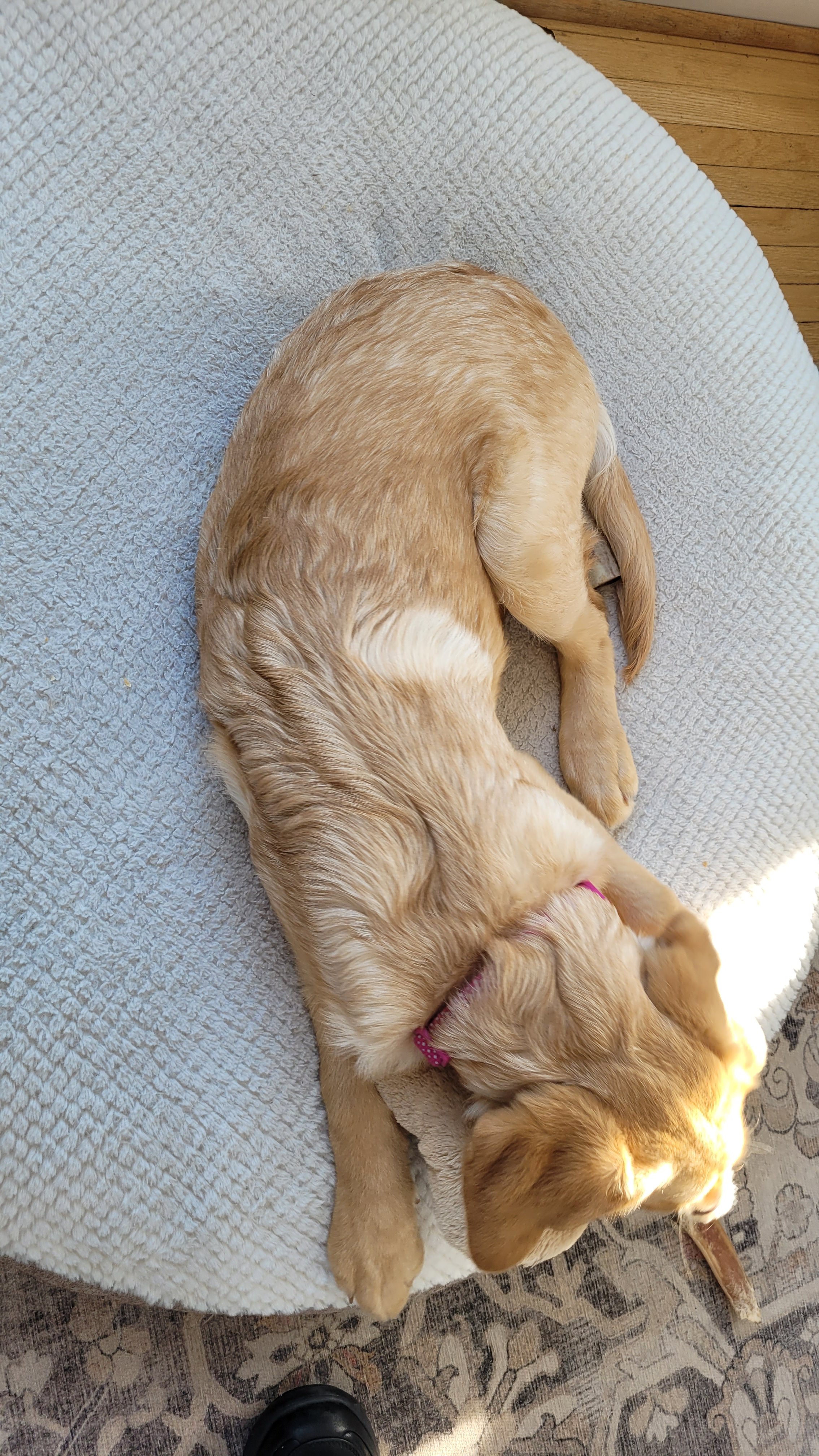 "Big Boston" Posted January 17 Posted January 17 I'd like to take a bit of a detour on this thread, concerning dog breeds. I know my pup is a not a pure lab. Her mother was a chocolate, the dad was in a kennel, I didn't get a good look, but he was big with a loud bark, light in color. Her first vet card listed her as a lab retriever. I've told friends that she is a yellow lab (cross) but her fur is growing long and wavy, not like a yellow lab. Any thoughts?