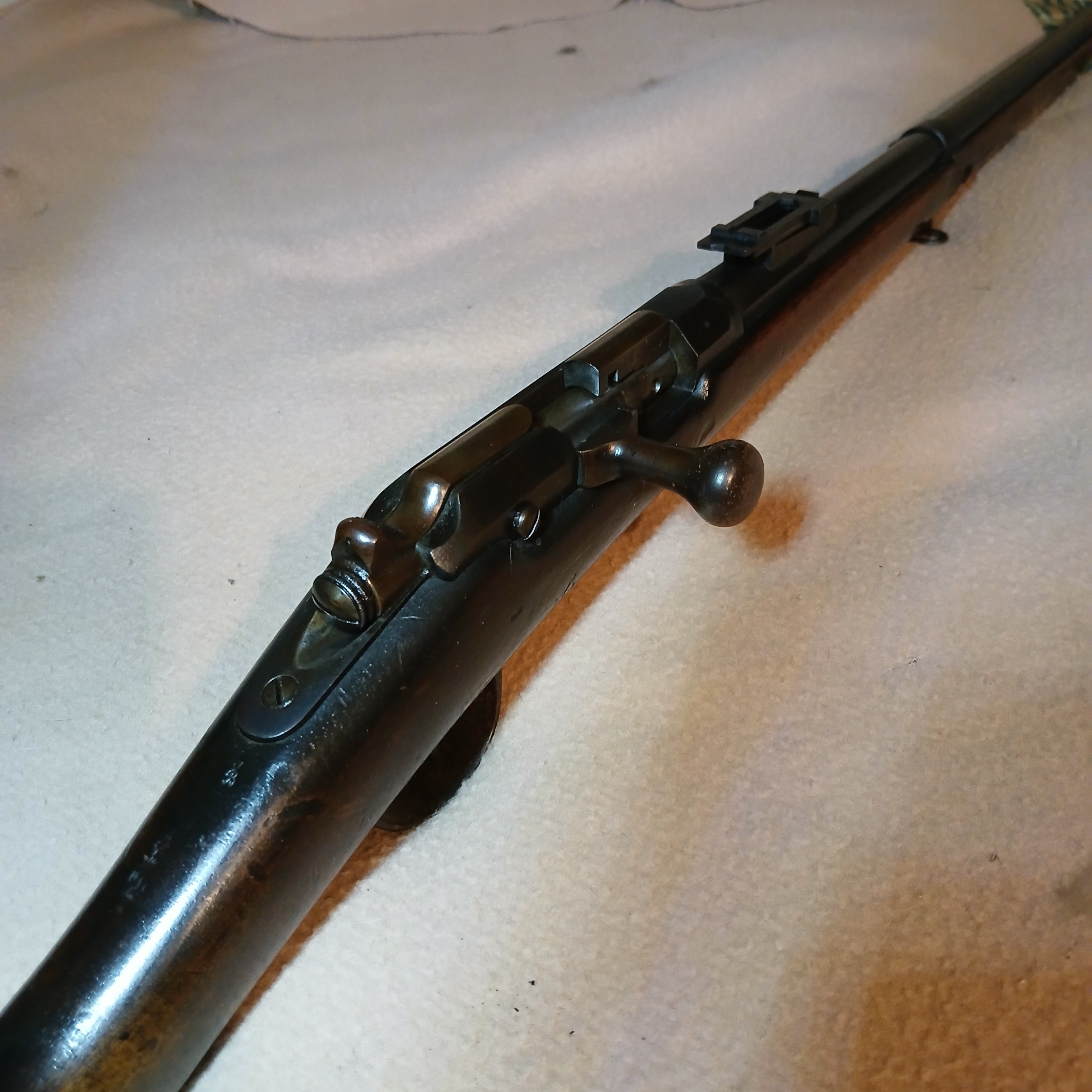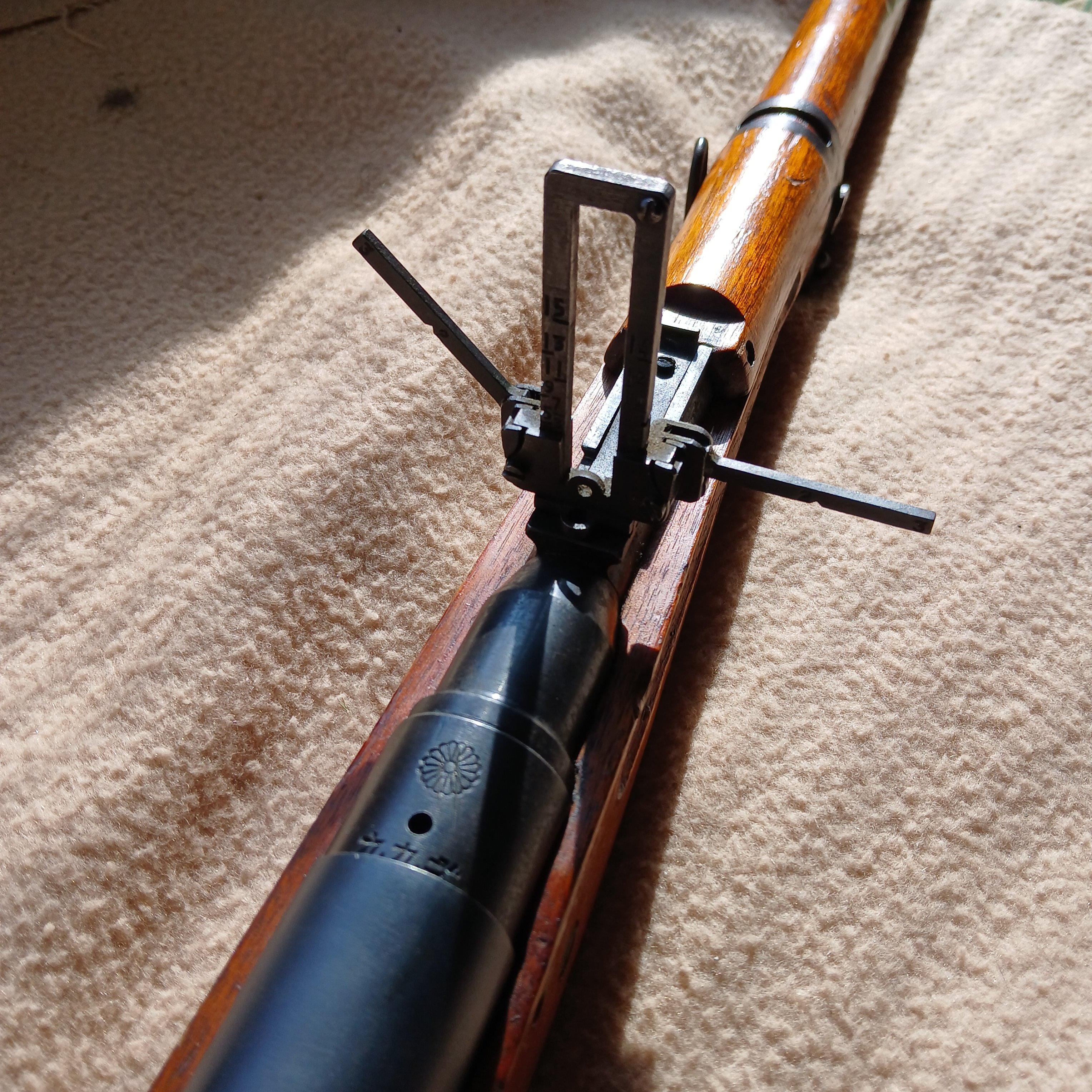 Set it in a corner; about once a week I'd hit it with either Liquid Wrench or WD-40.  Did this for months.  Then one day, I picked it up, and on a whim whacked the bolt handle.  It moved!  Not much, but there was definitely some give!  So I worked at it, pried the bolt release open with a large screwdriver, and eventually got the bolt out.  Swung it up to look down the bore, expecting to see stalactites of corrosion growing out of huge pits.  Nope.  That was when I learned that the Japanese had SO wisely lined the bores with chrome.  Many hours of work with oil and 0000 steel wool and bronze brushes disclosed that the original bluing was still intact under the chrysalis of petrified grime.